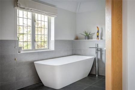 Upstairs the wonderful galleried landing adds to the immensely easy flowing feel and sense of space, opening onto an exceptional choice of five double bedrooms. Commendably designed to produce a heavenly retreat from the hubbub of the day, a fabulously large principal bedroom has a coveted degree of storage within its walk-in wardrobe. French doors to a balcony make it easy to start the day with a morning coffee in the sunshine, while a sumptuous en suite is both luxurious and contemporary with a freestanding bathtub, floating suite and spa-like walk-in waterfall shower.