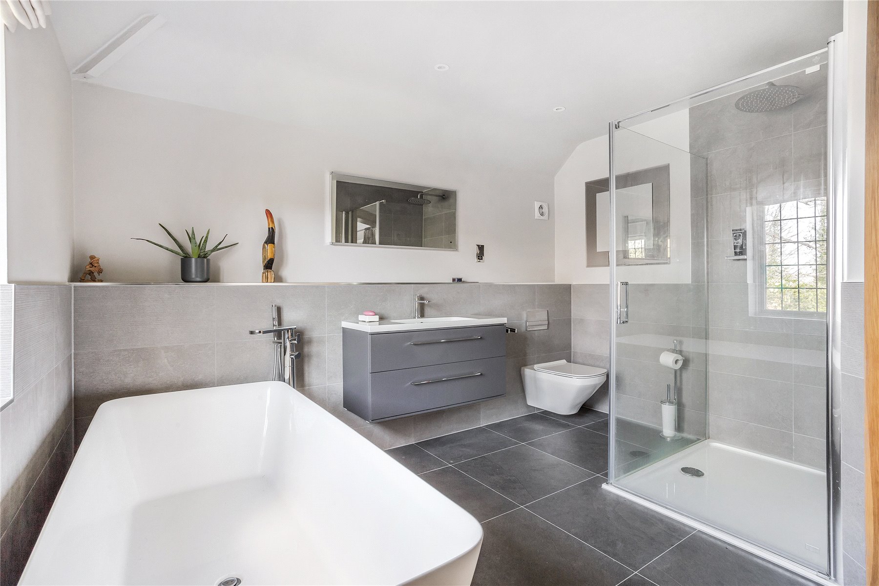An impressive second bedroom with an en suite bathroom is perhaps ideal for teenagers and whilst two of the additional three share an excellent Jack and Jill shower room, a superior family bathroom is arranged in a refine tile setting and benefits from an inset bath with overhead shower and a stylish modern suite.