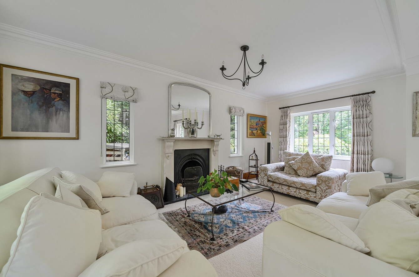 Beautifully lit by triple aspect windows giving lovely leafy vistas, a working fireplace creates a beguiling focal point to the spacious drawing room, creating an immensely special place to relax and unwind. Effortlessly capturing your imagination, this hugely restful room looks out onto the idyllic gardens and entices you outside for lazy afternoons in the summer sun.