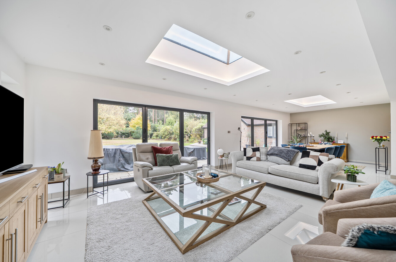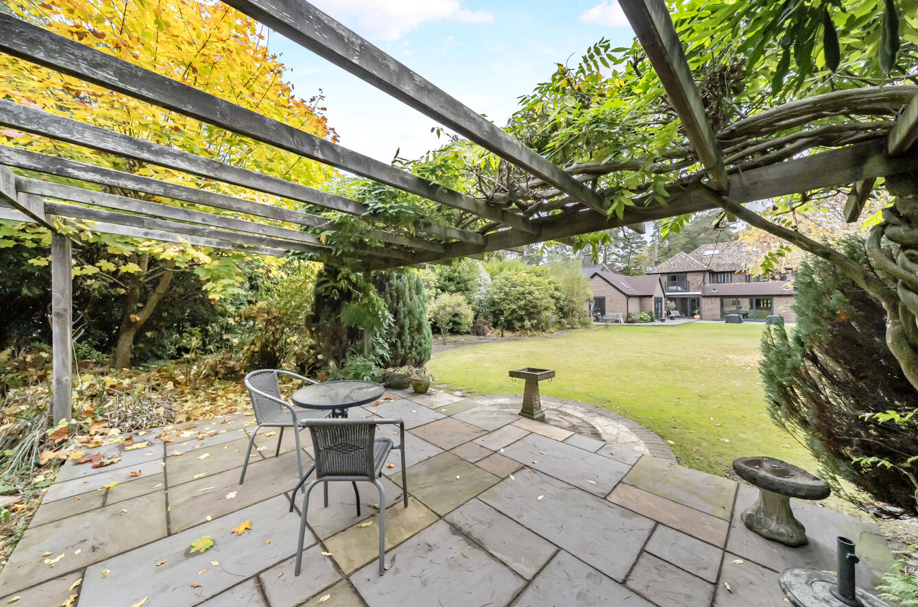 An enviable amount of privacy in an exclusive Hook Heath setting. Beautifully extended and fully refurbished, Logie sits within 0.5acres of grounds with an in/out driveway and capacious south-west facing gardens. Blending clean minimalist lines with idyllic vistas and tastefully luxurious detailing, its layout unfolds over a prestigious 4454 sq ft including an exemplary annexe, double garaging, a duo of reception rooms, study and a magnificent open plan kitchen/breakfast room and dining room that connects seamlessly with the secluded terracing.