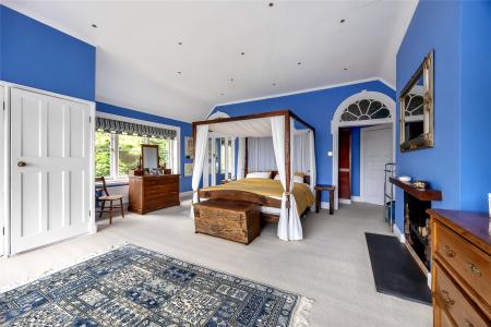 Upstairs, the six bedrooms are arranged to offer flexible accommodation, with two forming part of a self-contained extension above the double garage. This area benefits from its own independent heating system, housed in the garage below, offering excellent potential for a private annexe or guest suite. There is also scope to add a kitchen here, subject to the usual consents, creating an ideal multigenerational living space or separate home office.