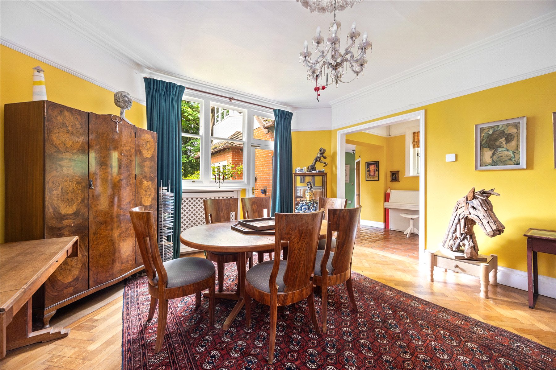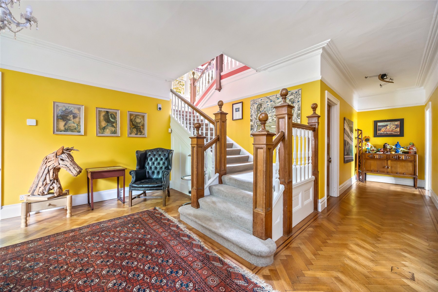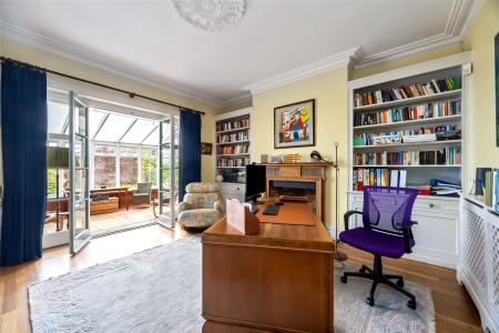 The ground floor provides a wealth of living space with three reception rooms, a light-filled conservatory, and a superb kitchen/dining room which serves as the heart of the home. Designed with both family life and entertaining in mind, the kitchen opens directly onto the generous rear garden.