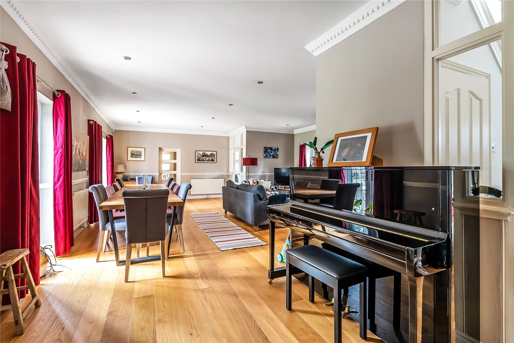 Underfloor heating has been installed throughout the kitchen space with direct access to the garden. Further downstairs rooms include a study, utility room and downstairs WC.