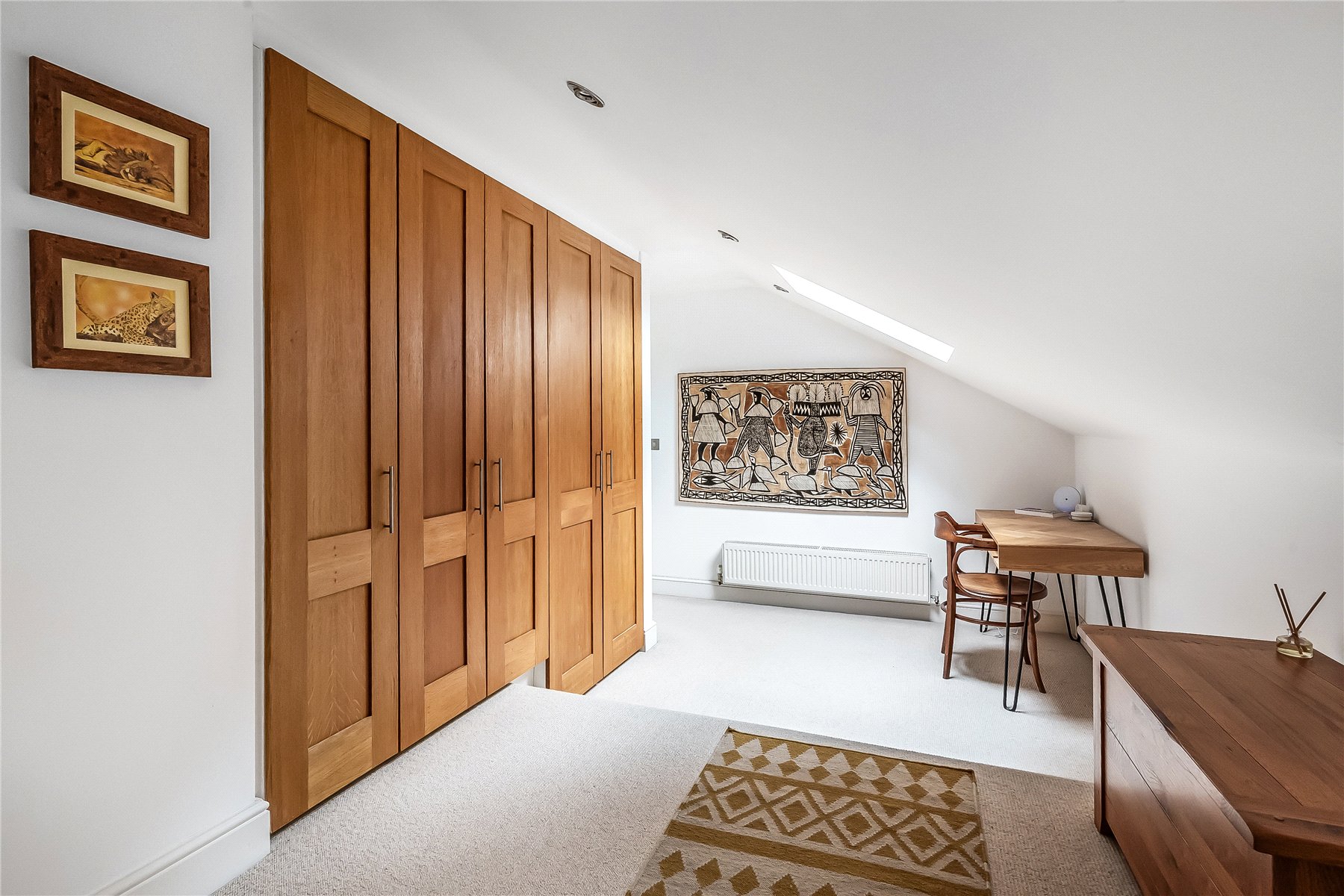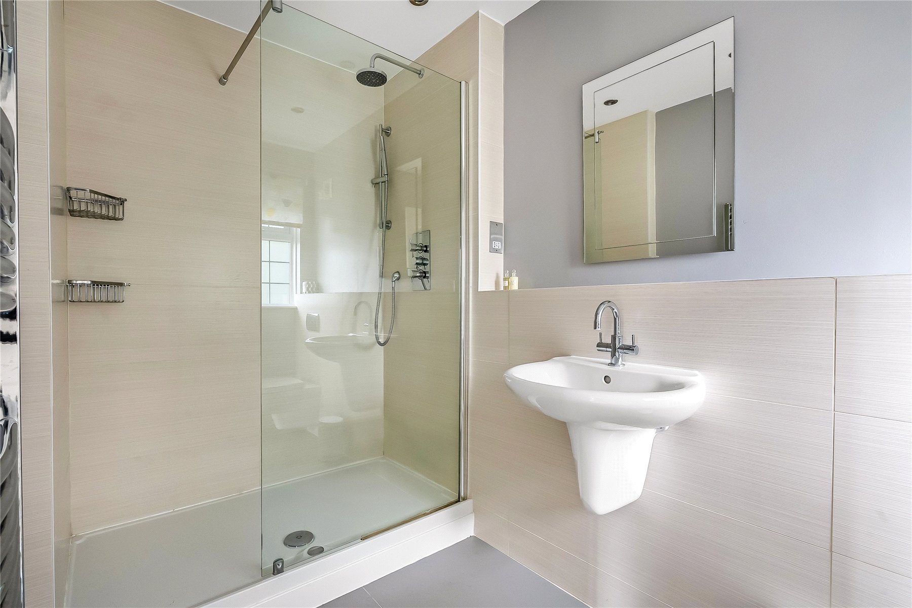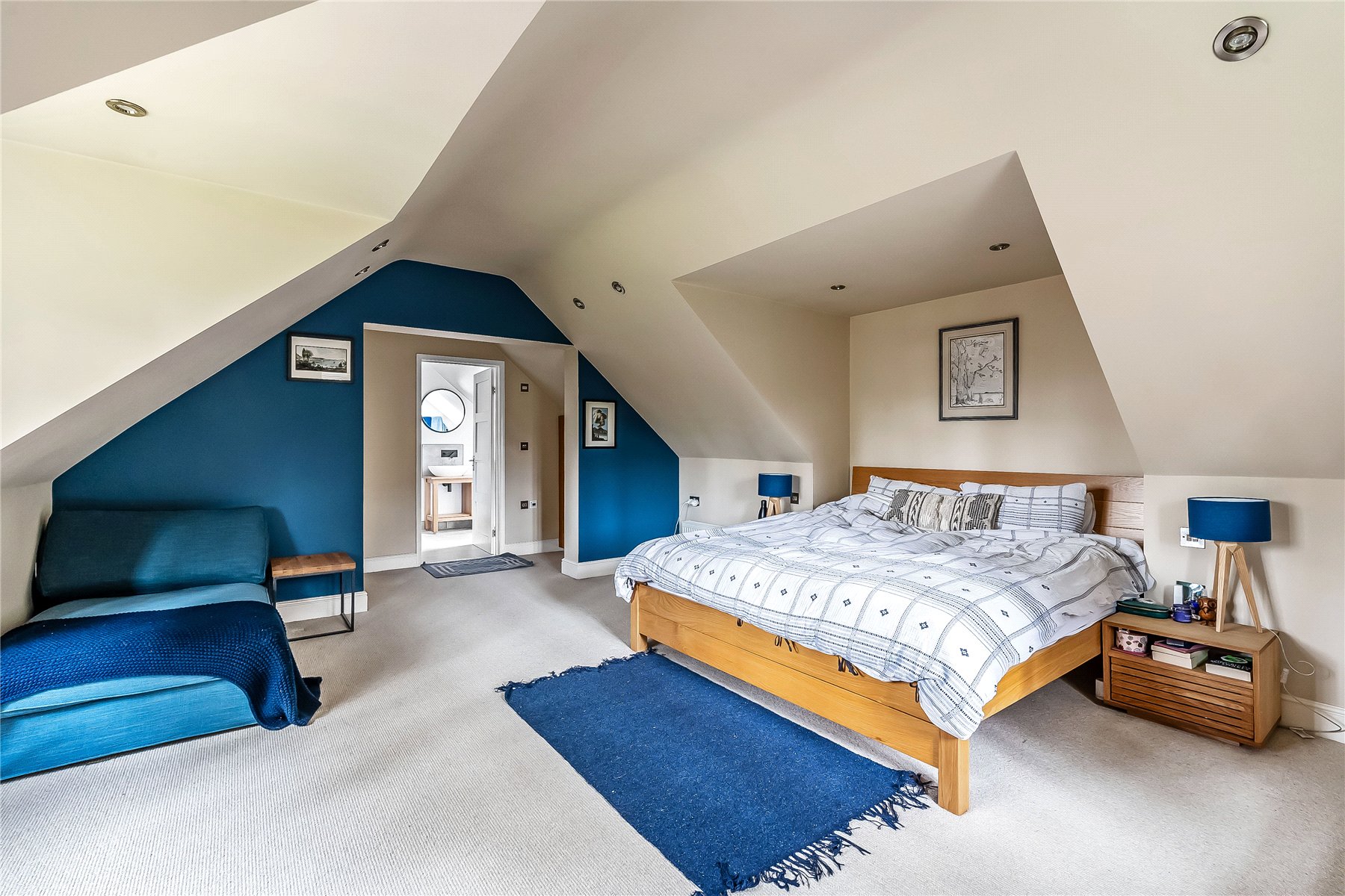 The current principal bedroom also benefits from a spacious dressing area with built in wardrobes. Three further well-proportioned bedrooms share the family bathroom. There are integrated ceiling speakers in the guest bedroom en-suite and family bathroom.