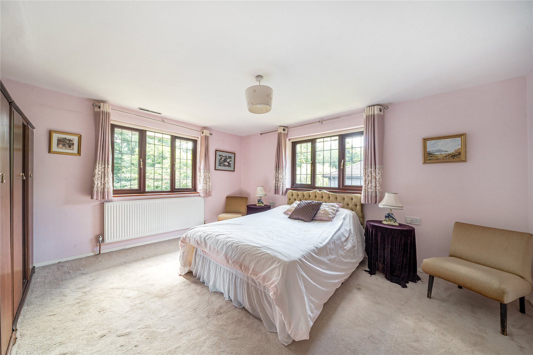 The first-floor accommodation has been extended and is no less impressive, with five bedrooms, two of which have en suites and a four-piece family bathroom. You are met with a wide and airy landing which leads to all the bedrooms and has space for working or extra seating. The principal suite impresses and is completed with a double aspect bedroom, and a large en suite with walk in shower and dressing room. Bedroom two also has an en suite and the other three bedrooms are well proportioned.