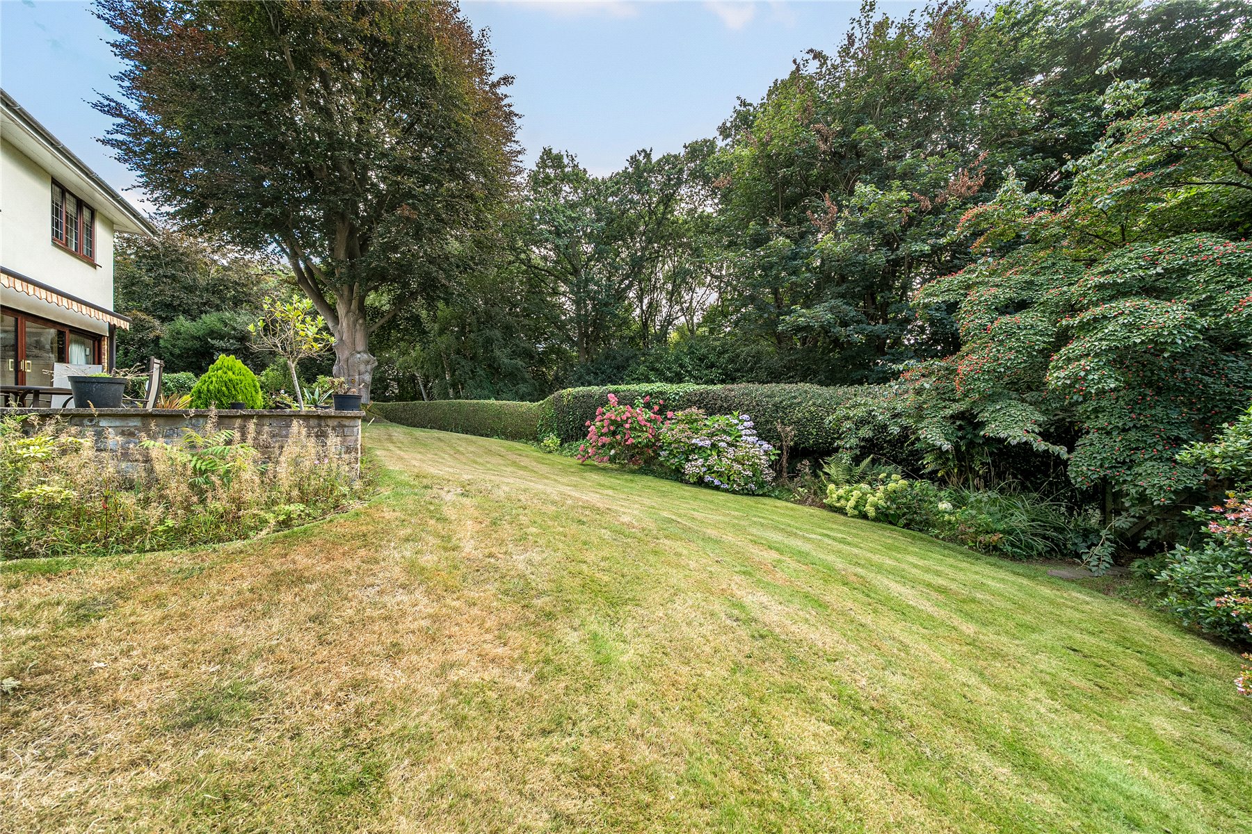 The outside space is also excellent. The wide mature plot ensures that the garden very private from neighbours with a very unique outlook of common land which is accesiible via a back gate. The width of the plot is very unique and fabulous for socialising with friends and family or playing sports. The front has ample storage for parking and gives access to the triple garage.