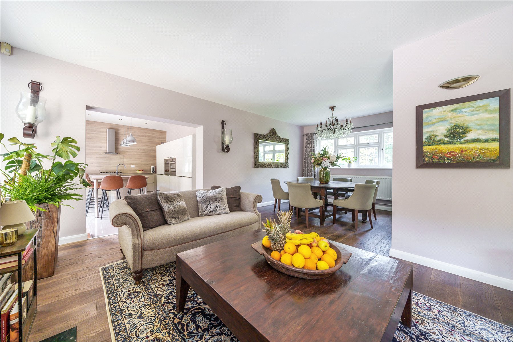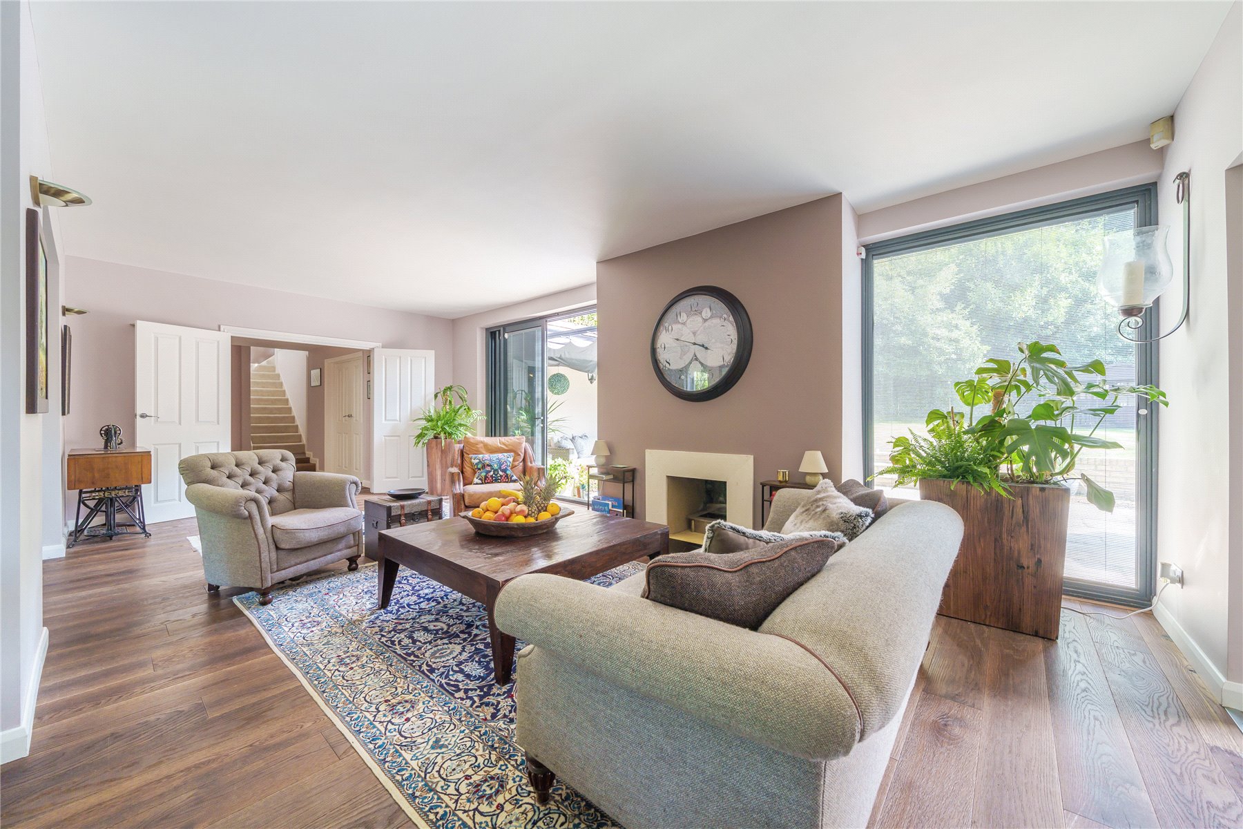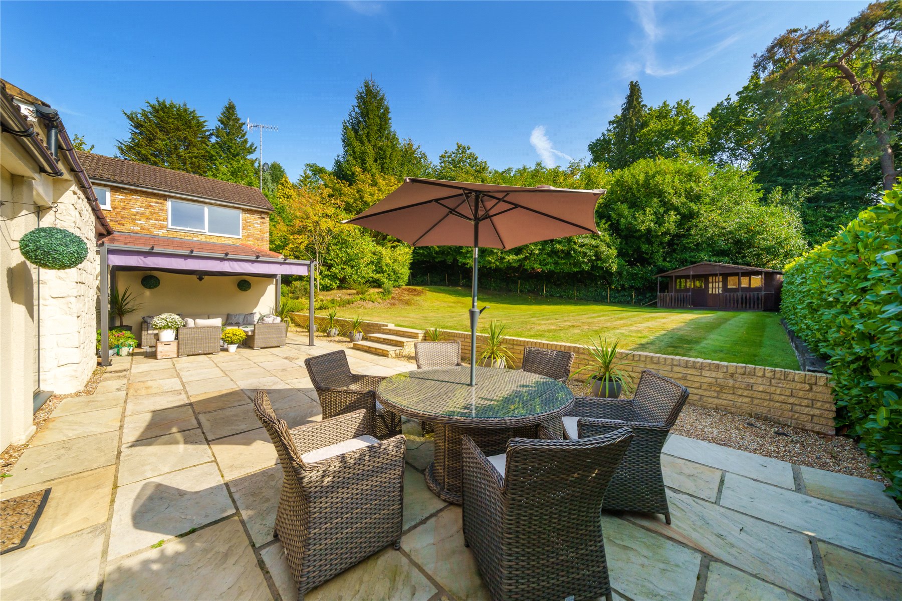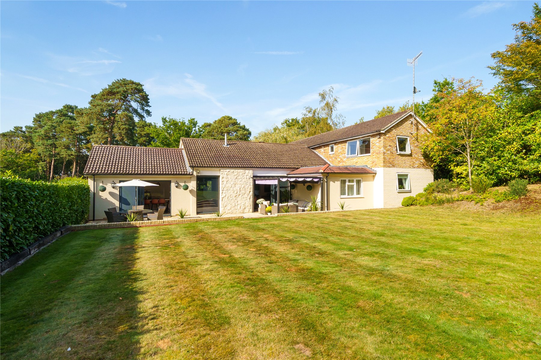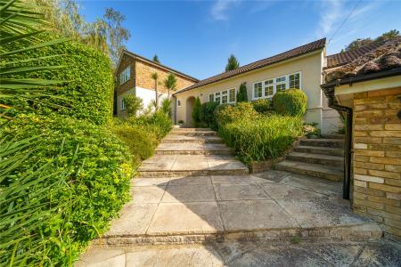 Impeccably extended and opened up to create a superbly flowing layout, Lowburn Leigh sits nestled away within the privacy and tranquillity of enviably sized gardens. Subtly hidden out of view from passers-by behind the considerable lawn and classical landscaping of its idyllic frontage, it is perfectly placed for the fairways of Woking Golf Club.