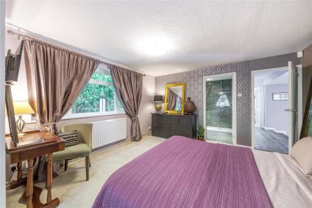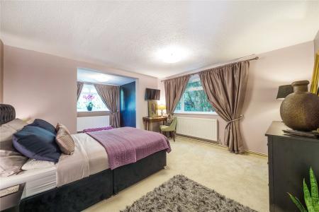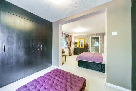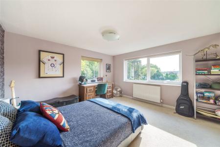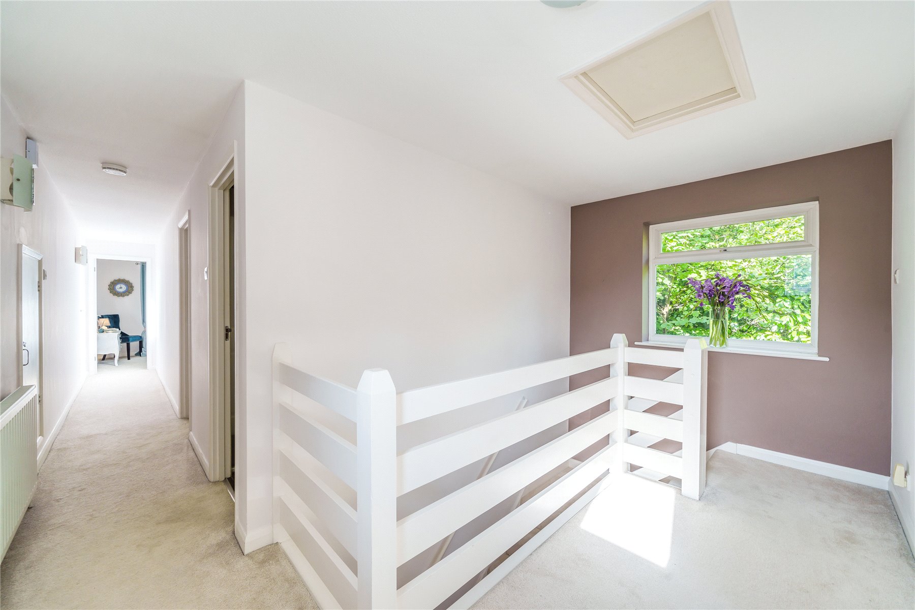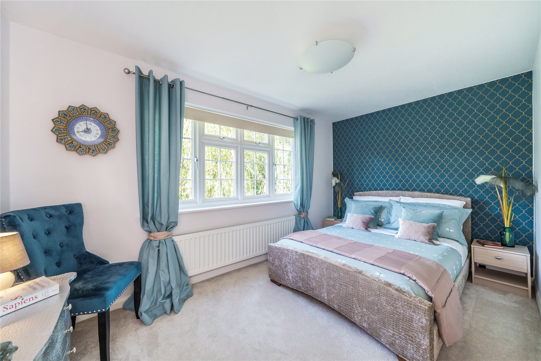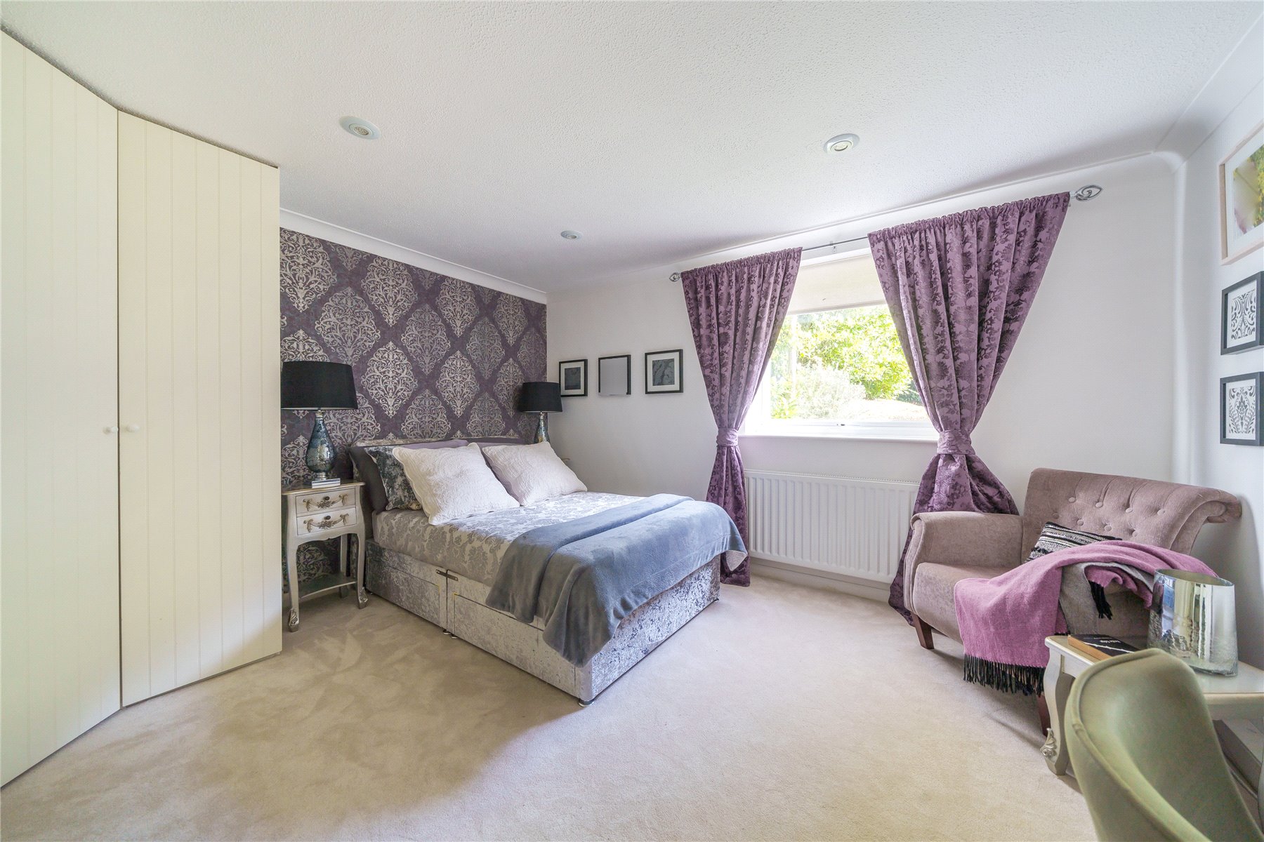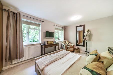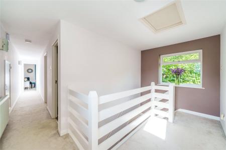 Generating a peaceful retreat away from the hubbub of the main living areas, a ground floor bedroom wing with plush feature patterns echoes the exemplary levels of presentation and adds to the cohesive feel of this Hook Heath home. An excellent principal bedroom has a deluxe fitted dressing room and en suite shower room and an equally notable second double bedroom has fitted corner wardrobes and an enviable en suite bathroom with access to hidden under-stairs storage. A separate family shower room completes this expansive ground floor, while upstairs a beautifully lit hallway opens onto an additional three double bedrooms and a bathroom, supplying an ideal degree of modern day family accommodation. The vendors are also offering no onward chain.
