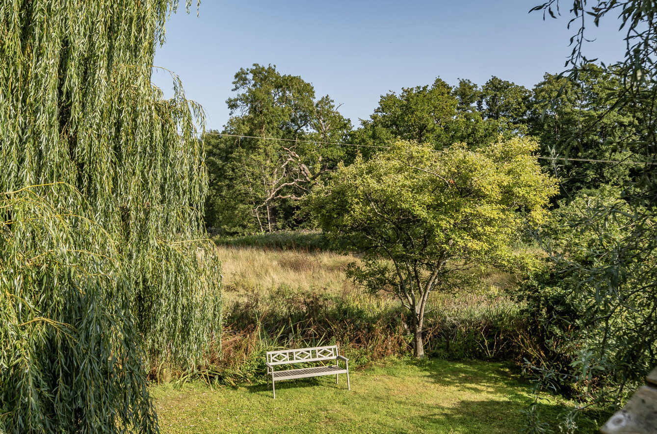 Outside there is a beautiful mature garden with views over the field and common land to the rear. To the front of the property there is a driveway providing off road parking for two cars. Beyond the South Facing private back garden is a wild meadow supporting a variety of wildlife such as deer and pheasants which are natural to the area and can be often seen, beyond this is The Hoe stream and an array of birdlife.