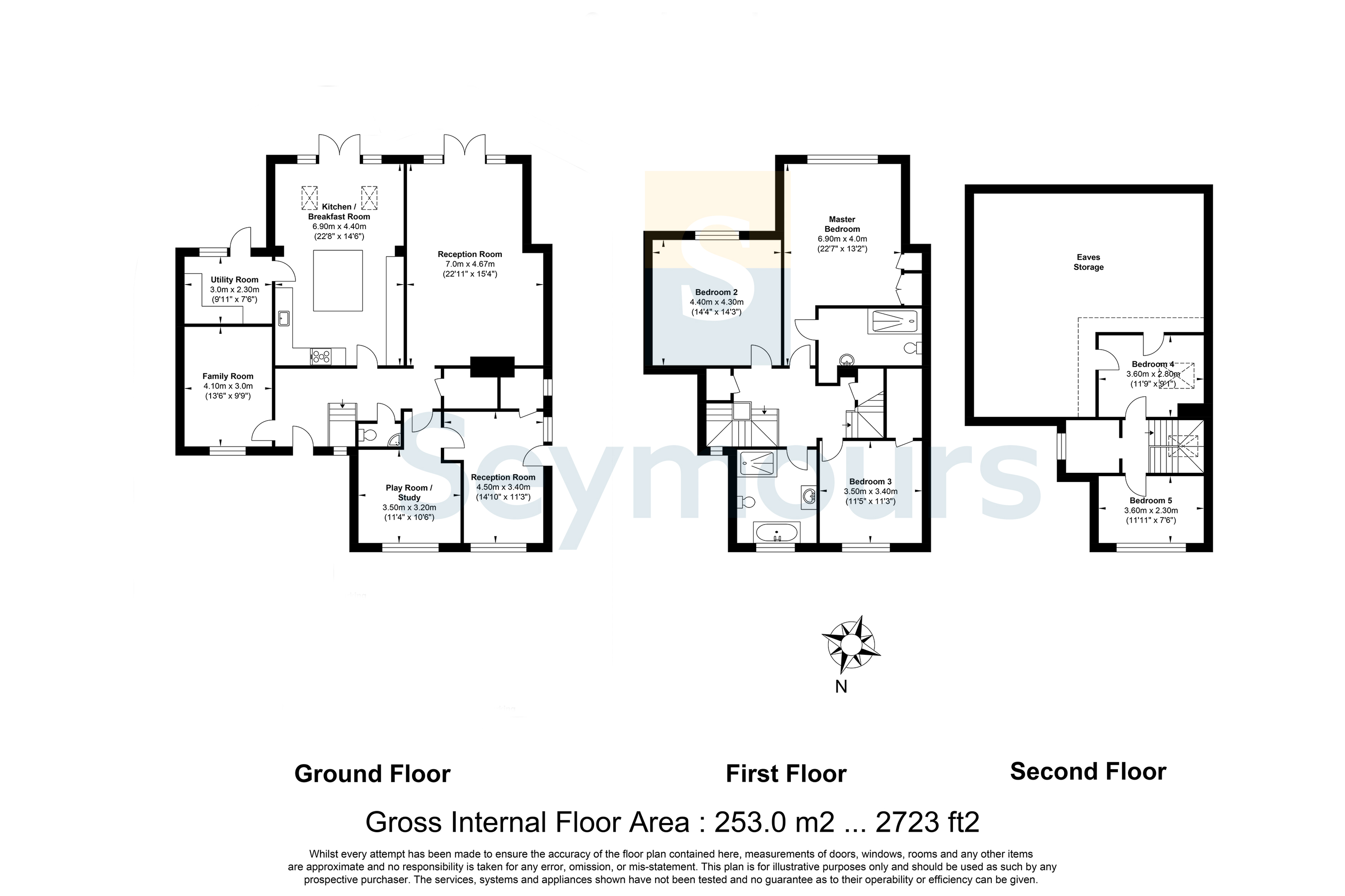 On the first floor, a bright and spacious landing leads to three large double bedrooms, including a master bedroom with ensuite shower room, and a four-piece family bathroom with roll top bath. The second floor has two further bedrooms, a walk-in wardrobe and plenty of eaves storage.