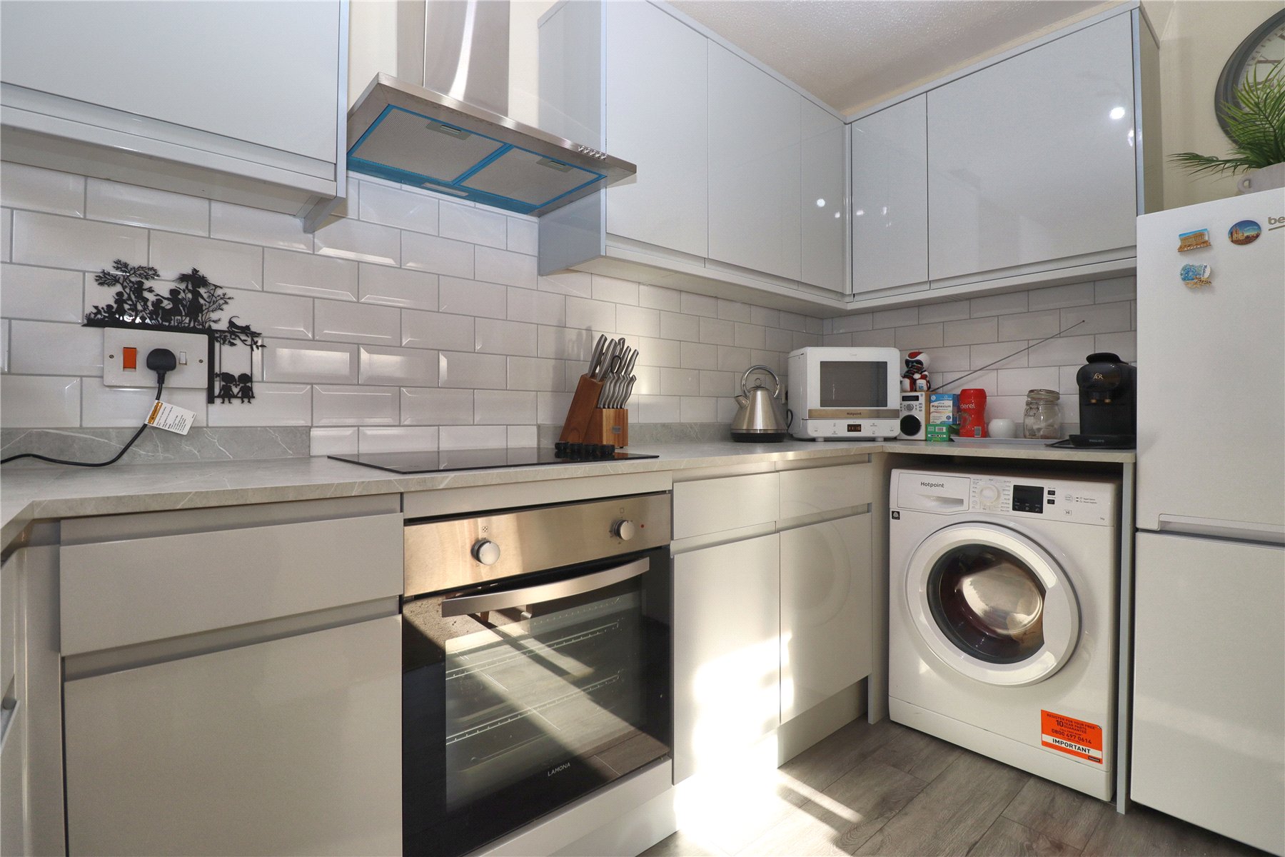 This well-presented one-bedroom ground floor flat is ideally located just a 10-minute walk from Woking Station and the town centre. Offered in excellent condition throughout, the property provides generous living space, ample natural light and practical storage, making it an appealing first-time purchase or low-maintenance home.The dual-aspect reception room is bright and welcoming, featuring new carpet and electronic blinds. The modern kitchen is well arranged with contemporary units and good worktop space, while the bathroom is finished to a similar standard. The double bedroom includes built-in cupboards, and new electric heaters have been installed to ensure efficient warmth during the colder months. The bedroom also allows for a practical work from home space. The property also benefits from an allocated parking space.LocationWoking boasts an active town centre with a wide choice of shops, restaurants and leisure facilities, including The New Victoria Theatre, cinema and the Lightbox Gallery. Outdoor enthusiasts can enjoy nearby green spaces such as Chobham Common National Nature Reserve, and scenic routes along the Basingstoke Canal and River Wey, suitable for walking, cycling and fishing (permit required). Local golf options are extensive, with courses at Woking, Westhill, Hoebridge, Worplesdon, Chobham and Foxhills, the latter also offering spa and hotel facilities.A practical home in a convenient location, well suited to first-time buyers and commuters alike.