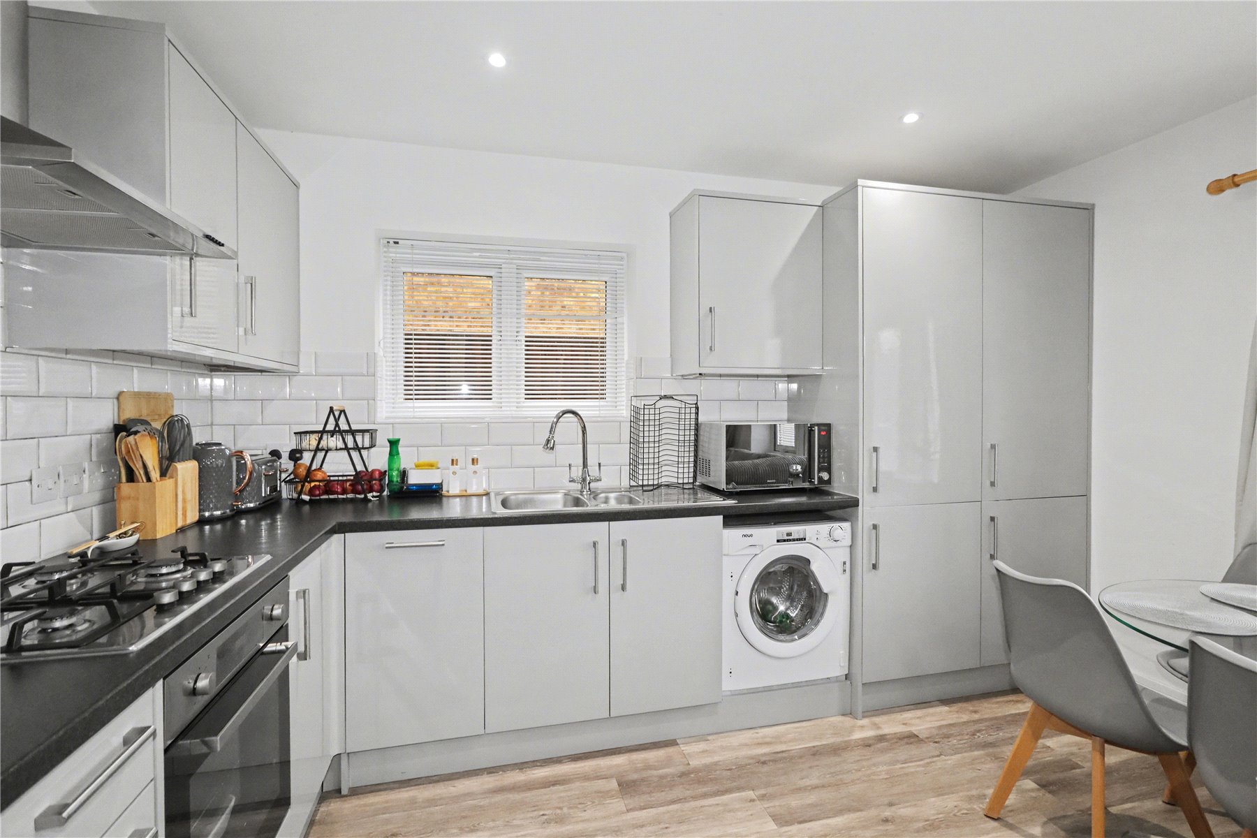 The accommodation comprises a generous open-plan kitchen/living room, a double bedroom and a modern bathroom. The kitchen is fitted with contemporary units and integrated appliances, and the property is served by gas central heating.
