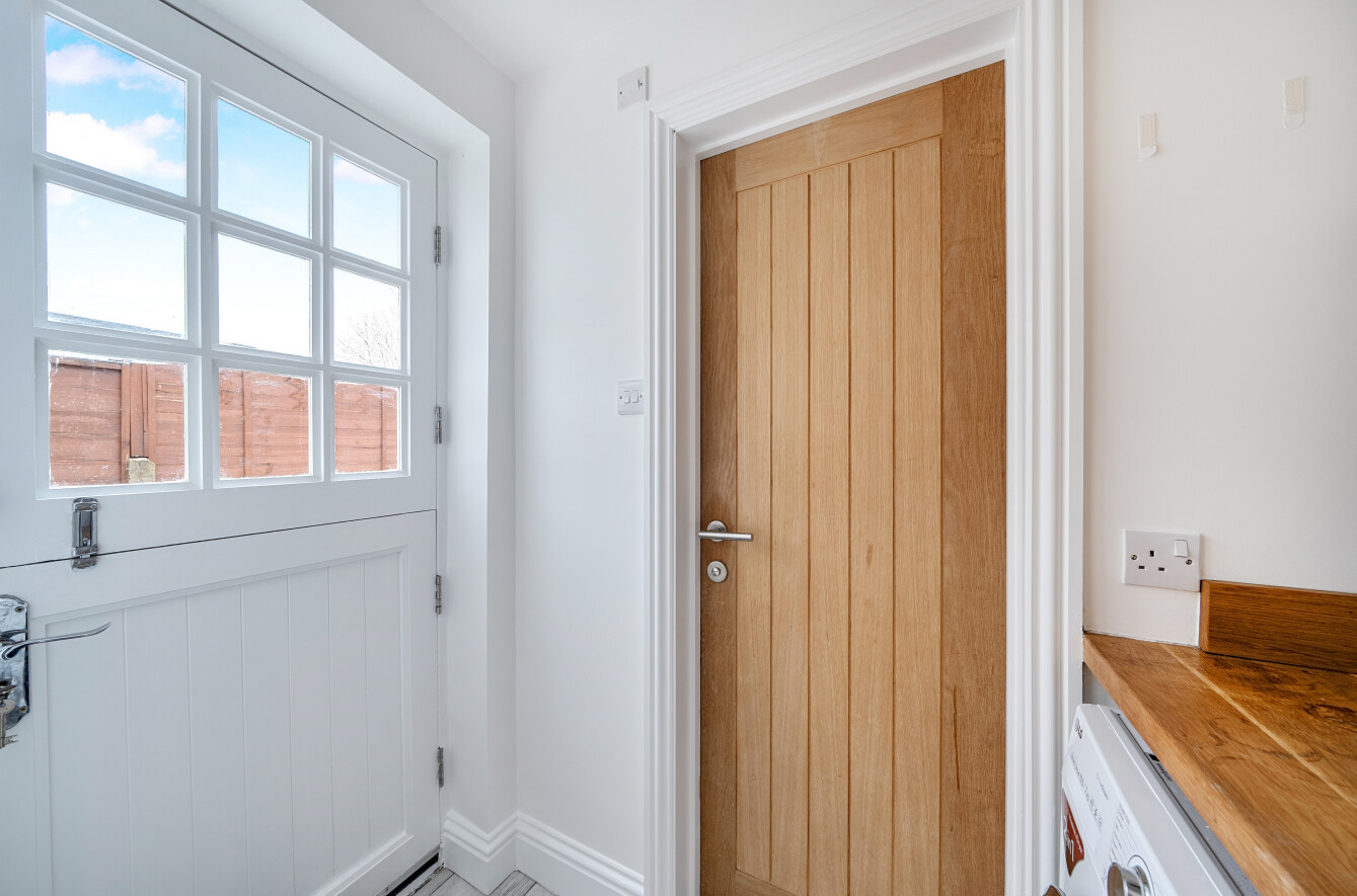 On the first floor are three bedrooms and a separate shower room. The principal bedroom is a generous double room, complemented by a further double bedroom (104 x 92). Bedroom three would serve perfectly as a single bedroom, nursery or home office. A modern shower room with WC and wash basin completes the first floor.