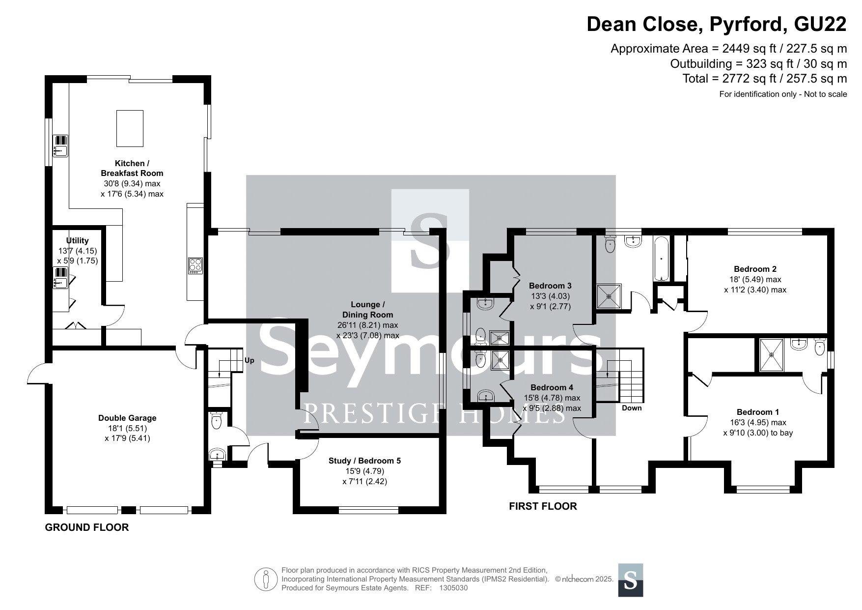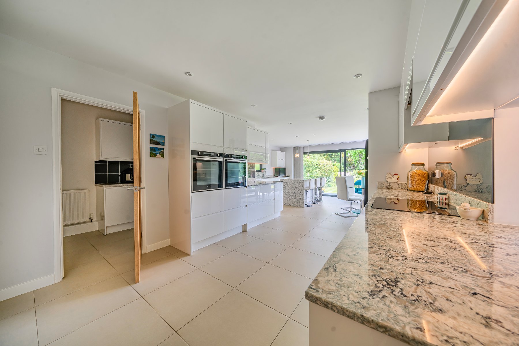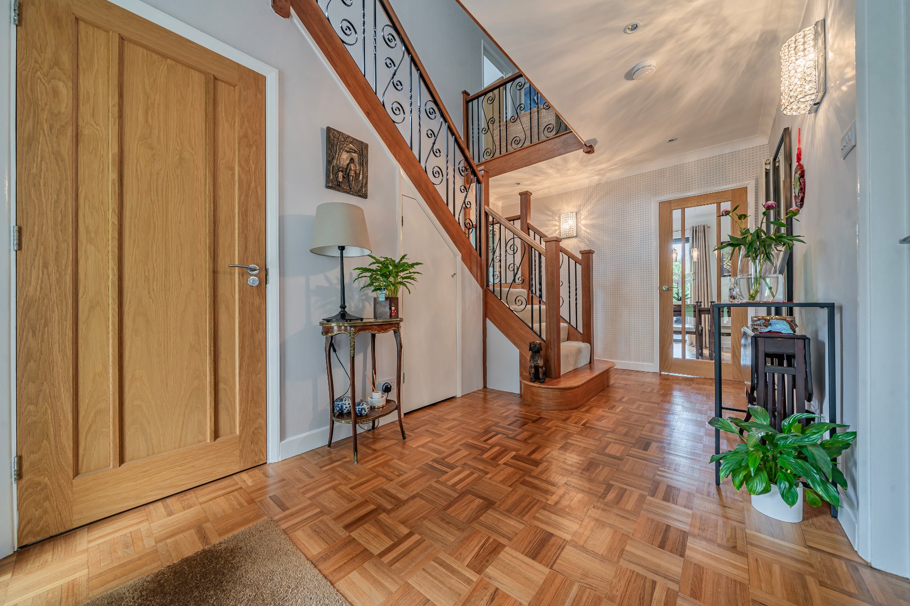 An outstanding 5 bedroom detached family home in a prime cul-de-sac location. A truly outstanding and cleverly extended 5 bedroom detached family home, presented in immaculate condition throughout and set within beautifully manicured gardens. This impressive residence is ideally located in a highly sought-after cul-de-sac, equidistant between Woking and West Byfleet town centres, with easy access to Pyrford Common and both mainline railway stations (London Waterloo in under 30 minutes). Key features include a spacious L-shaped lounge/dining room with direct access to the garden, a versatile study/bedroom, and a luxurious kitchen/breakfast room extensively fitted with quartz worktops, underfloor heating and additional sliding patio doors to the garden. Except for the tiled kitchen/breakfast room, the ground floor benefits from a beautifully maintained and seamless parquet floor throughout. A stunning entrance hall with an elegant turning staircase and galleried landing creates a memorable first impression, while additional ground floor features include a cloakroom and a practical, well-equipped utility room. Upstairs, the accommodation continues to impress, offering 5 generously sized bedrooms. 3 of the bedrooms benefit from their own en-suite shower rooms, while the fourth is served by a modern family bathroom. Outside you have the added benefit of a double garage and an extensive driveway for multiple cars.