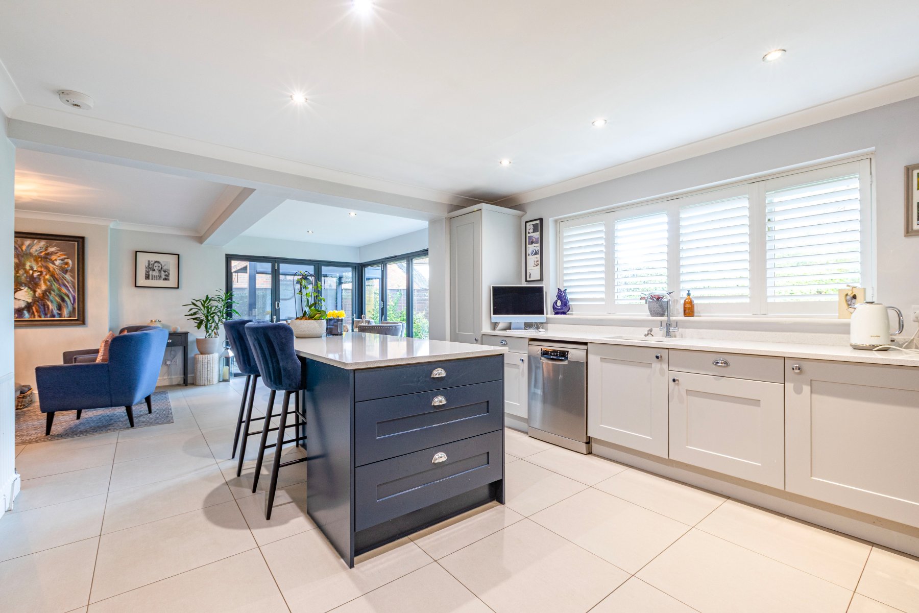 Peacefully and conveniently situated in one of the areas most sought-after locations, and within a short walk of Pyrford village shops and the highly regarded Pyrford Primary School (rated Outstanding by Ofsted), this attractive and beautifully presented 5-bedroom detached family home has been significantly improved in recent years and extends to approximately 3,045 sq ft. Upon entering the property, you are welcomed by a spacious galleried landing. The accommodation comprises 3 separate reception rooms, while the impressive kitchen/dining/family room opens onto the rear garden and benefits from access to a useful utility room. The property offers 5 well-proportioned bedrooms. The master bedroom features a dressing room and a luxurious en-suite bathroom, while a guest bedroom also enjoys its own en-suite. A contemporary family shower room serves the remaining 3 bedrooms. Overall, the house provides flexible living space that will appeal to discerning buyers and perfectly suits modern family living.