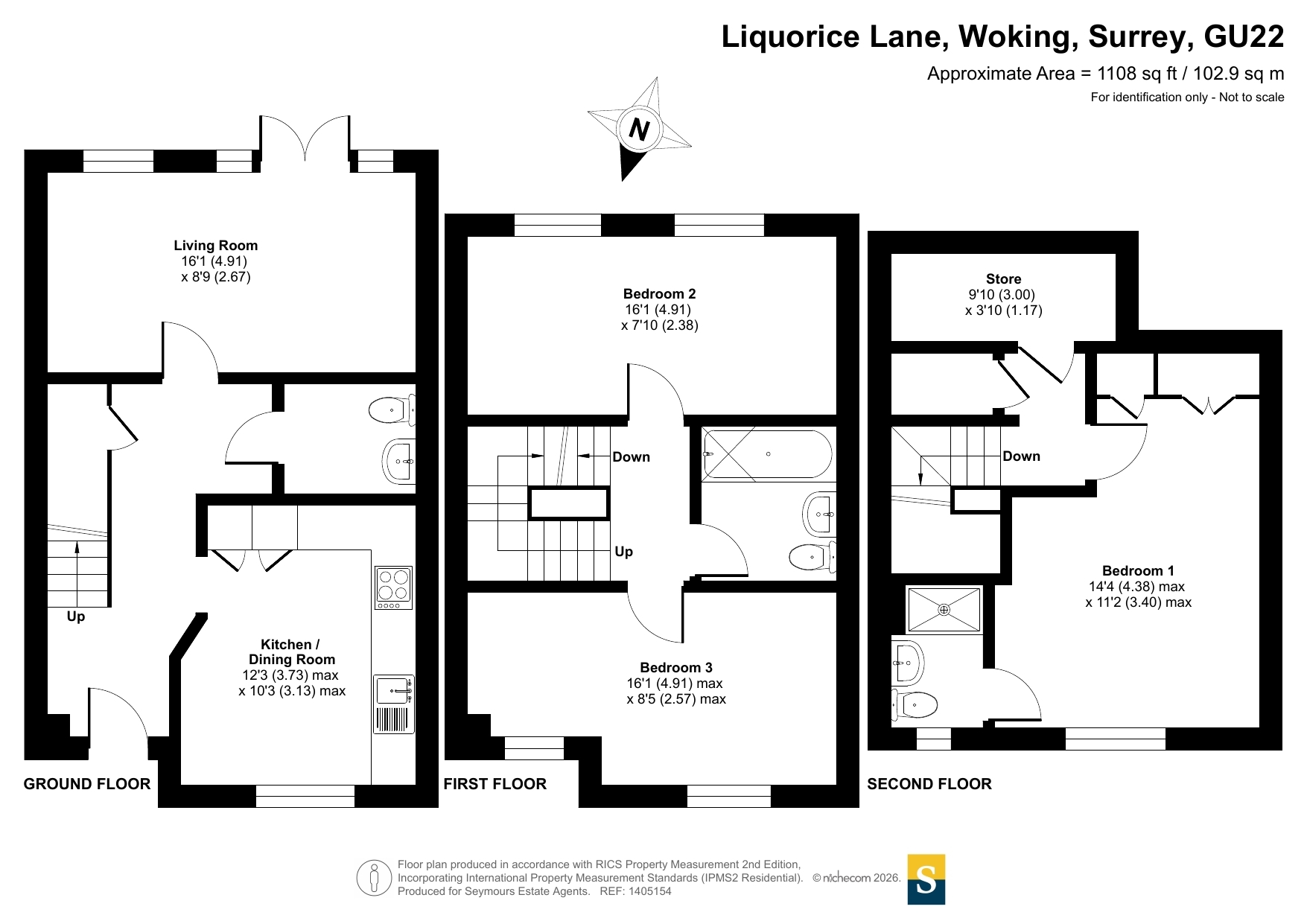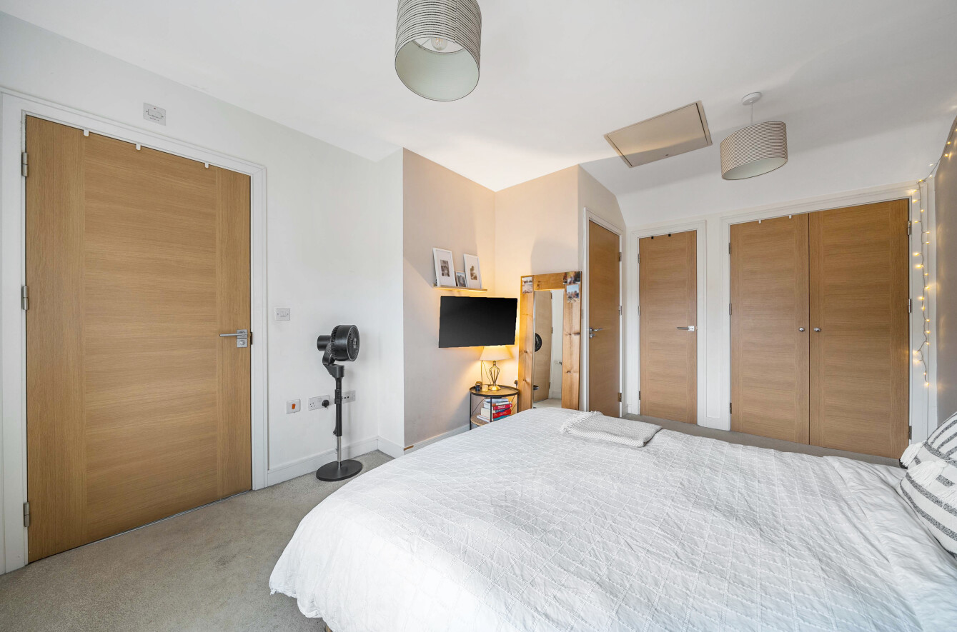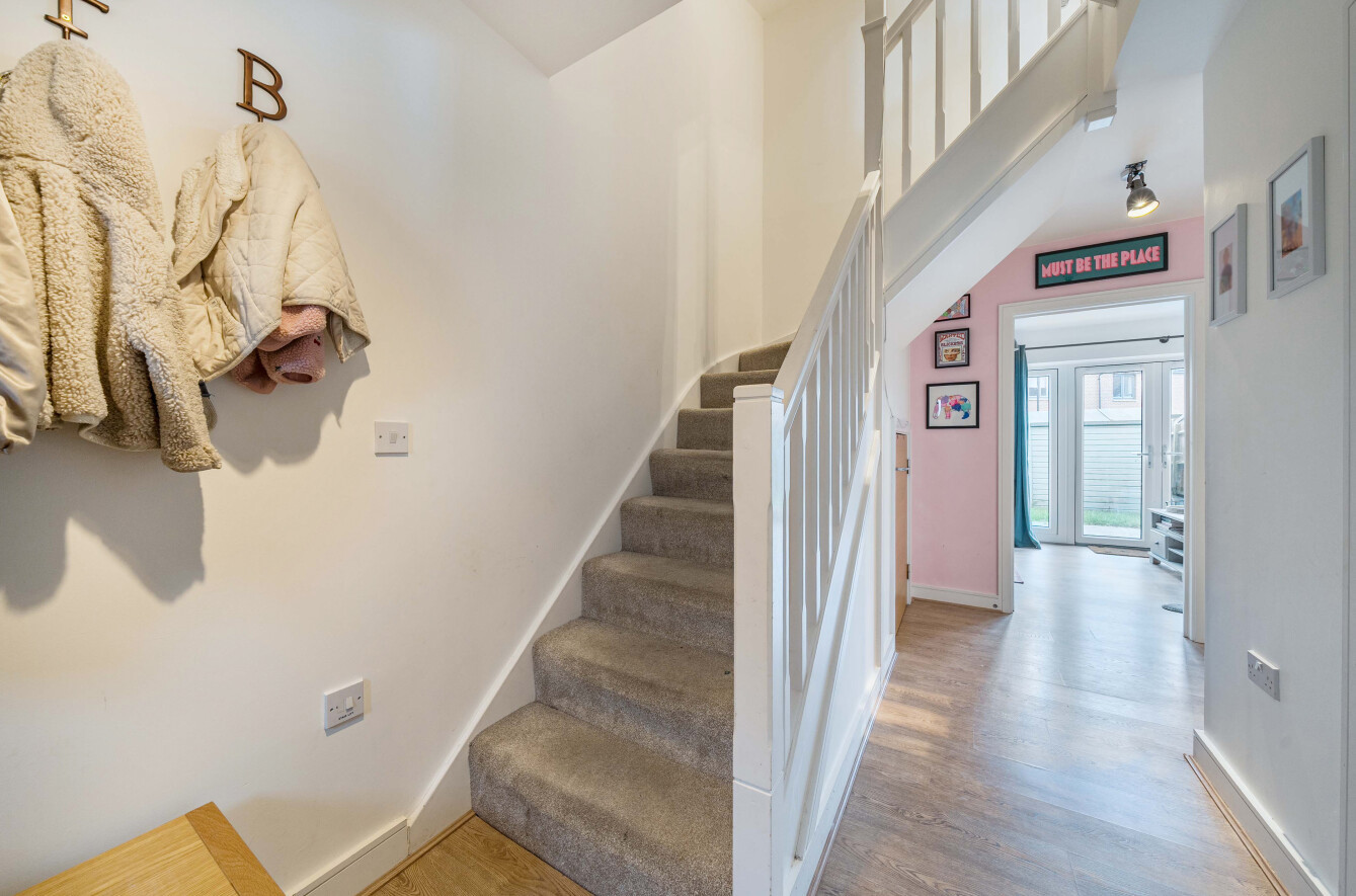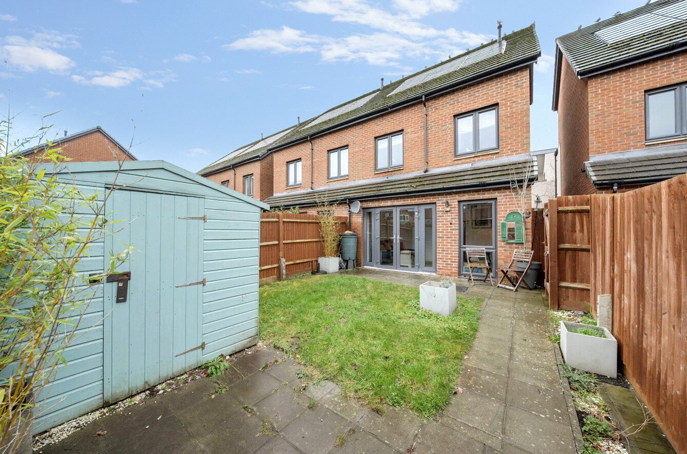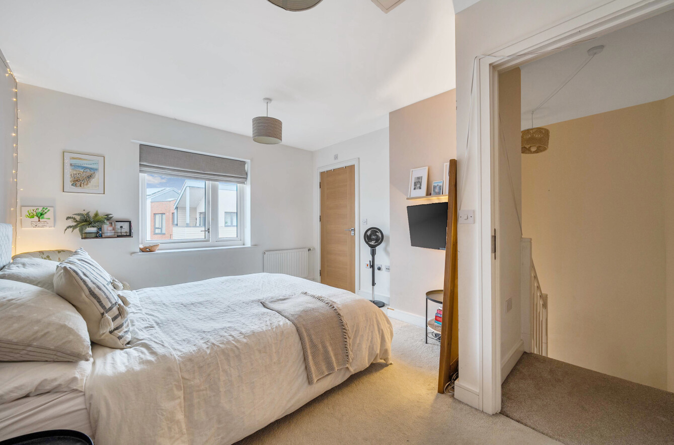 Immaculate, contemporary townhouse, offering well-proportioned and highly versatile accommodation arranged over three floors. This attractive home further benefits from off-road parking to the rear and a private garden, making it ideal for modern family living.The ground floor features a fabulous kitchen/dining room, fitted with a comprehensive range of base and eye-level units and fully equipped with integrated appliances. To the rear, the bright living room enjoys double doors opening directly onto the garden, creating a wonderful indoor-outdoor flow. A cloakroom, with plumbing in place for conversion to a wet room, completes this level.On the first floor are two generous double bedrooms, both dual aspect, along with a well-appointed family bathroom. The master suite occupies the entire top floor and boasts two built-in wardrobes, an en-suite shower room, and extensive eaves storage, plus access to a partially boarded loft.Kingsmoor Park enjoys a prime position in the popular Westfield area of Woking, offering excellent commuter links via the M25 and M3, as well as easy access to Heathrow and Gatwick airports. Woking mainline station provides frequent services to London Waterloo in under 30 minutes, making this an ideal location for commuters.Woking itself is a thriving town, home to Surreys largest covered shopping centre, two theatres, six cinemas, and a vibrant nightlife along Chertsey Road. With an excellent selection of primary and secondary schools, the nearby University of Surrey, and abundant green spaces including country parks, commons, and heathlands, Kingsmoor Park is perfectly suited to growing families and professionals alike.