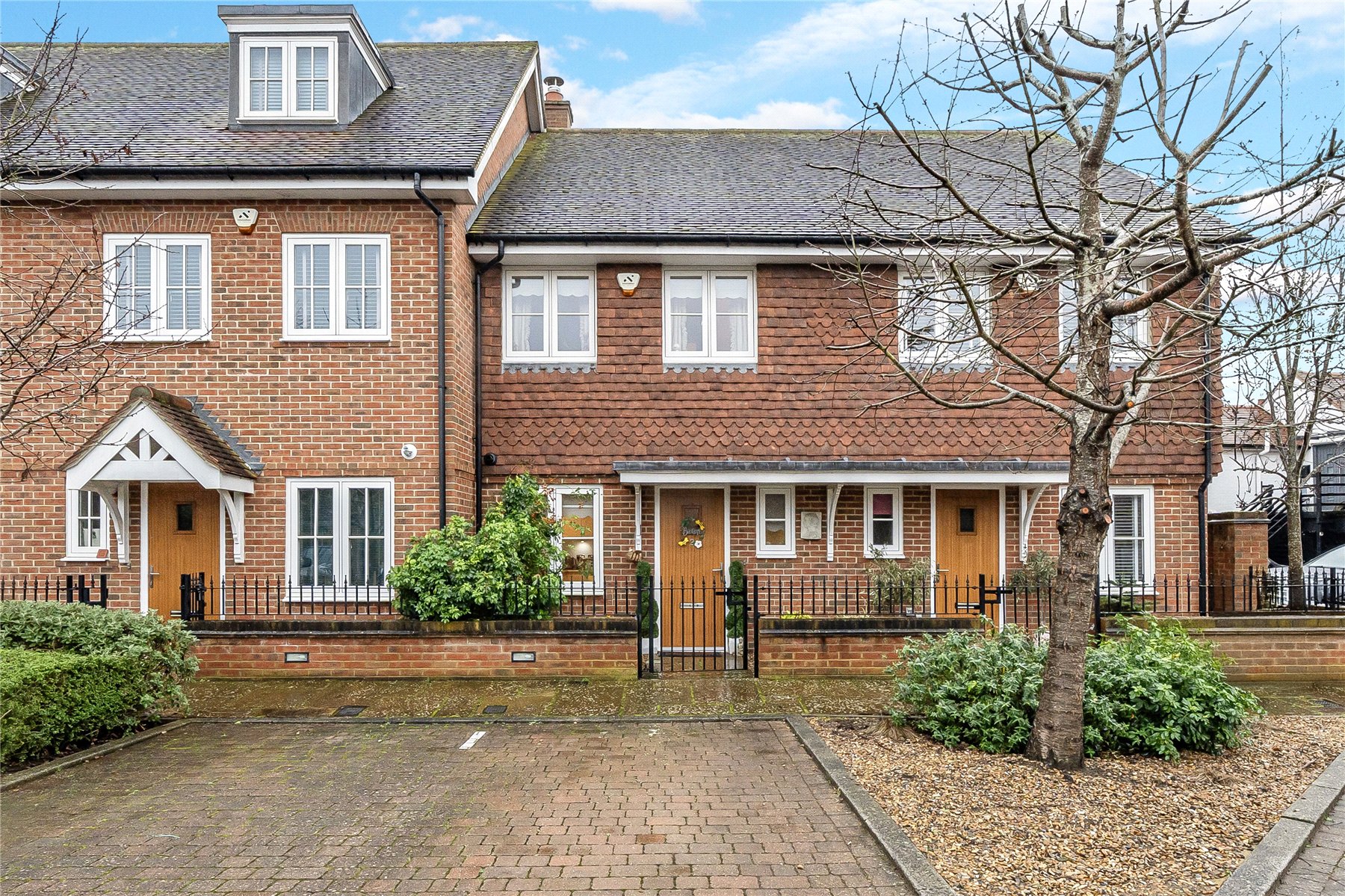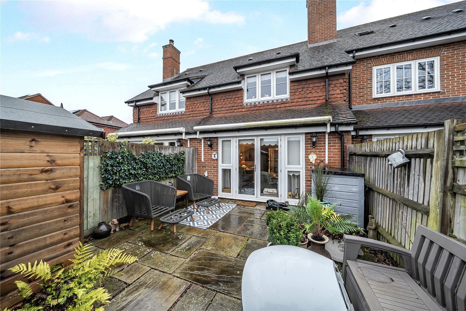 Outside, the property enjoys allocated parking for two vehicles, while mature landscaping enhances the attractive surroundings of this small and friendly community. The enclosed rear garden is neatly paved for low-maintenance living, includes a shed in one corner and benefits from a rear access gate.