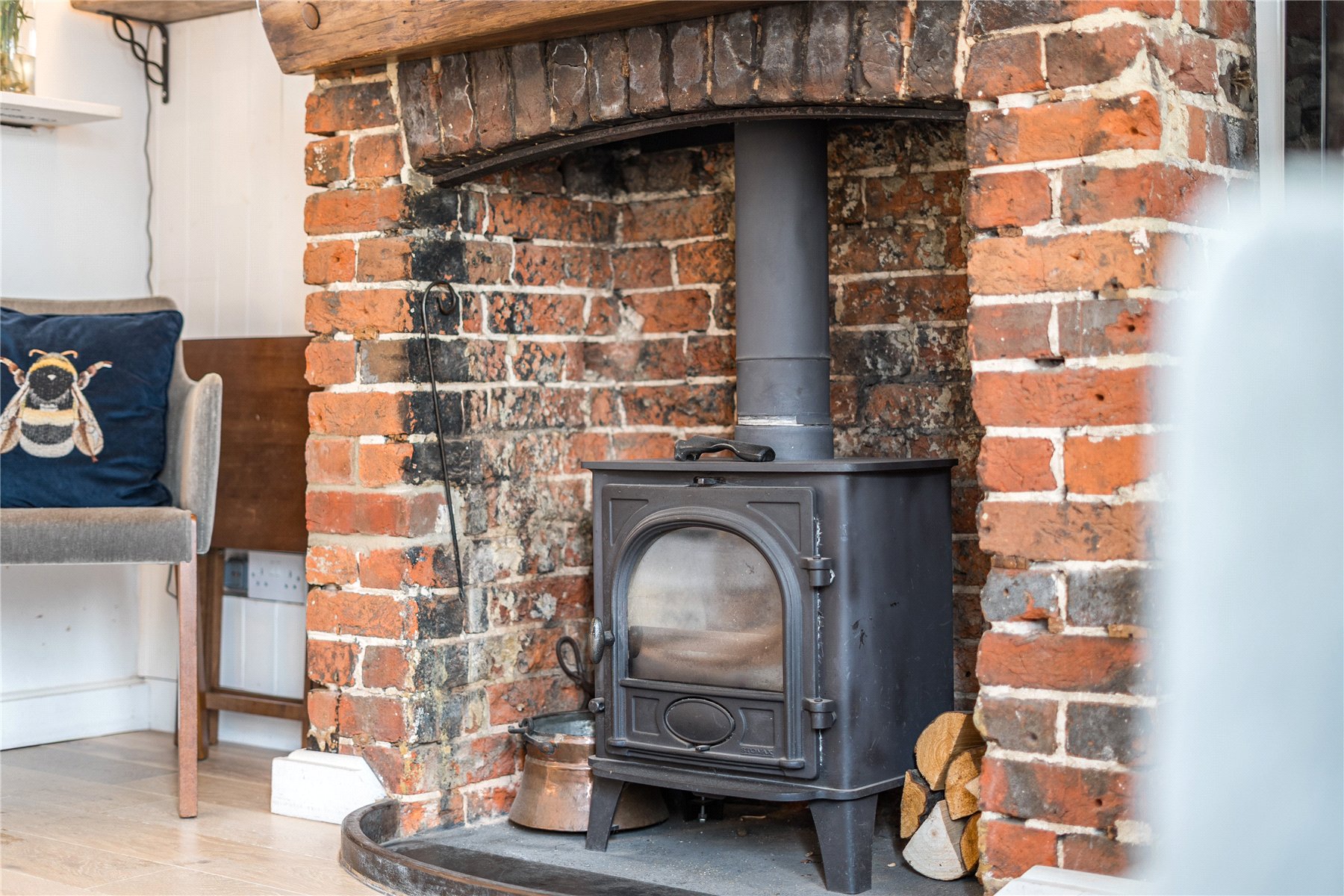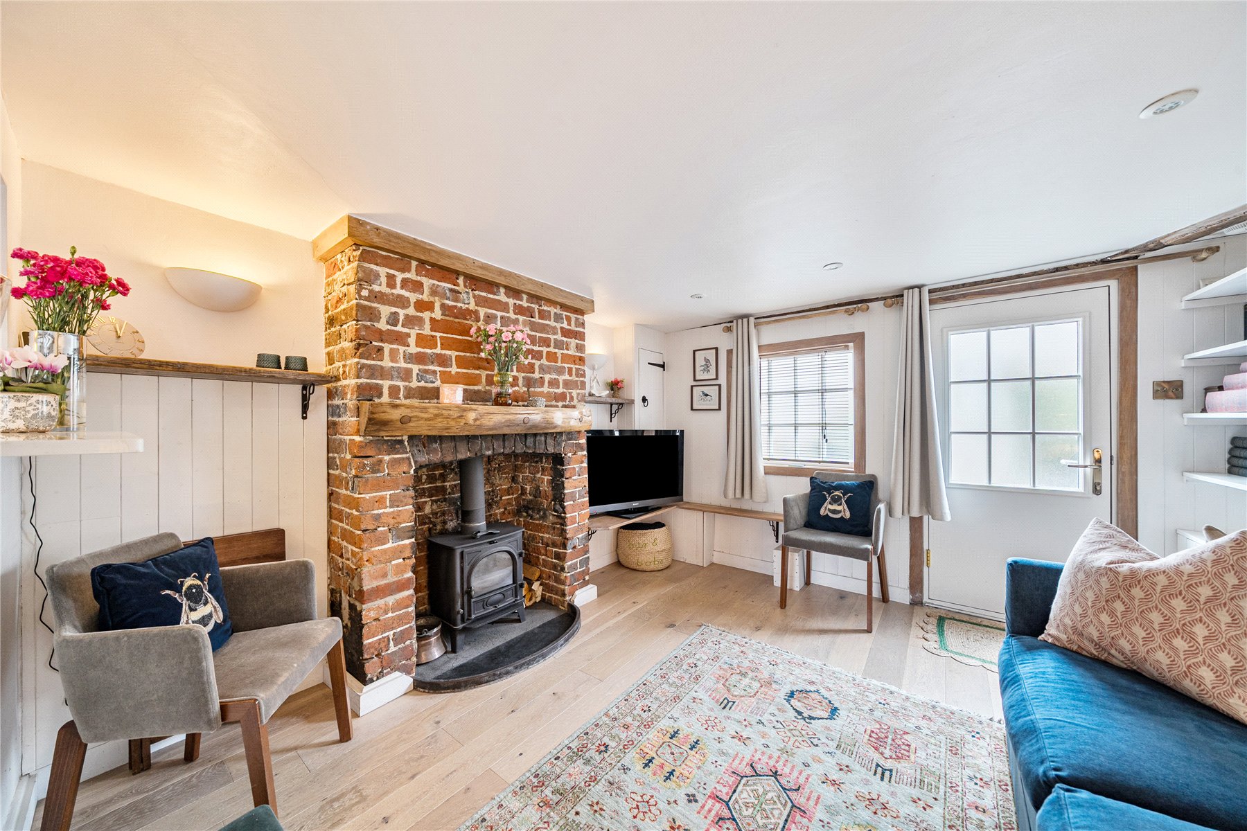 Step inside and youre greeted by a warm and inviting living space, where traditional features meet modern comforts. The original fireplace, complete with a wood-burning stove, forms a cosy focal point, ideal for relaxing evenings. The kitchen is thoughtfully designed with a sleek quartz worktop and a cleverly arranged dining area, which flows seamlessly into a flexible inside/outside entertaining spaceperfect whether youre enjoying a quiet supper or hosting friends. An abundance of cleverly thought out storage is located under the stairs.