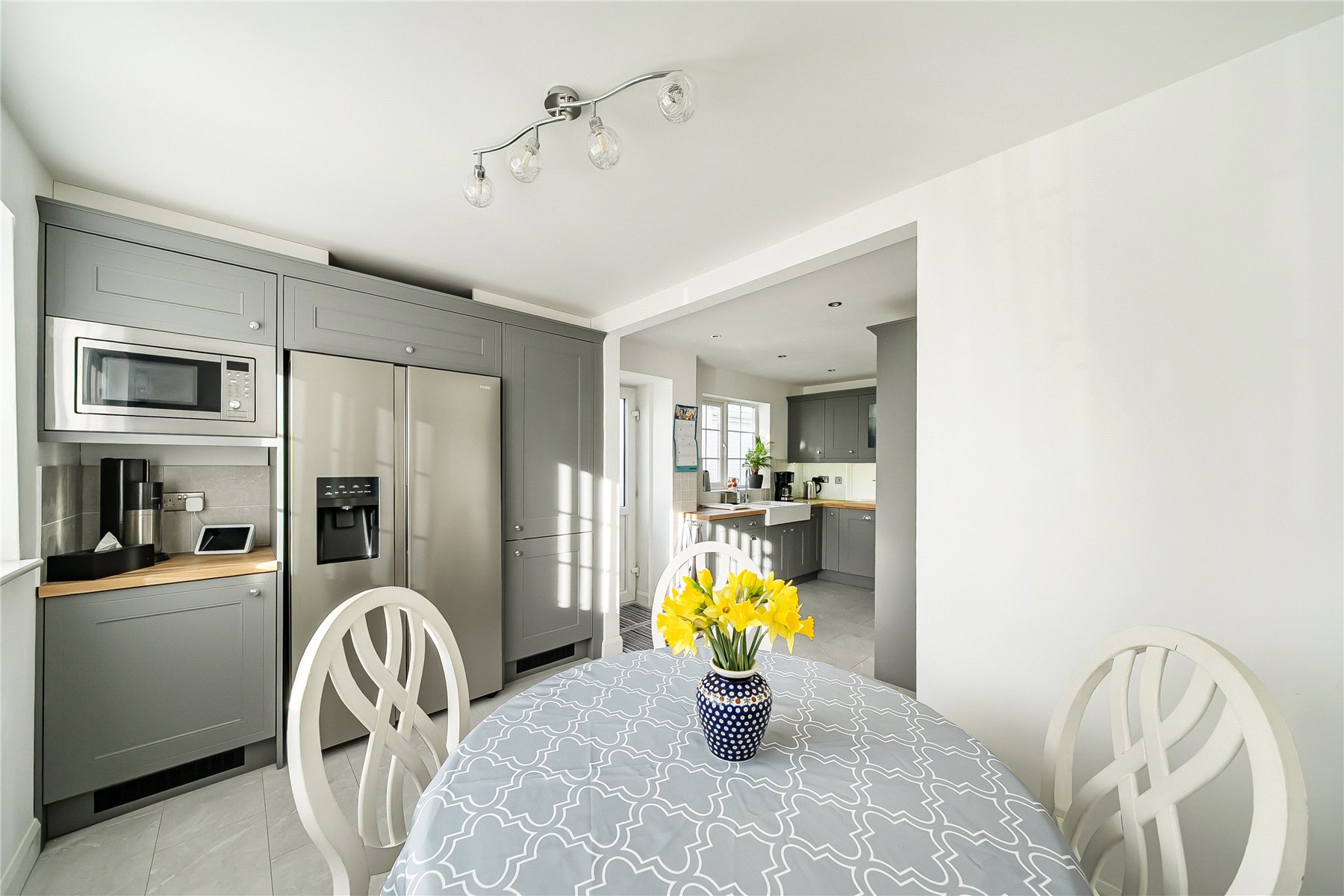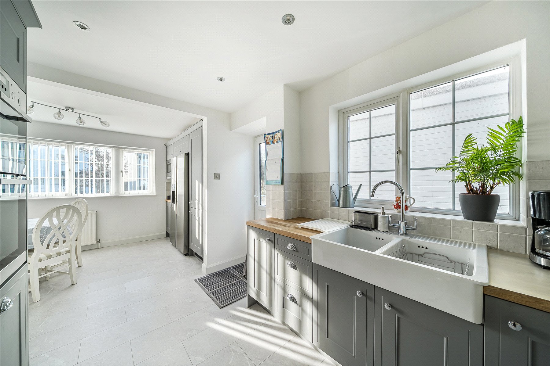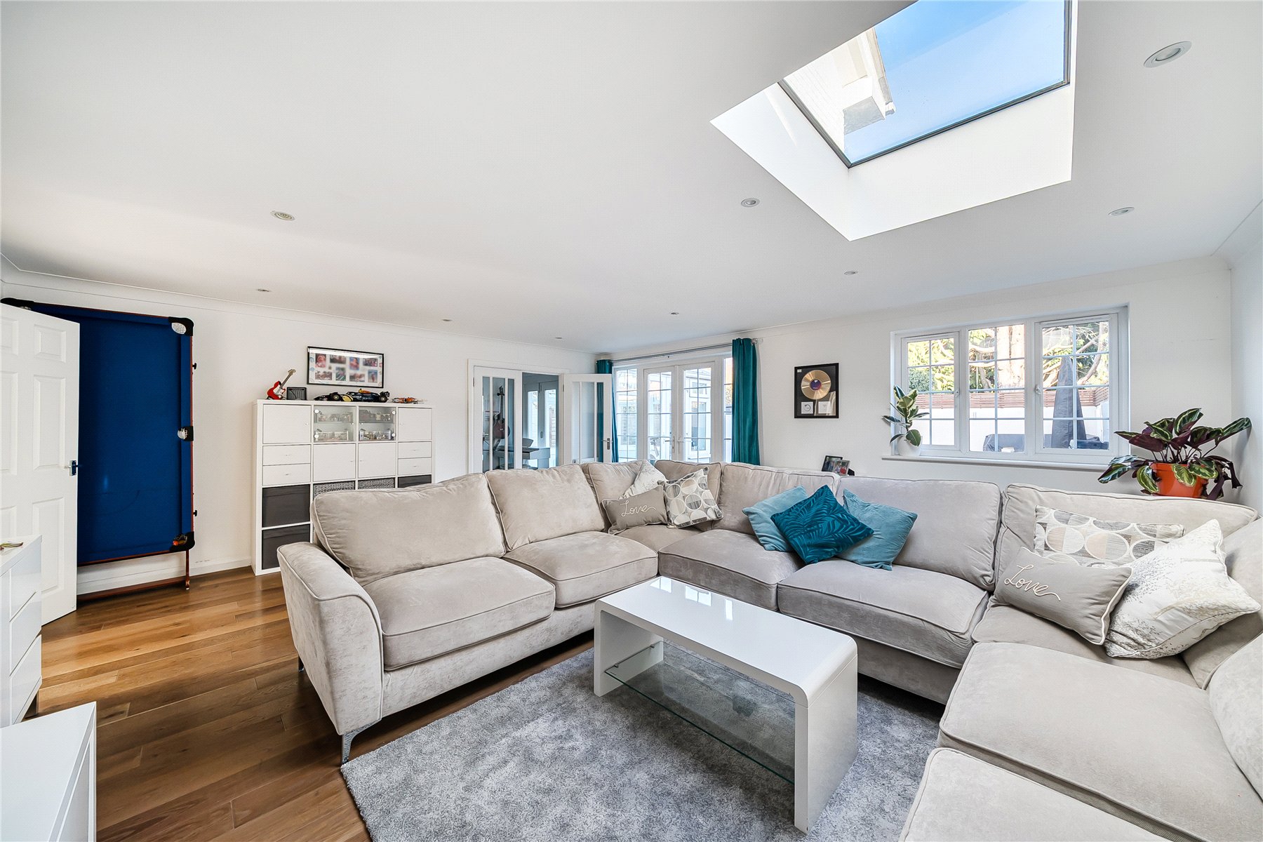 The home boasts three well-proportioned reception spaces, each thoughtfully connected to support a natural flow throughout the ground floor. The spacious sitting room features a roof light that floods the space with natural light and French doors that open directly into the rear garden.