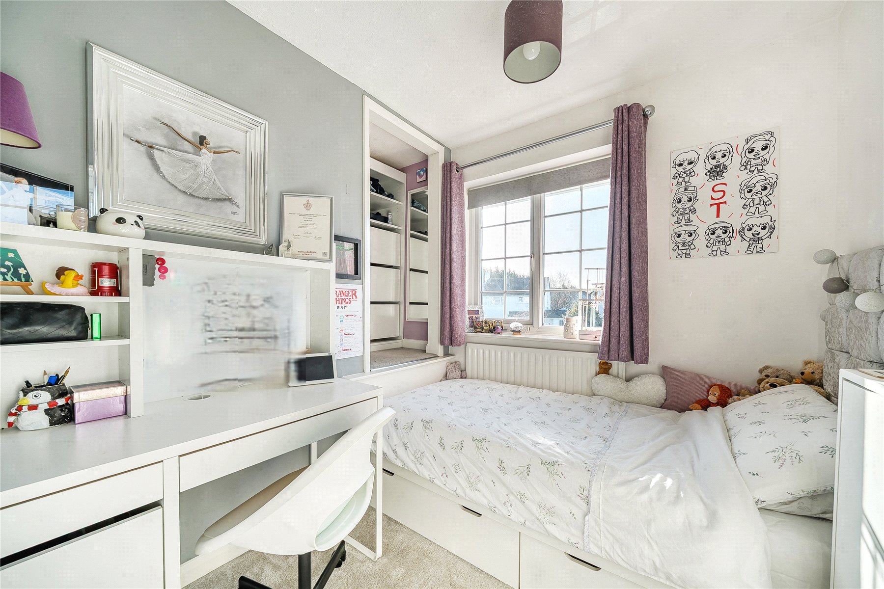 Upstairs, there are four good-sized bedrooms, including a generous master suite complete with an ensuite and built-in storage, bedroom two also benefits from fitted storage. The large family bathroom is fully tiled, and includes a shower over the bath.