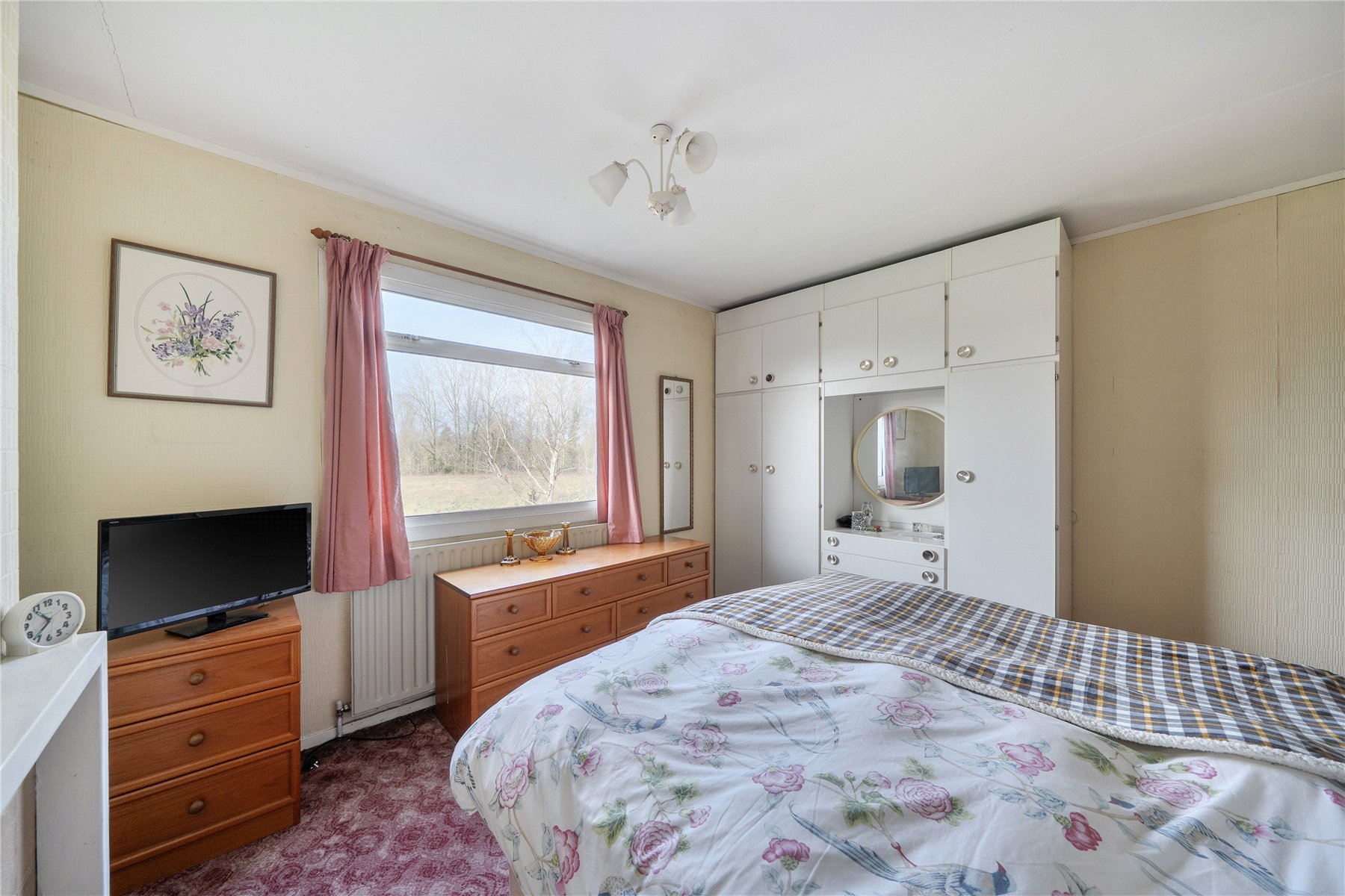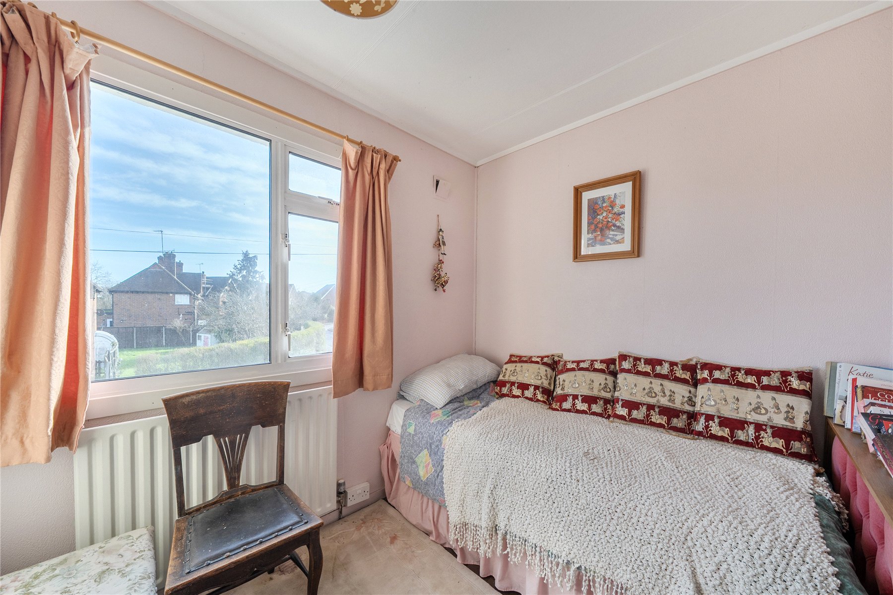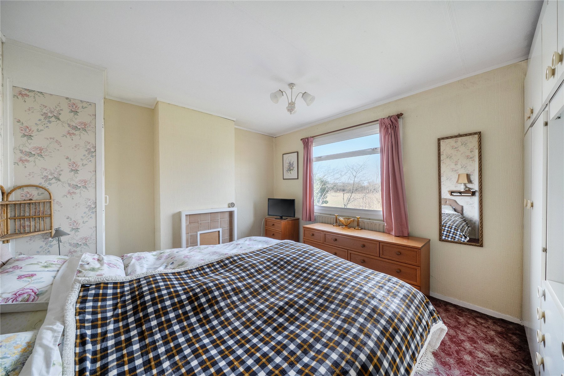 A front porch provides one of two access points into the home, with a further side entrance conveniently located next to the driveway. From the porch, a door opens into the entrance hallway which gives access to all the principal living rooms, setting the tone for a well-balanced and practical layout. The family room features an open fireplace, enhanced by sliding patio doors that open directly onto a rear garden patio perfect for relaxing while enjoying the outlook. The larger sitting room benefits from built-in storage and a charming bay window that frames views over the garden and the unspoilt countryside beyond, filling the space with natural light. The bright galley kitchen offers a generous range of fitted units, while a step down leads into a versatile utility/dining area. Here youll find additional storage, a WC and an external door that provides easy side access to the property ideal for busy family life. Upstairs there are three double bedrooms, all with built-in storage and the family bathroom.