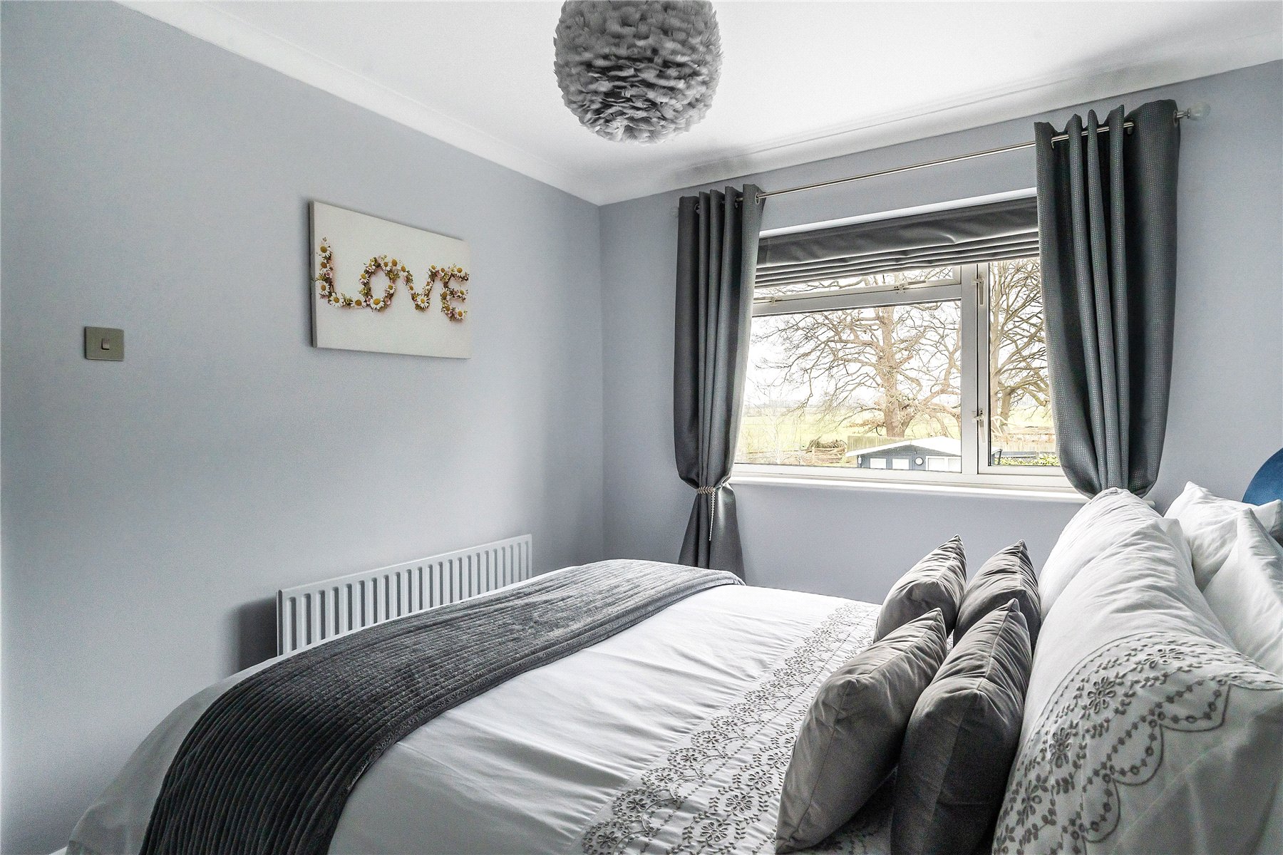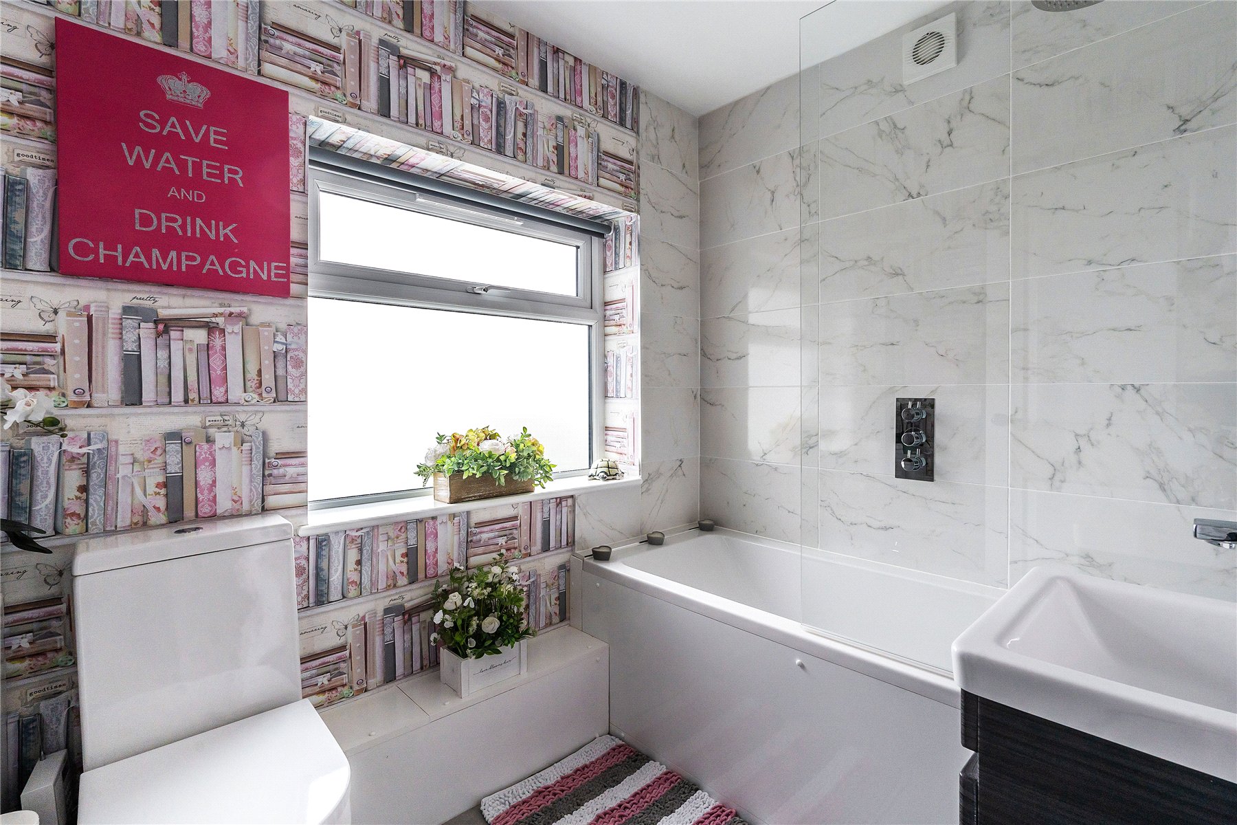 At the front of the property, a cosy TV room which can also be used as a fourth bedroom enjoys a picture window, creating a bright and welcoming space. Across the hallway, a large utility room leads into a sleek and contemporary bathroom. The heart of the home is the impressive central sitting room a wonderfully bright and airy space with a feature fireplace, plenty of room for both a seating area and dining table, and direct access into the kitchen/breakfast room.