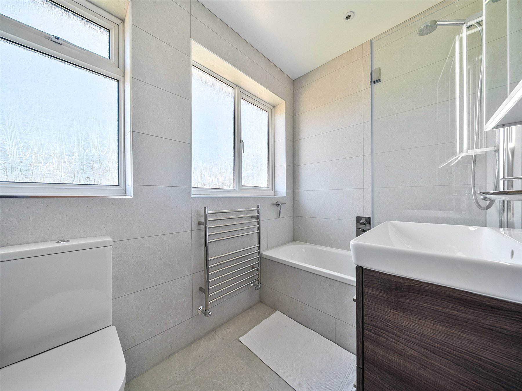 Upstairs, a spacious landing with built-in storage leads to three well-proportioned bedrooms: two doubles one featuring built-in wardrobes and a versatile single room, perfect as a nursery or home office. The family bathroom is fully tiled and finished to a high standard, offering both style and comfort.