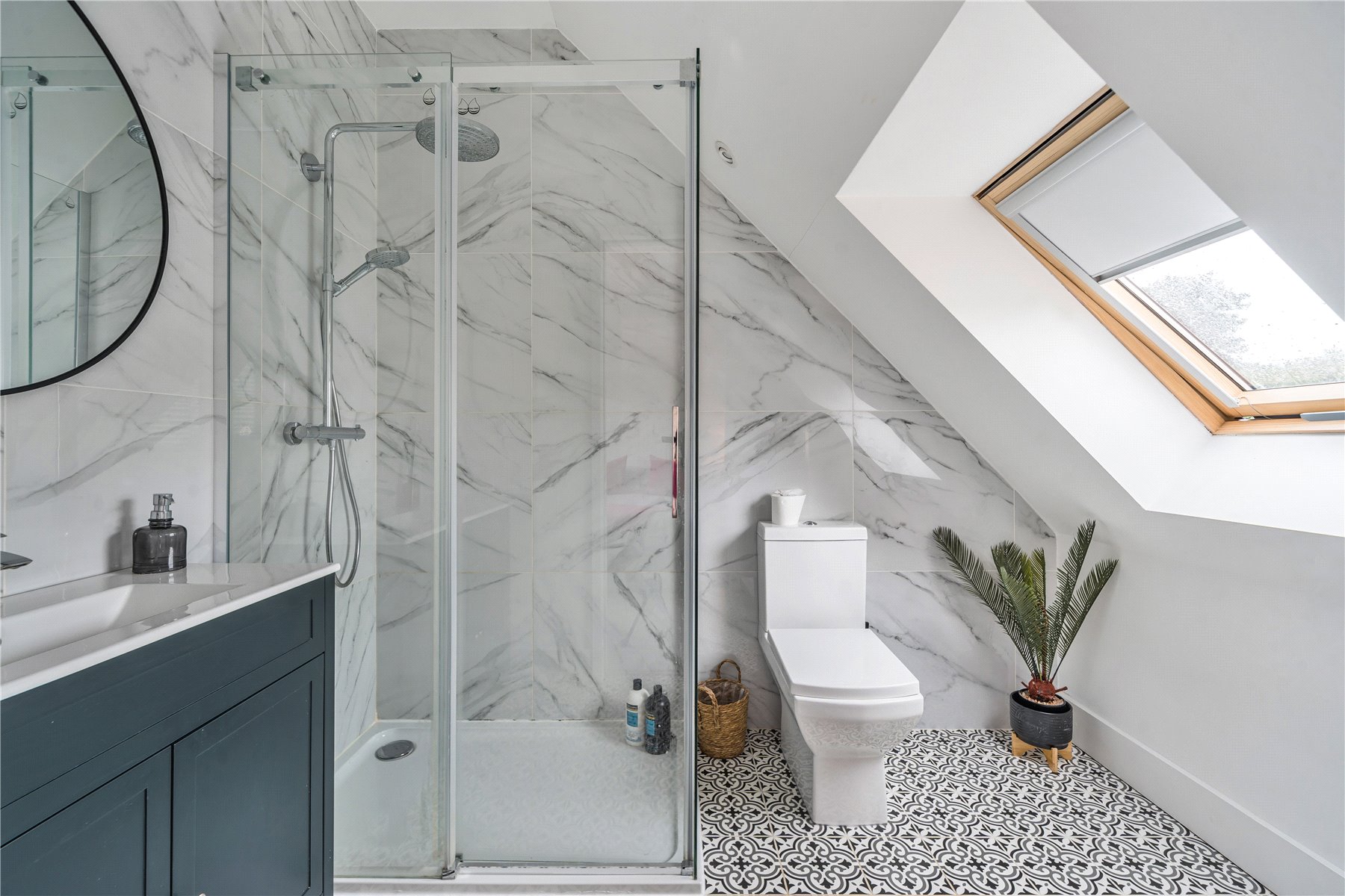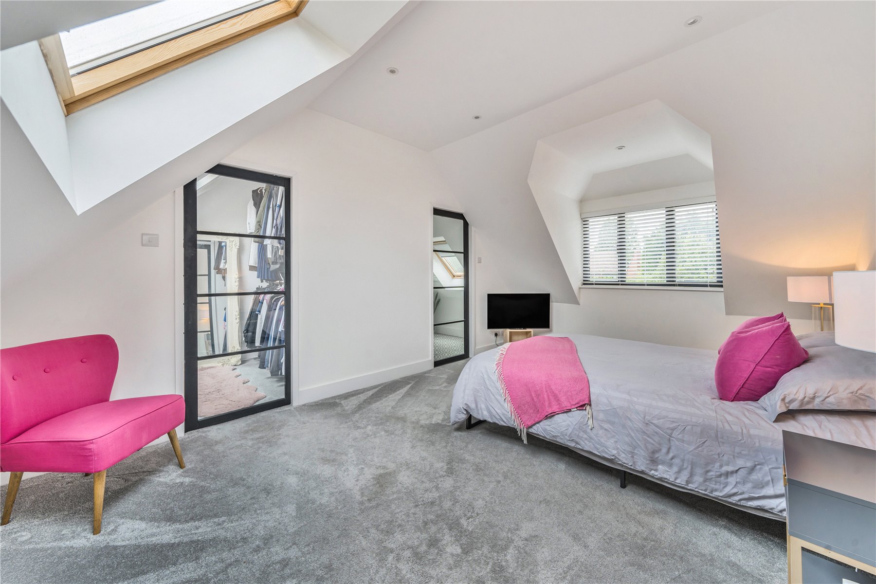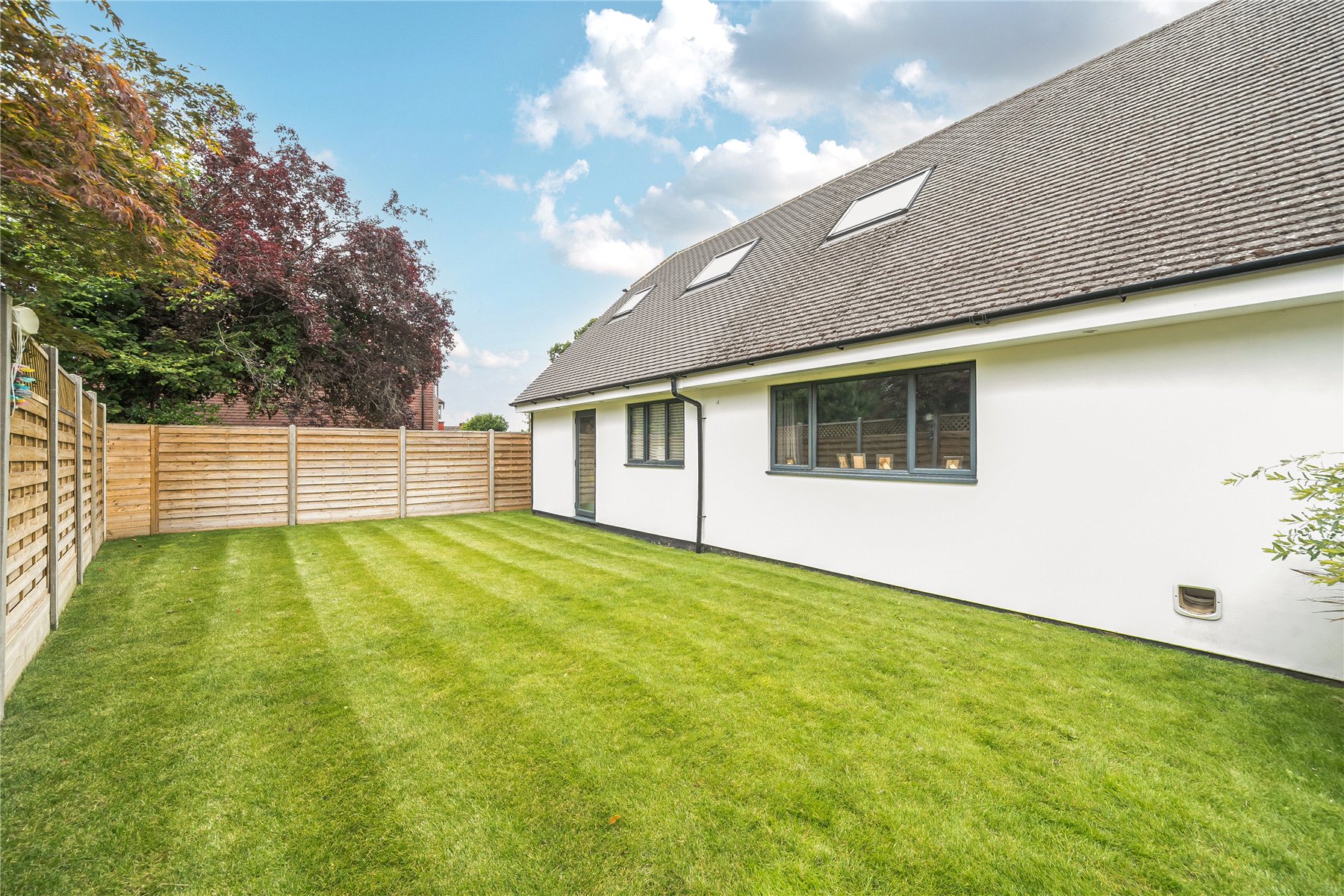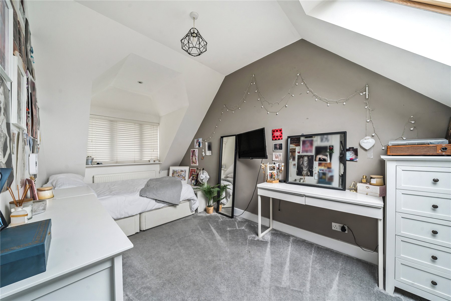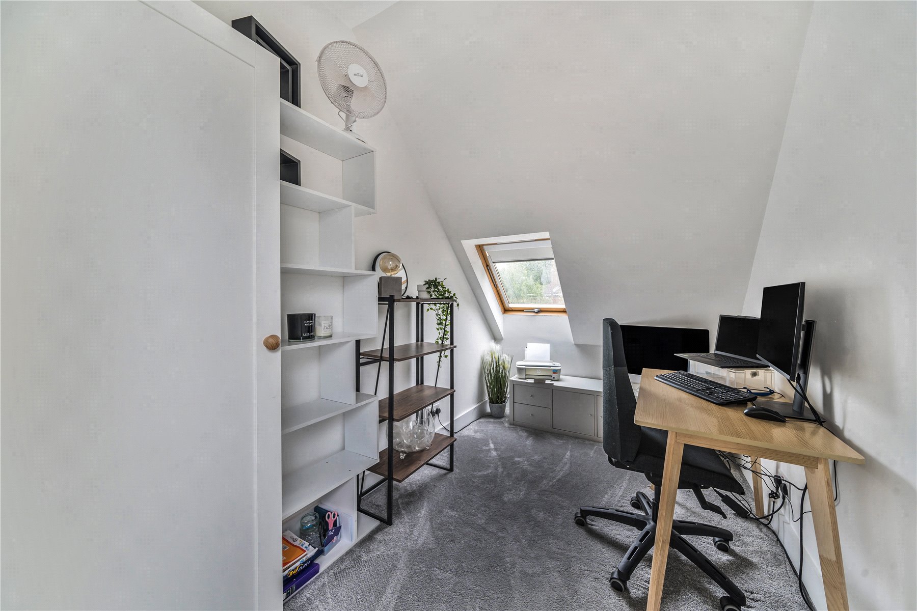 On the first floor landing, smartly fitted storage has been installed in the eaves to maximise the space. This also features in bedroom two. The master bedroom is bright and spacious, boasting a dressing room alongside the ensuite shower room. The two remaining bedrooms, one of which is currently used as a study, are serviced by the family bathroom, which includes a bath and a separate walk-in shower.