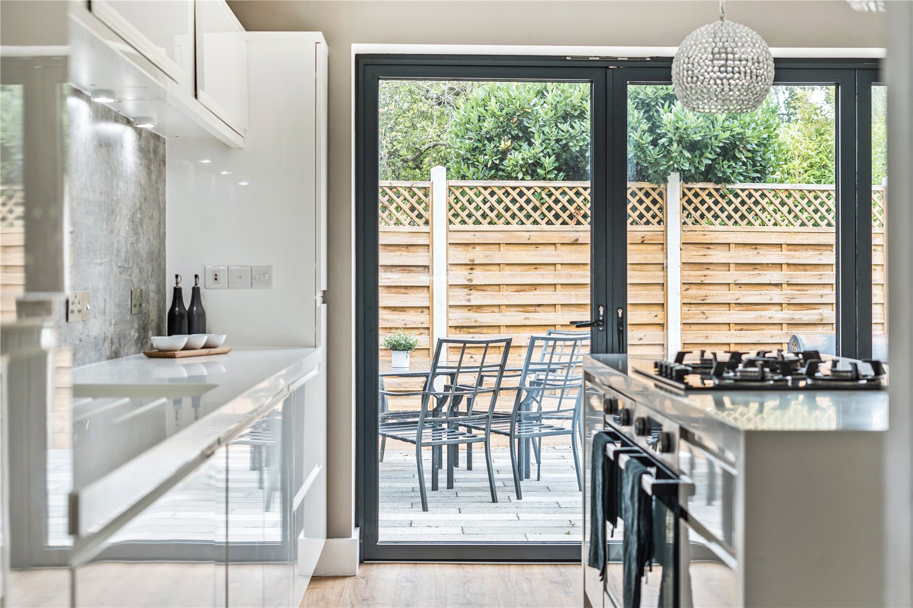 The kitchen/dining room is undoubtedly the hub of this welcoming home, offering plenty of space to gather, eat, and chat with family and friends. The well-planned kitchen is fitted with a range of modern units, including an island. Additional storage can also be found in a further room off the kitchen. There is ample space for a family dining table and chairs, as well as a lounge suite. Large Bi-fold doors open out to the patio in the rear garden, creating an indoor/outdoor feeling.