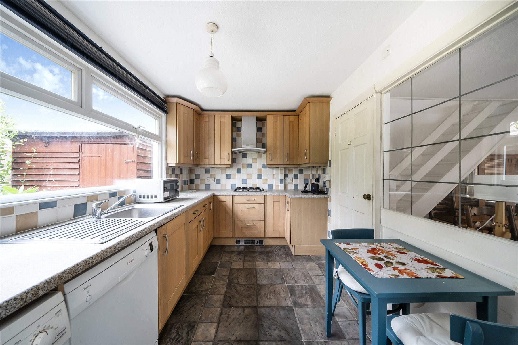 The kitchen, located at the rear of the property, is filled with natural light and enjoys pleasant views across the garden. There is a generous range of modern shaker-style units with space for large household appliances under the worktops.