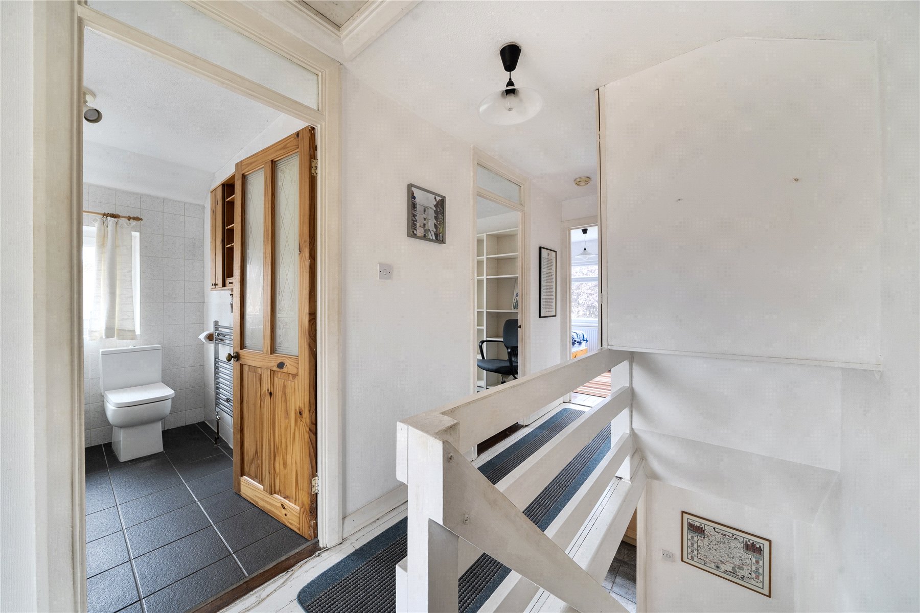 Upstairs, the property offers a family bathroom and three bedrooms: two generous doubles with built-in storage, and a comfortable single, ideal for a childs room or home office.