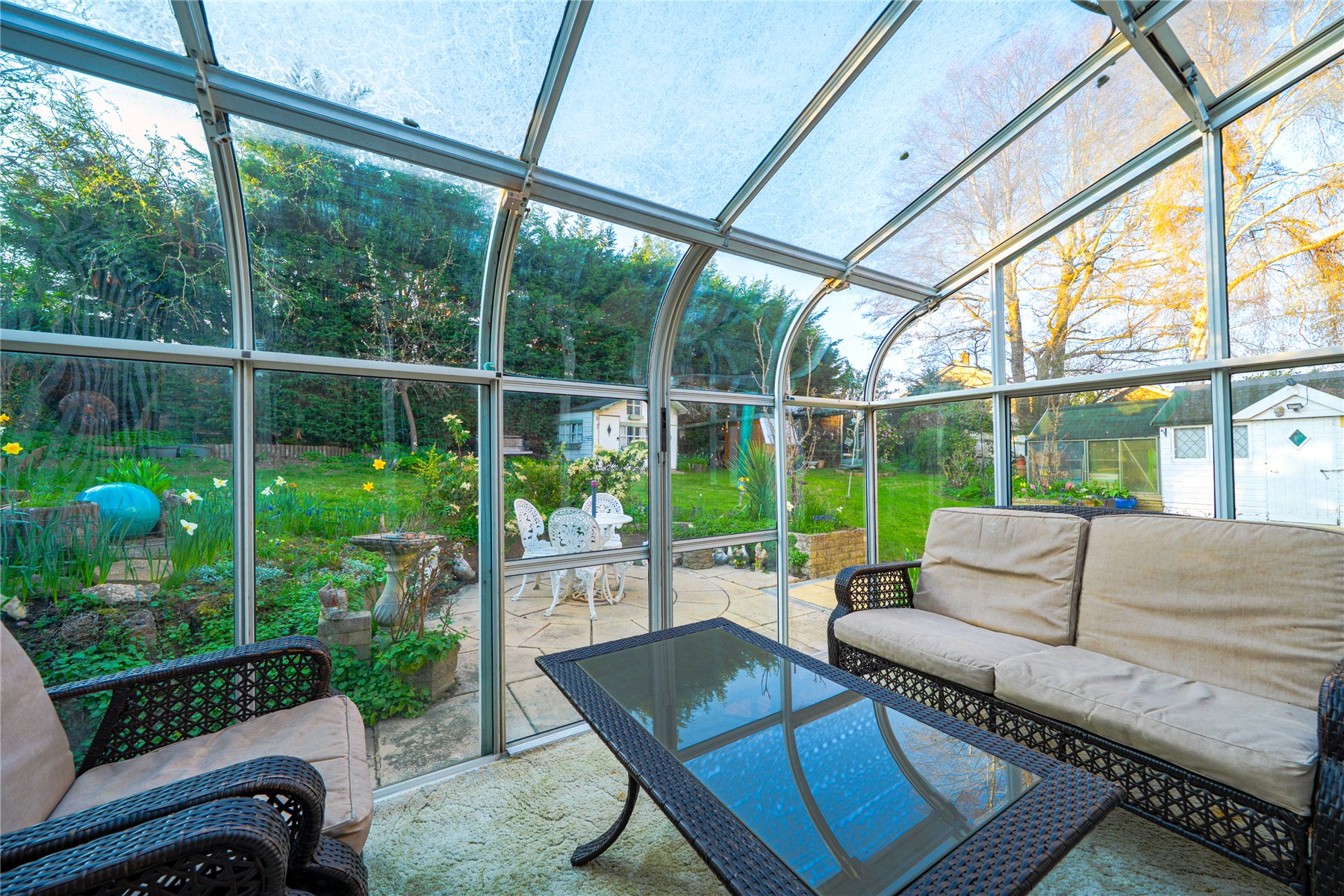 The kitchen is fitted with a wide range of units and integrated appliances, a ground floor bathroom adds further convenience, complete with both a bath and a separate shower enclosure. To the rear of the property, a second spacious family room benefits from excellent natural light, enhanced by an adjoining garden room. While dated, this additional space is perfectly functional and provides direct access to the patio and a charming seating area in the garden.