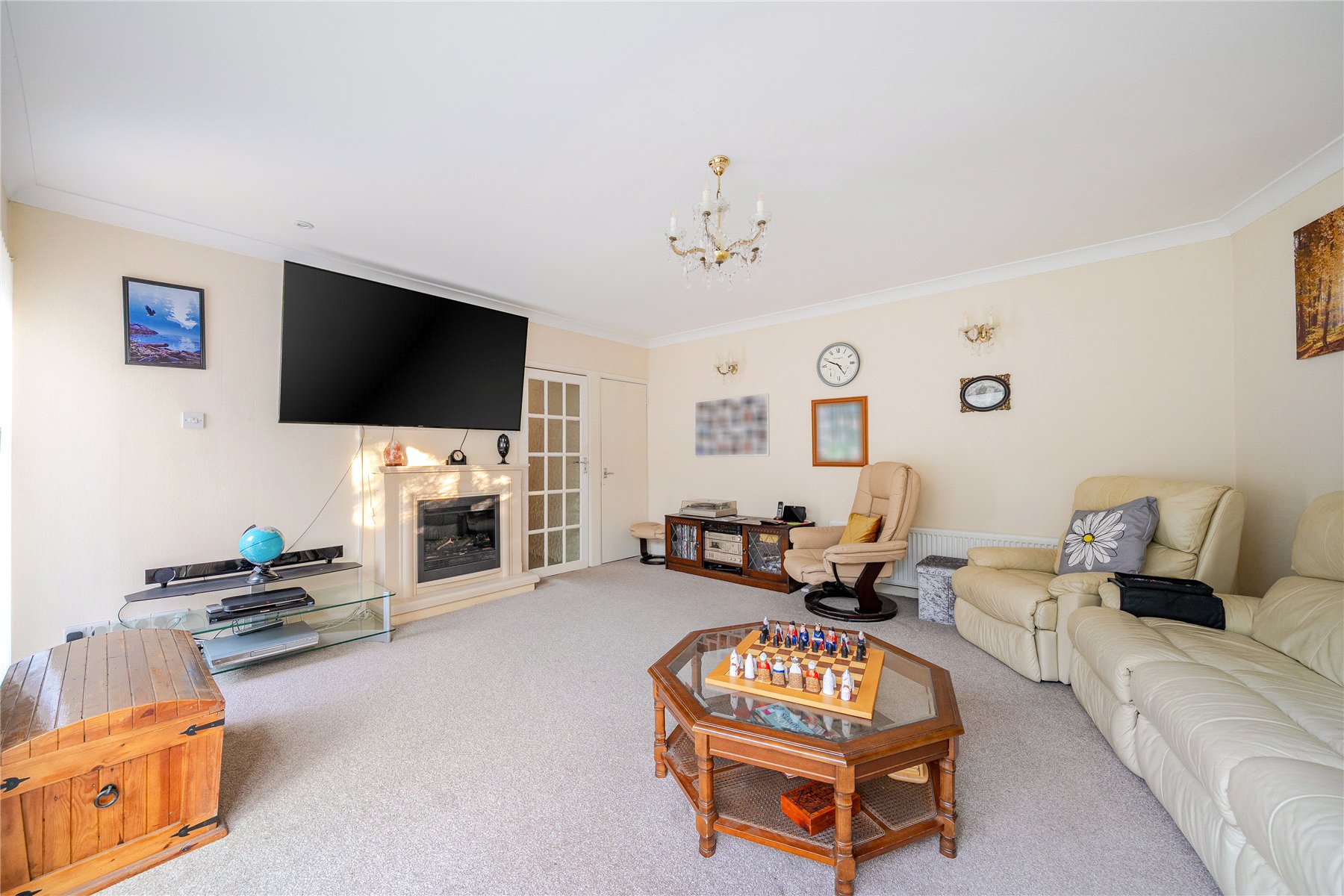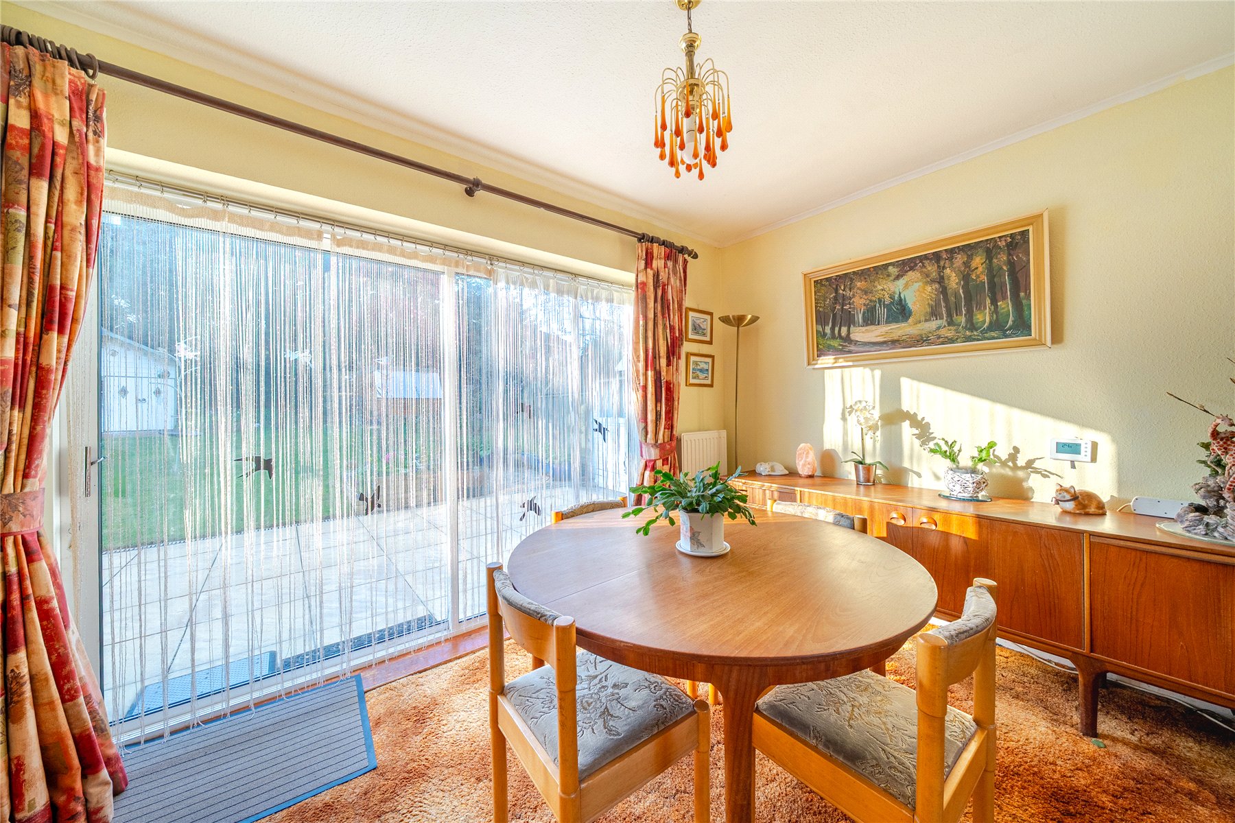 Upon entering, you are welcomed by a bright hallway leading to a study that enjoys pleasant views over the front gardenperfect for home working. The sitting room is generously proportioned, featuring a marble fireplace and a large picture window that fills the space with natural light. Double doors connect seamlessly to a bright dining room, where sliding doors open directly onto the rear patio, creating an ideal setting for indoor-outdoor entertaining.