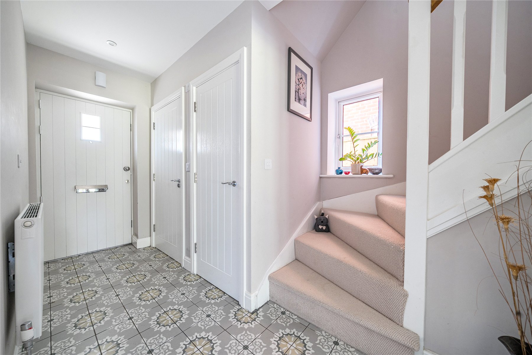 Upstairs, the master bedroom includes built-in wardrobes and a luxury ensuite shower room, while the second bedroom also benefits from fitted storage. The third bedroom offers flexibility as a guest room, nursery, or study.