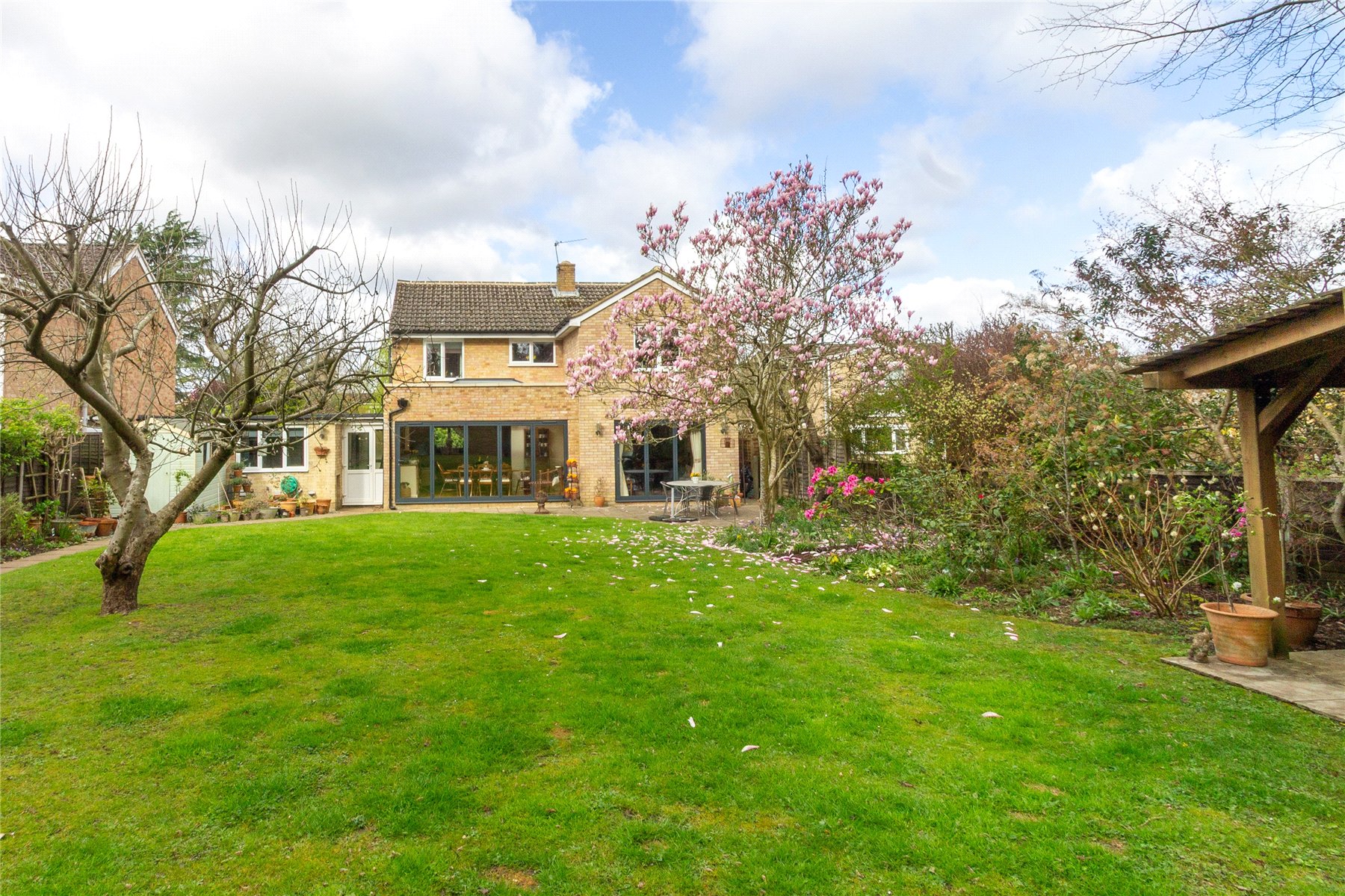 Outside, the property continues to impress. The front garden is attractively presented and accompanied by driveway parking for multiple vehicles as well as a large garage. To the rear, the mature garden has been lovingly maintained and offers a wonderful sense of privacy. A patio, several seating areas and a shed create an inviting outdoor environment, ideal for both entertaining and quiet enjoyment.