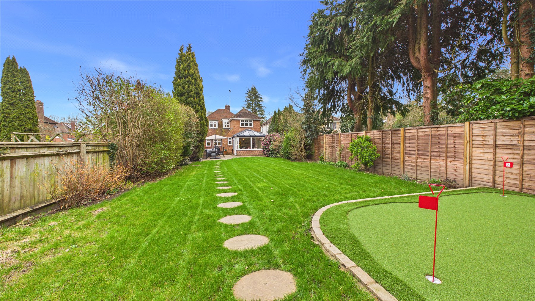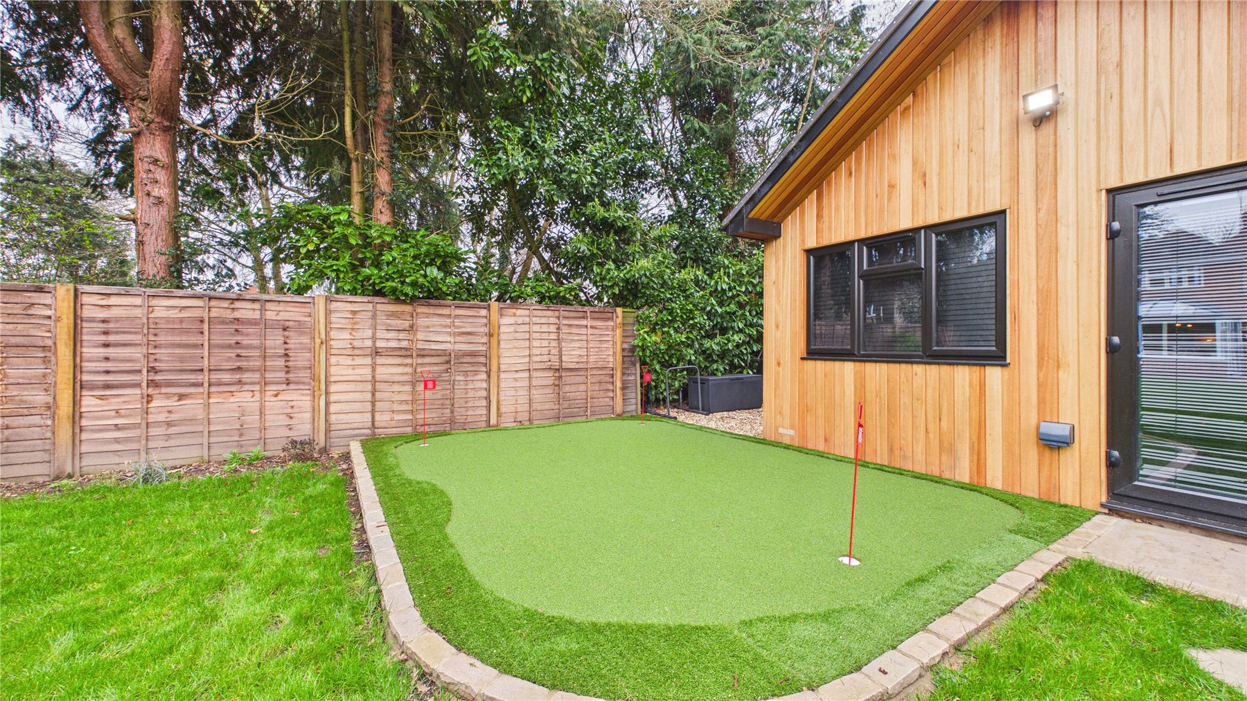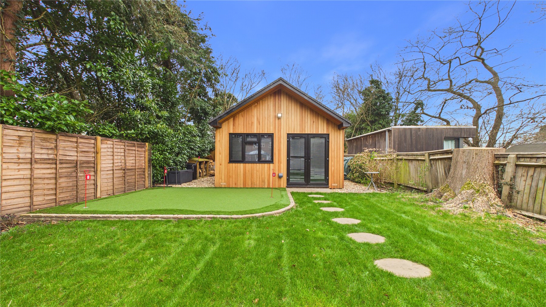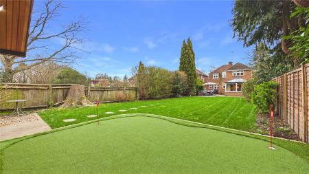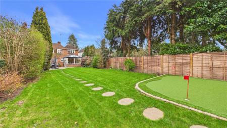 A standout feature of the property is the purpose-built garden cabin, which has been thoughtfully designed by the current owner to create a fantastic leisure space. The cabin features a raised pitch roofline, making it ideal for use as a golf simulator room, gym, studio or home office. Outside, the owners have also installed a dedicated putting green, creating a truly unique setup that will appeal to golf enthusiasts and offers a fun and versatile space for entertaining family and friends.The mature and private rear garden extends to over 100ft and is bordered by established trees and planting, providing a peaceful setting and plenty of space for outdoor entertaining during the warmer months. To the front, the property benefits from off-street parking.