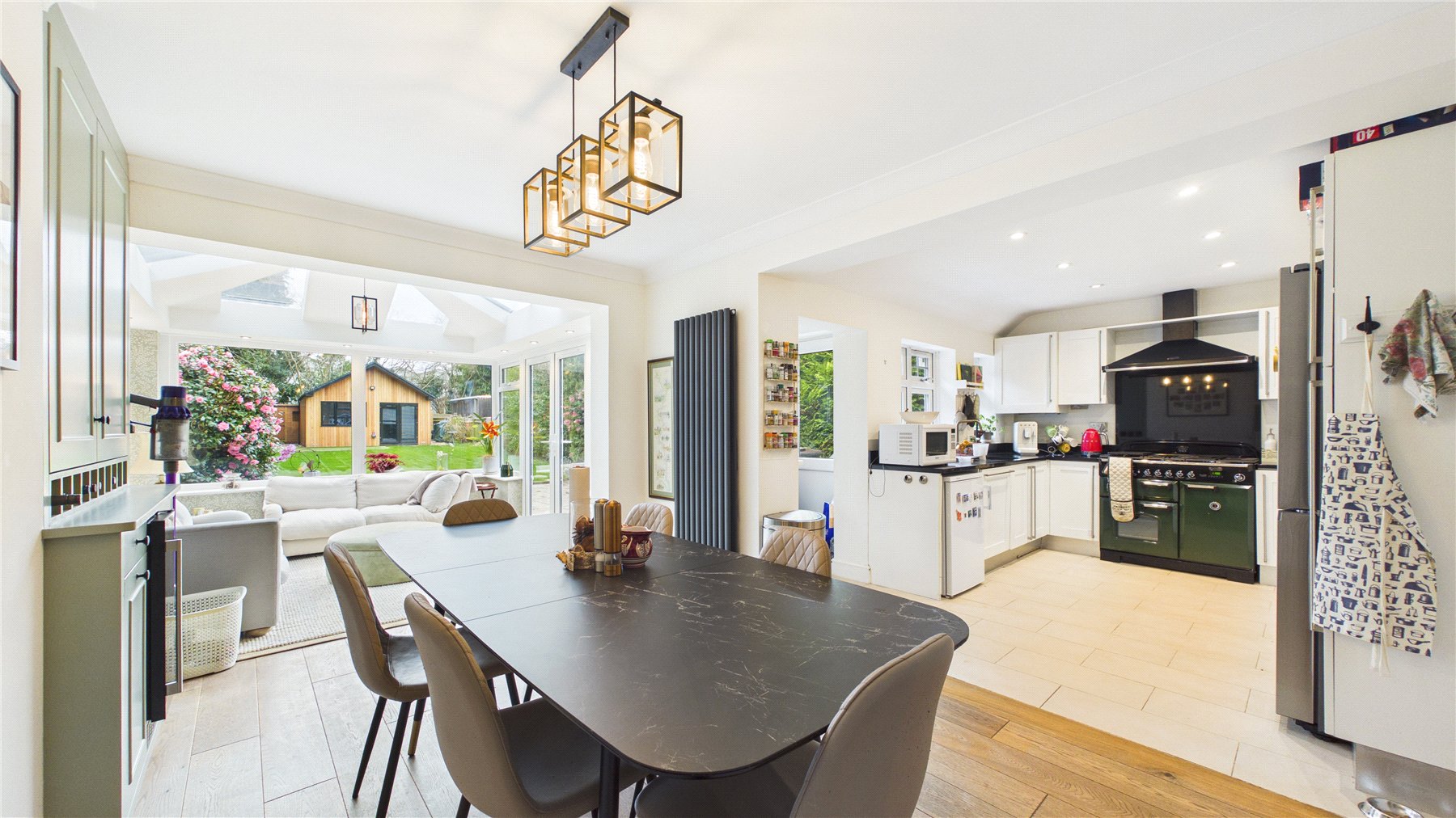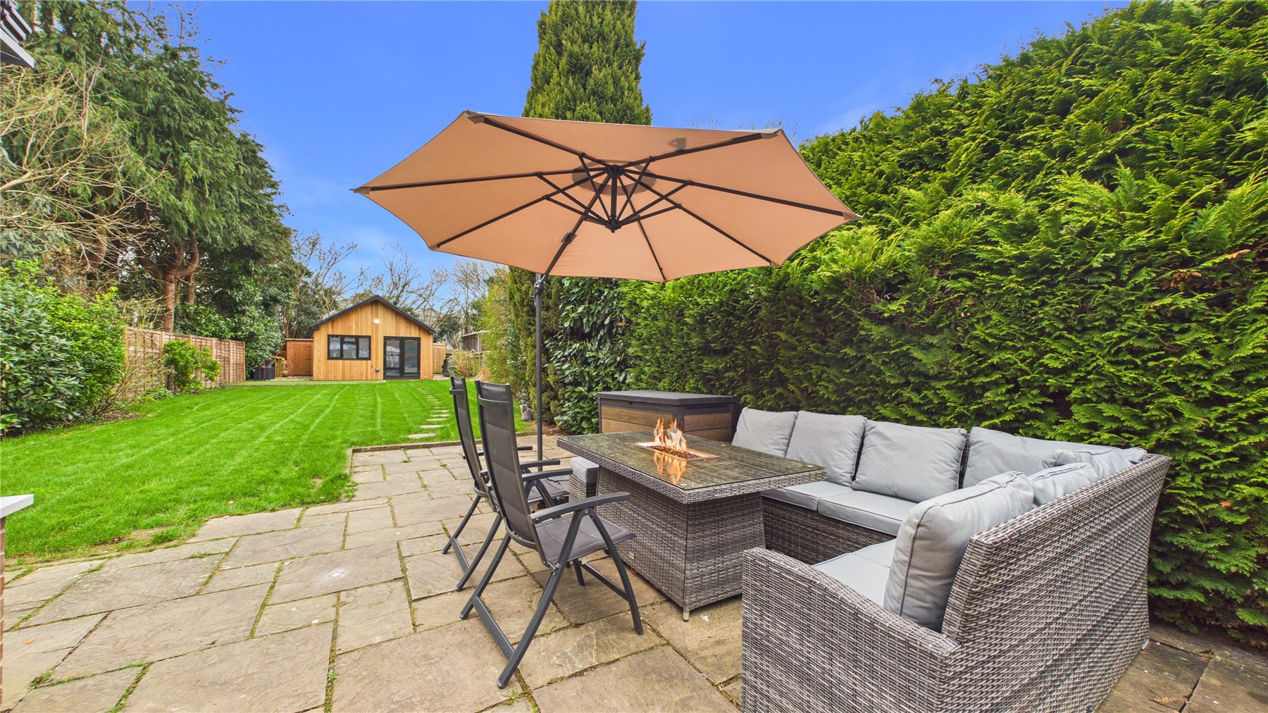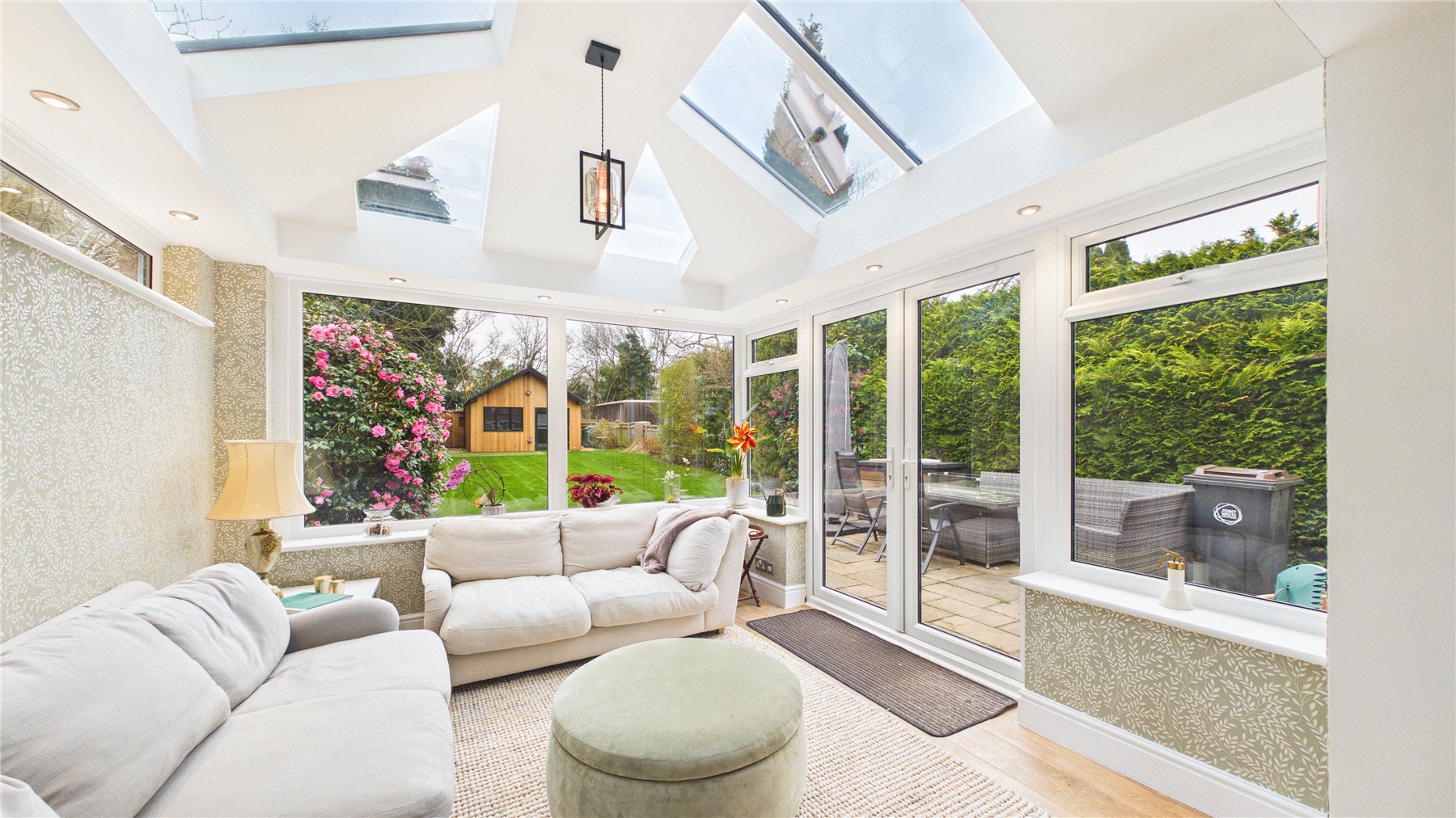 A standout feature of the property is the purpose-built garden cabin, which has been thoughtfully designed by the current owner to create a fantastic leisure space. The cabin features a raised pitch roofline, making it ideal for use as a golf simulator room, gym, studio or home office. Outside, the owners have also installed a dedicated putting green, creating a truly unique setup that will appeal to golf enthusiasts and offers a fun and versatile space for entertaining family and friends.The mature and private rear garden extends to over 100ft and is bordered by established trees and planting, providing a peaceful setting and plenty of space for outdoor entertaining during the warmer months. To the front, the property benefits from off-street parking.