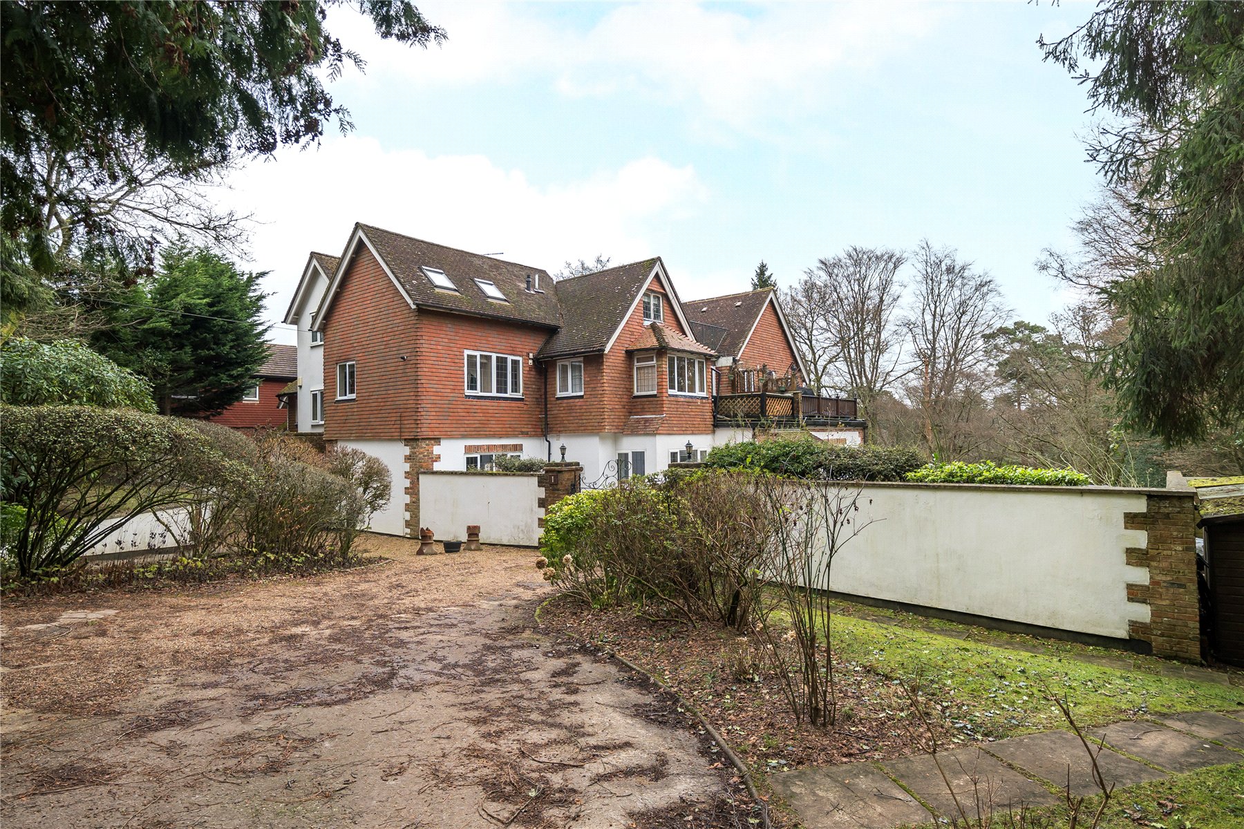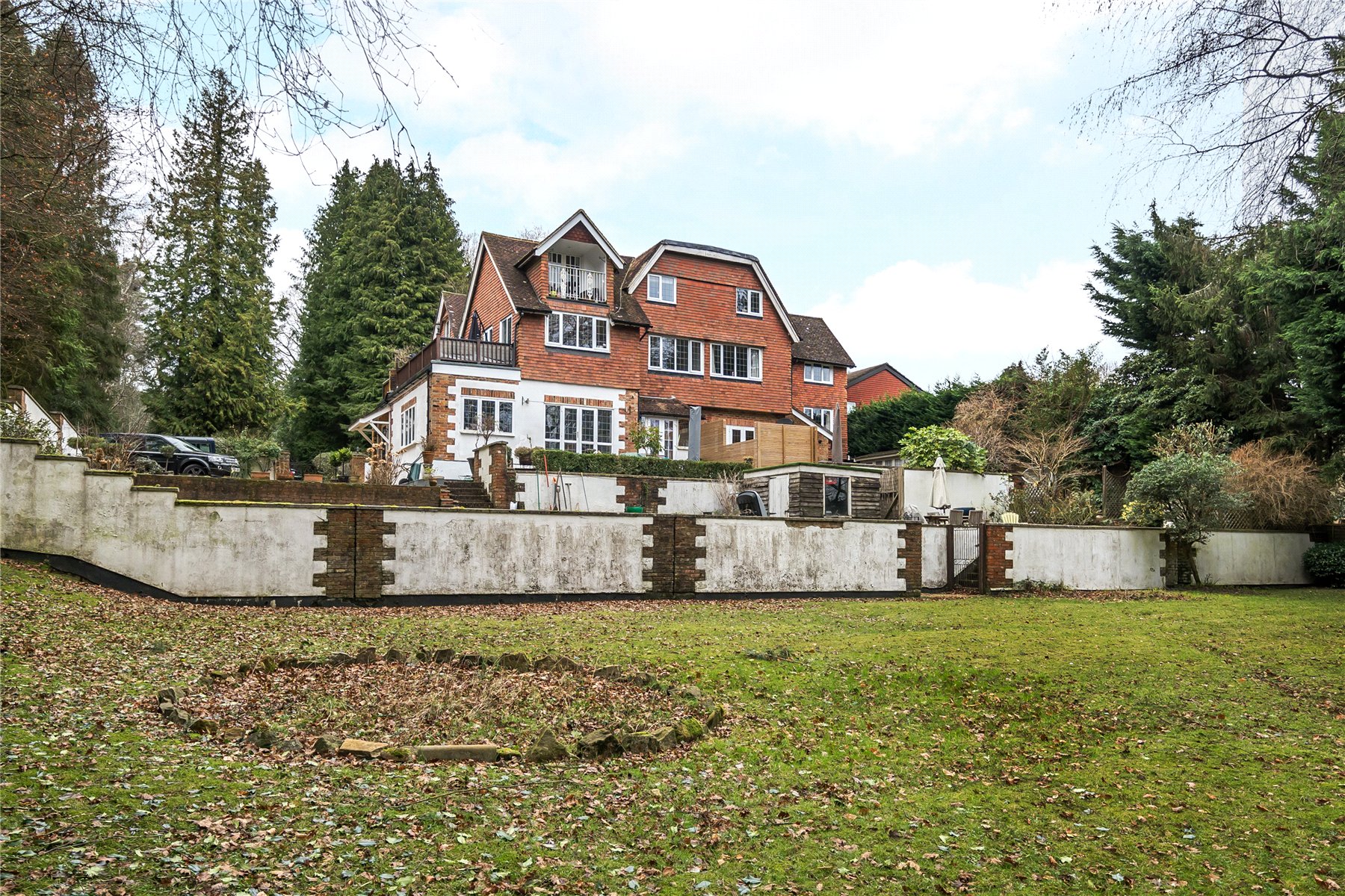 The communal gardens are a fine feature and include a large level area of lawn (previously the tennis court to the country house), which drop away into woodland, providing superb woodland views from the lawn