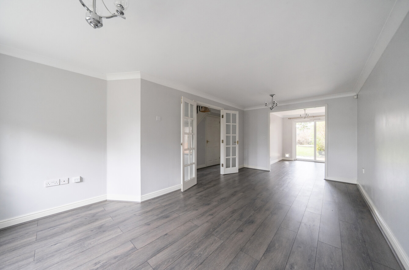 Internal double doors open to a front aspect sitting room with large bay window. A wide opening leads through to a rear aspect dining room with sliding patio door to garden. Collectively these two rooms provide a large 31 ft reception space running the full depth of the property