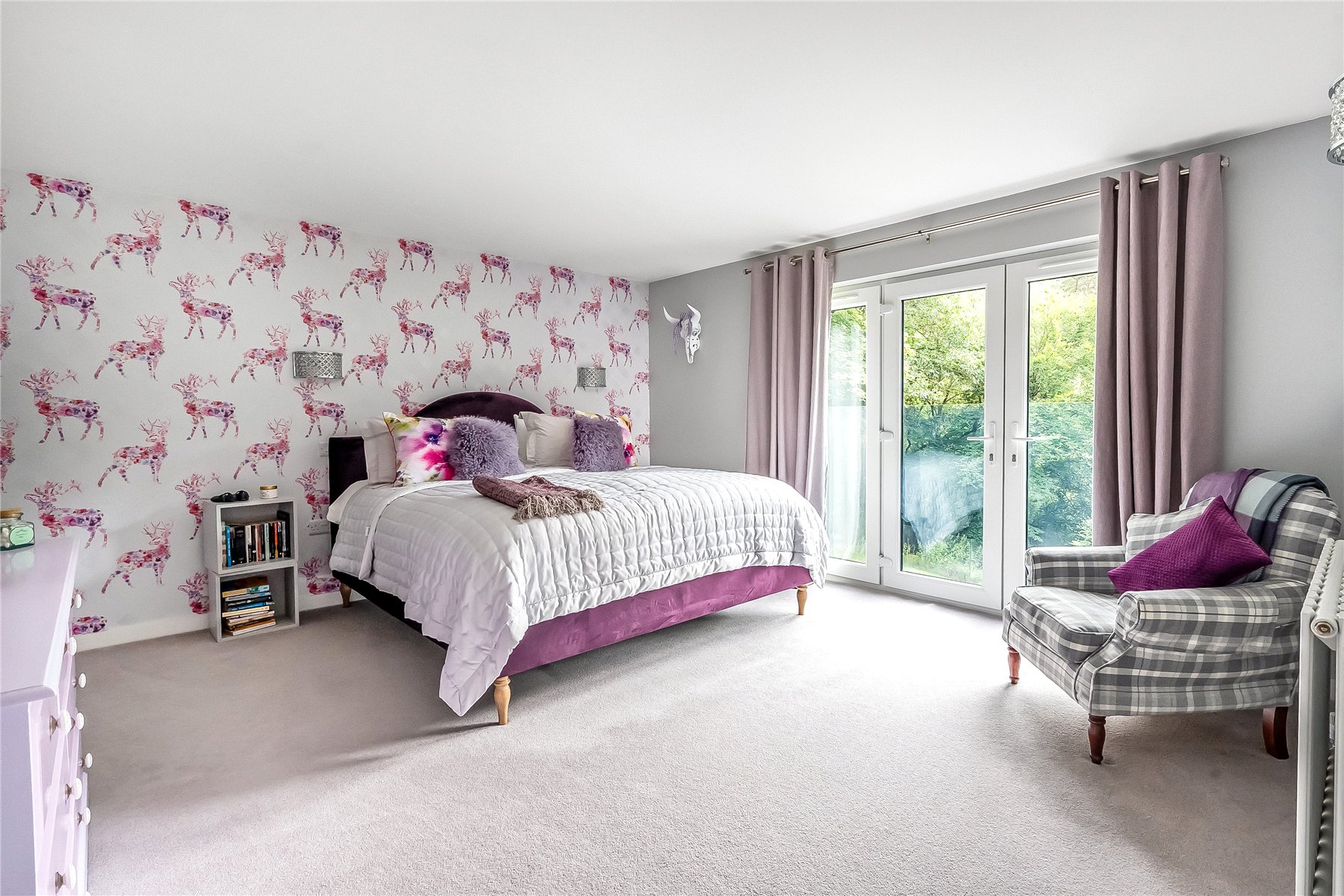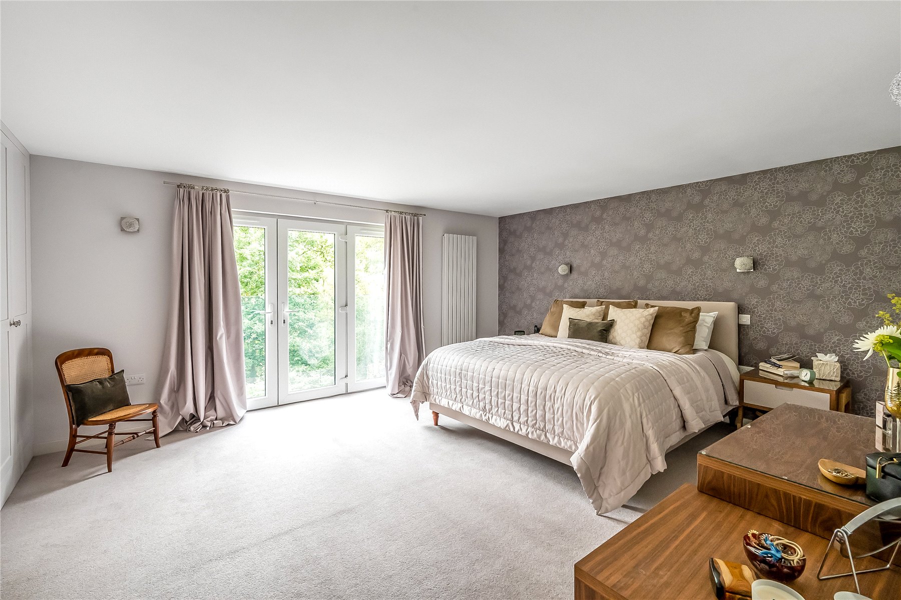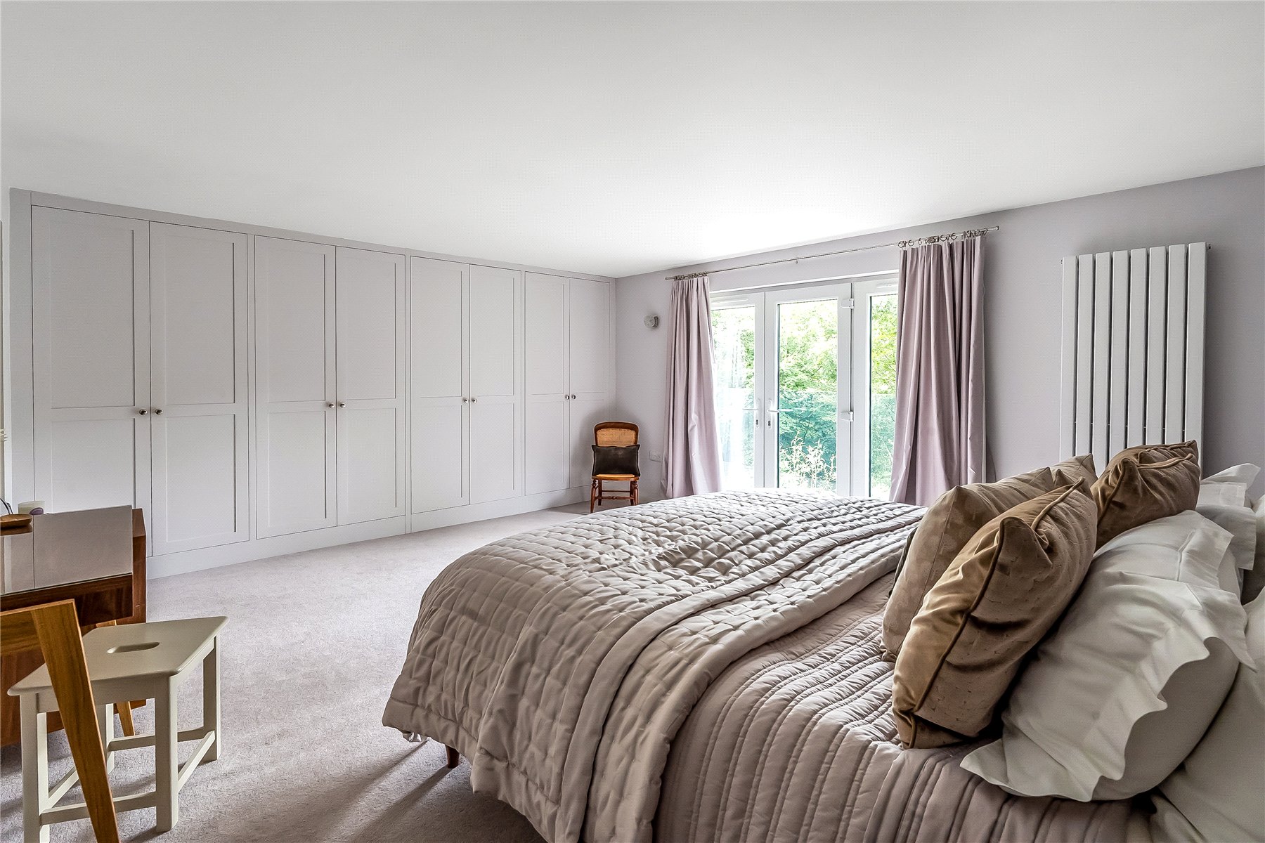 Stairs lead up to a spacious 1st floor landing with an attractive and stylish Neville Johnson balustrade. The master bedroom is exceptional; being a spacious double with French doors opening onto a Juliette balcony overlooking the garden and woodland beyond, with a full wall of built in wardrobes and a luxury en suite featuring walk in shower and Japanese bathing tub with integrated jets and lights. There are five further generous and well appointed bedrooms, bedroom two also benefitting from a Julitte balcony overlooking the garden. These bedrooms share a family bathroom and a separate family shower room; flexible and versatile provision, although the shower room could easily become an en suite for bedroom two.