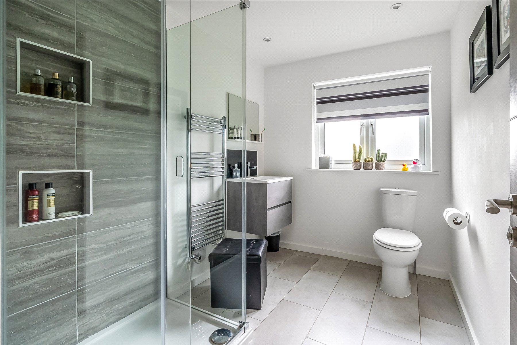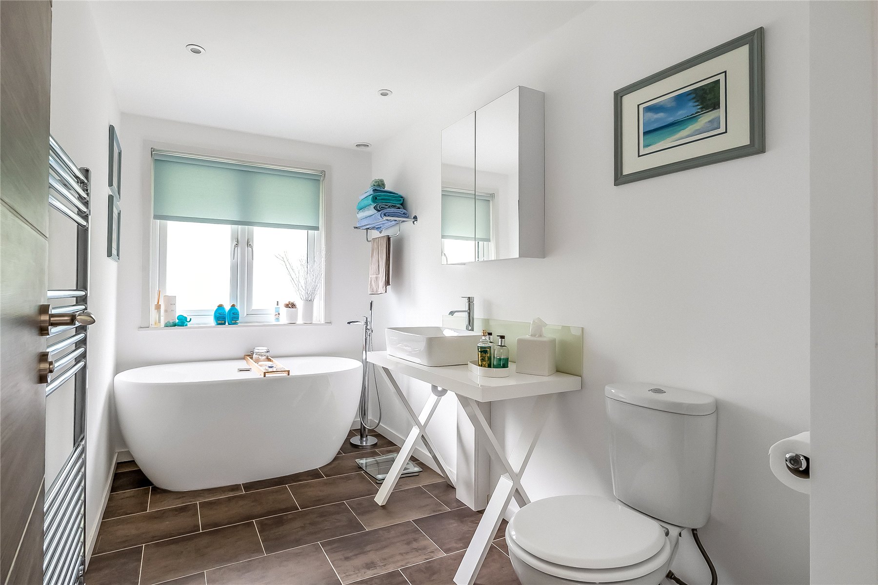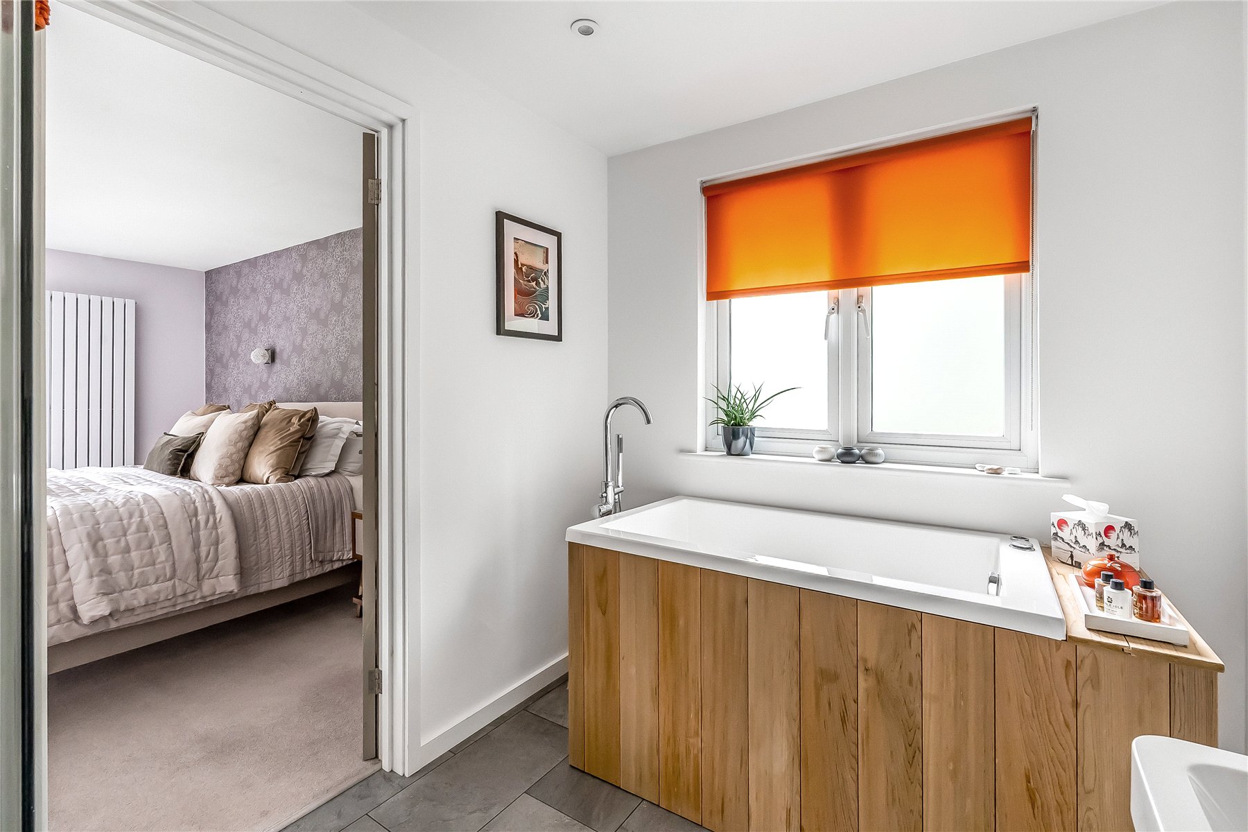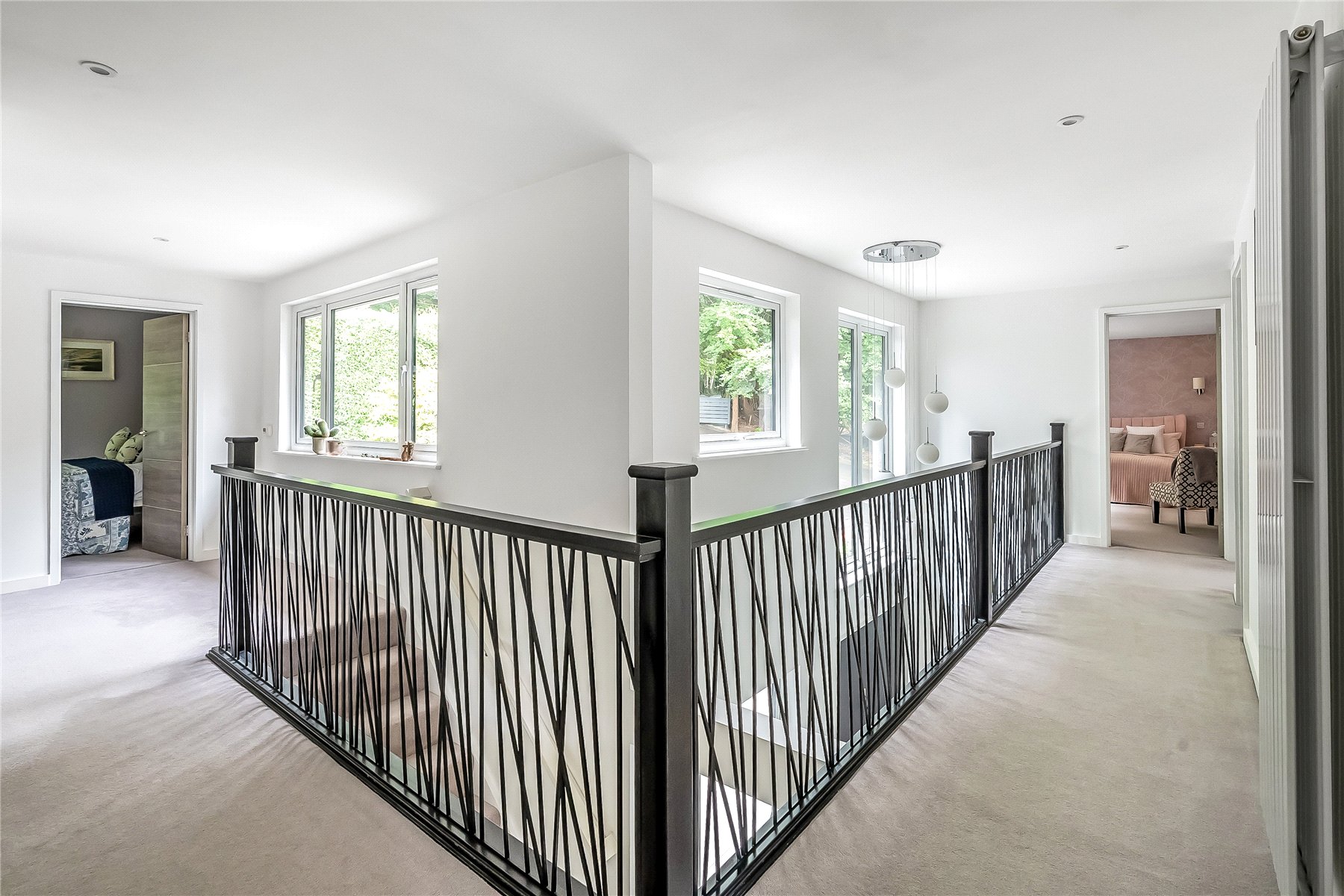 Stairs lead up to a spacious 1st floor landing with an attractive and stylish Neville Johnson balustrade. The master bedroom is exceptional; being a spacious double with French doors opening onto a Juliette balcony overlooking the garden and woodland beyond, with a full wall of built in wardrobes and a luxury en suite featuring walk in shower and Japanese bathing tub with integrated jets and lights. There are five further generous and well appointed bedrooms, bedroom two also benefitting from a Julitte balcony overlooking the garden. These bedrooms share a family bathroom and a separate family shower room; flexible and versatile provision, although the shower room could easily become an en suite for bedroom two.