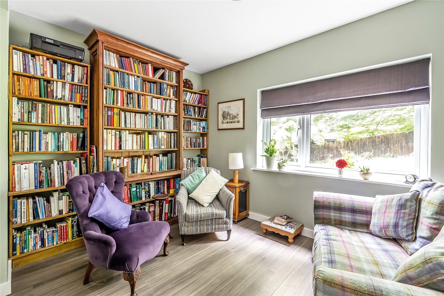 To the front of the house sits a formal double aspect sitting room, and to the side is a delightful study/library. Tucked between the two is a useful cloakroom with easy access to a plant room cupboard.