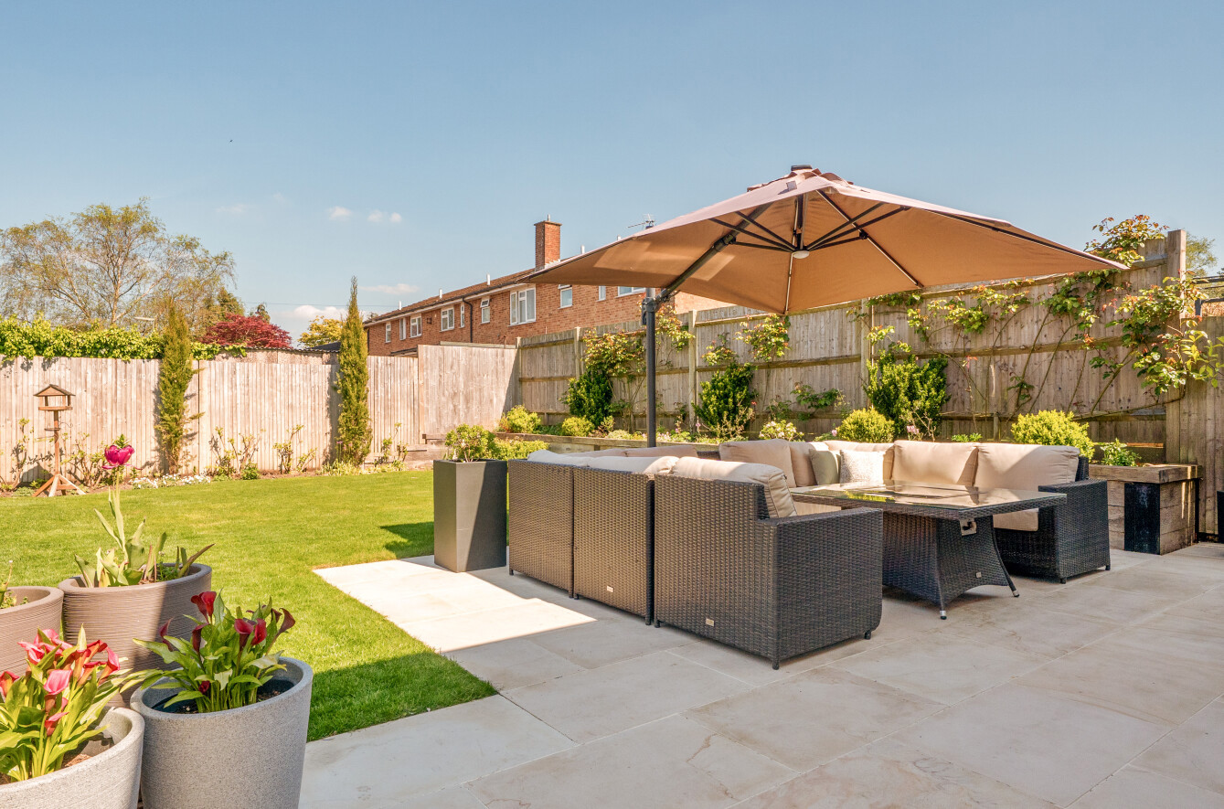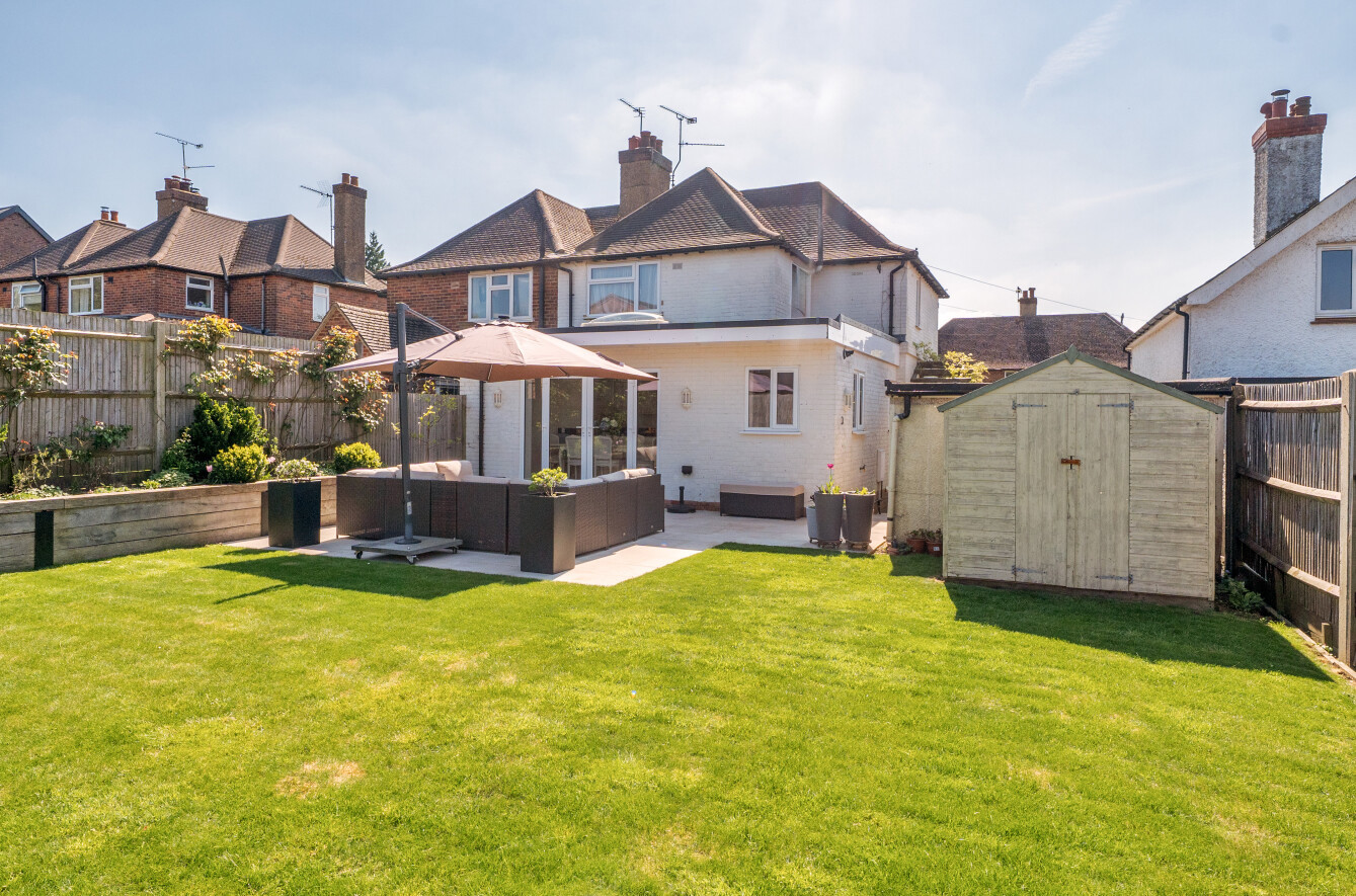 The rear garden is clearly loved and is well stocked with mature shrubs and plants in raised floral borders alongside a wide lawn and attractive natural stone paved terrace adjacent to the house, which is ideal for entertaining. A garden shed provides useful storage for garden equipment.