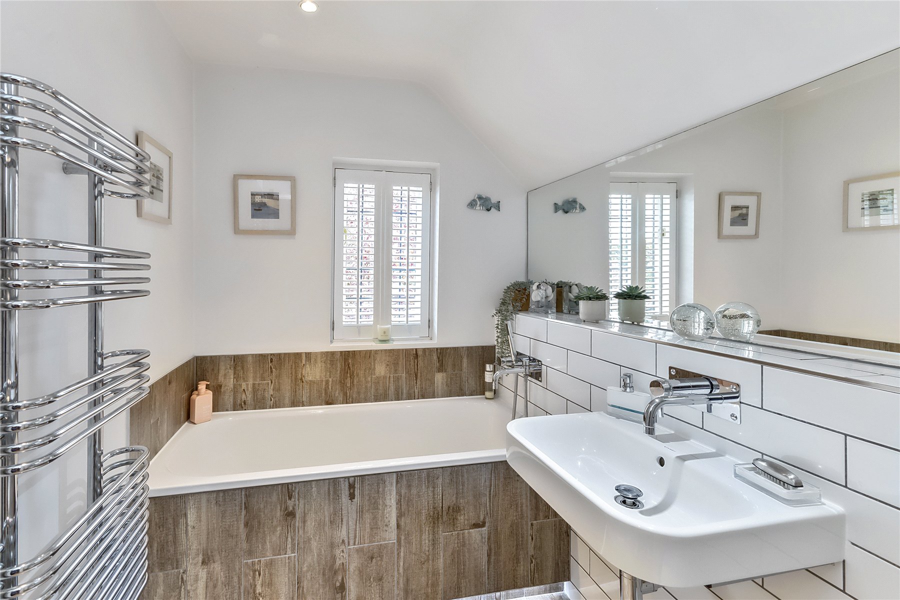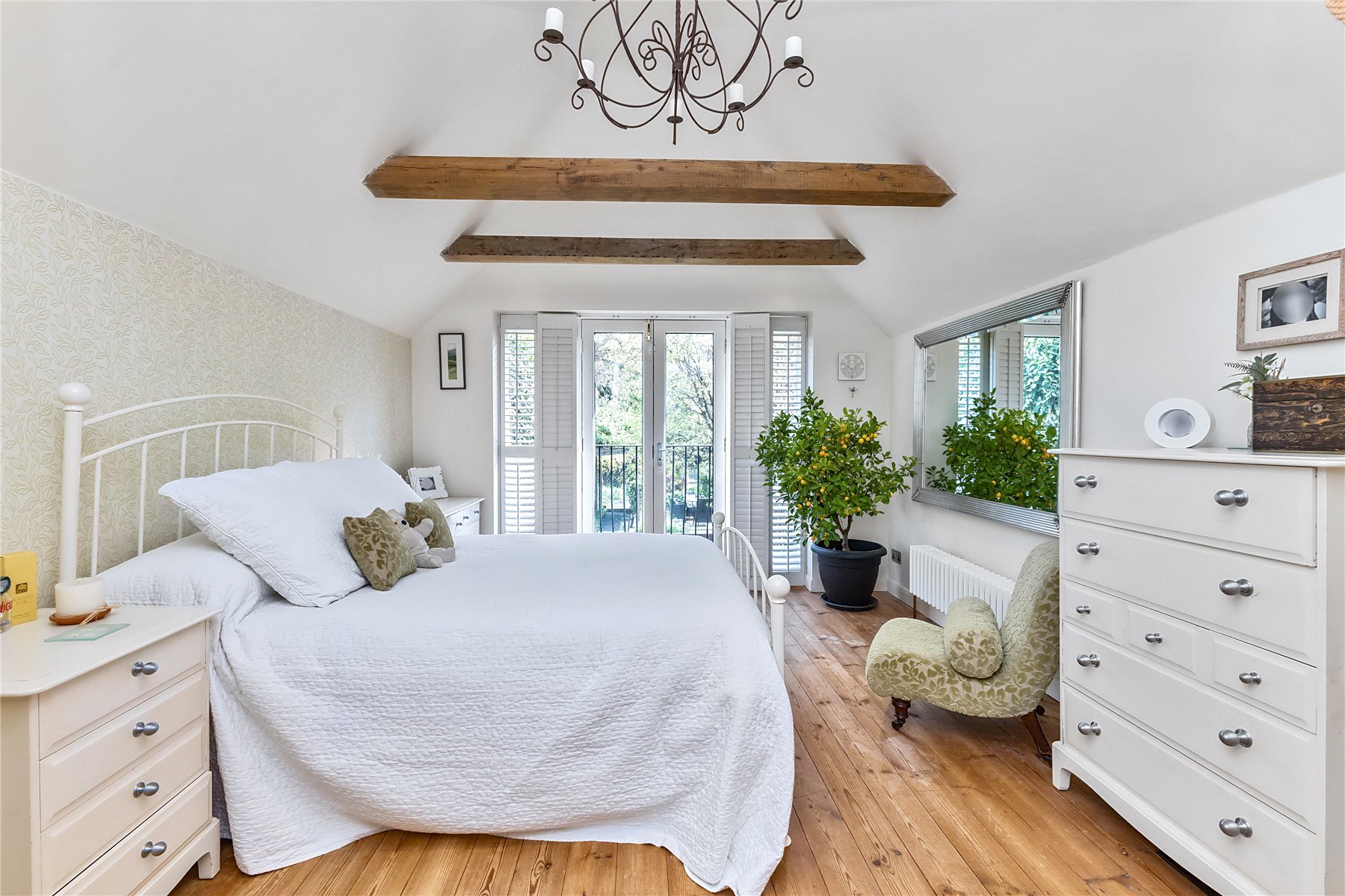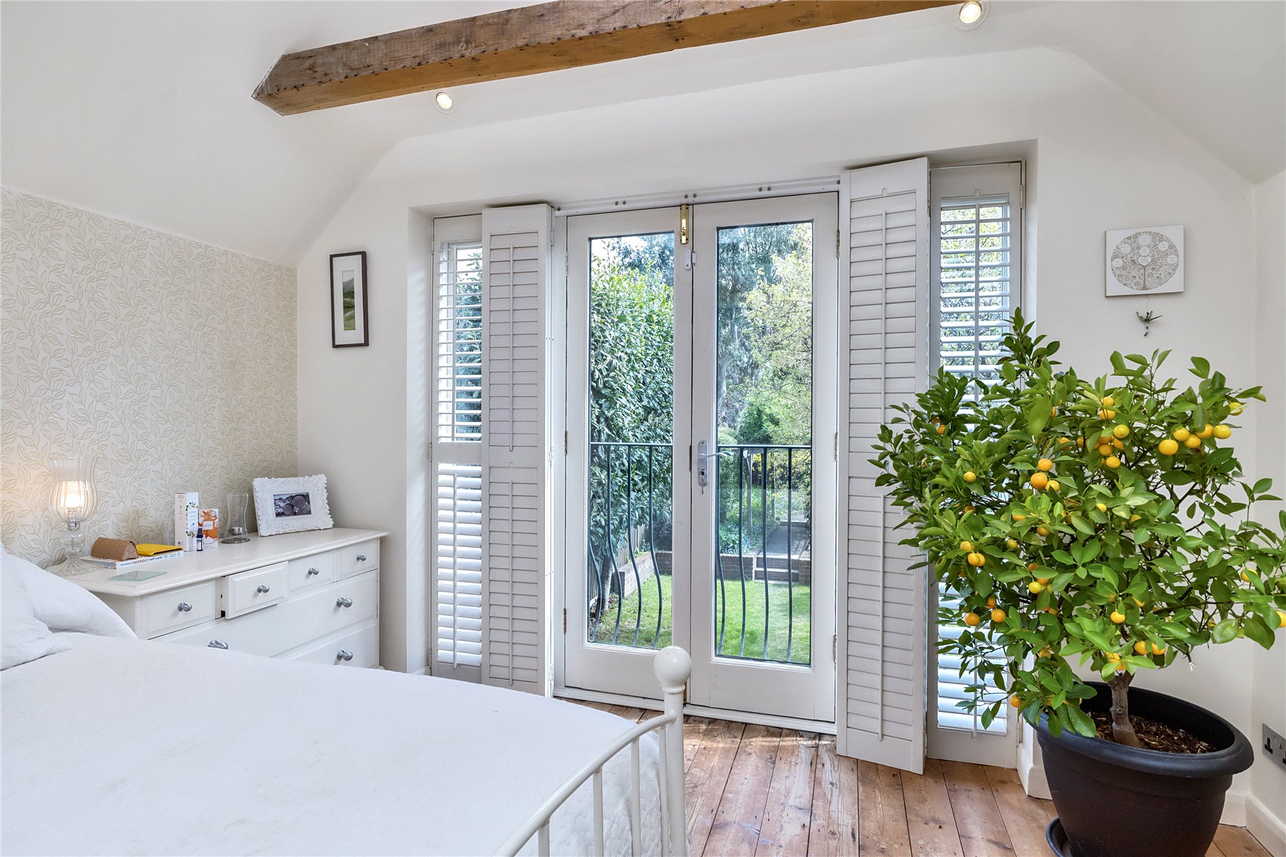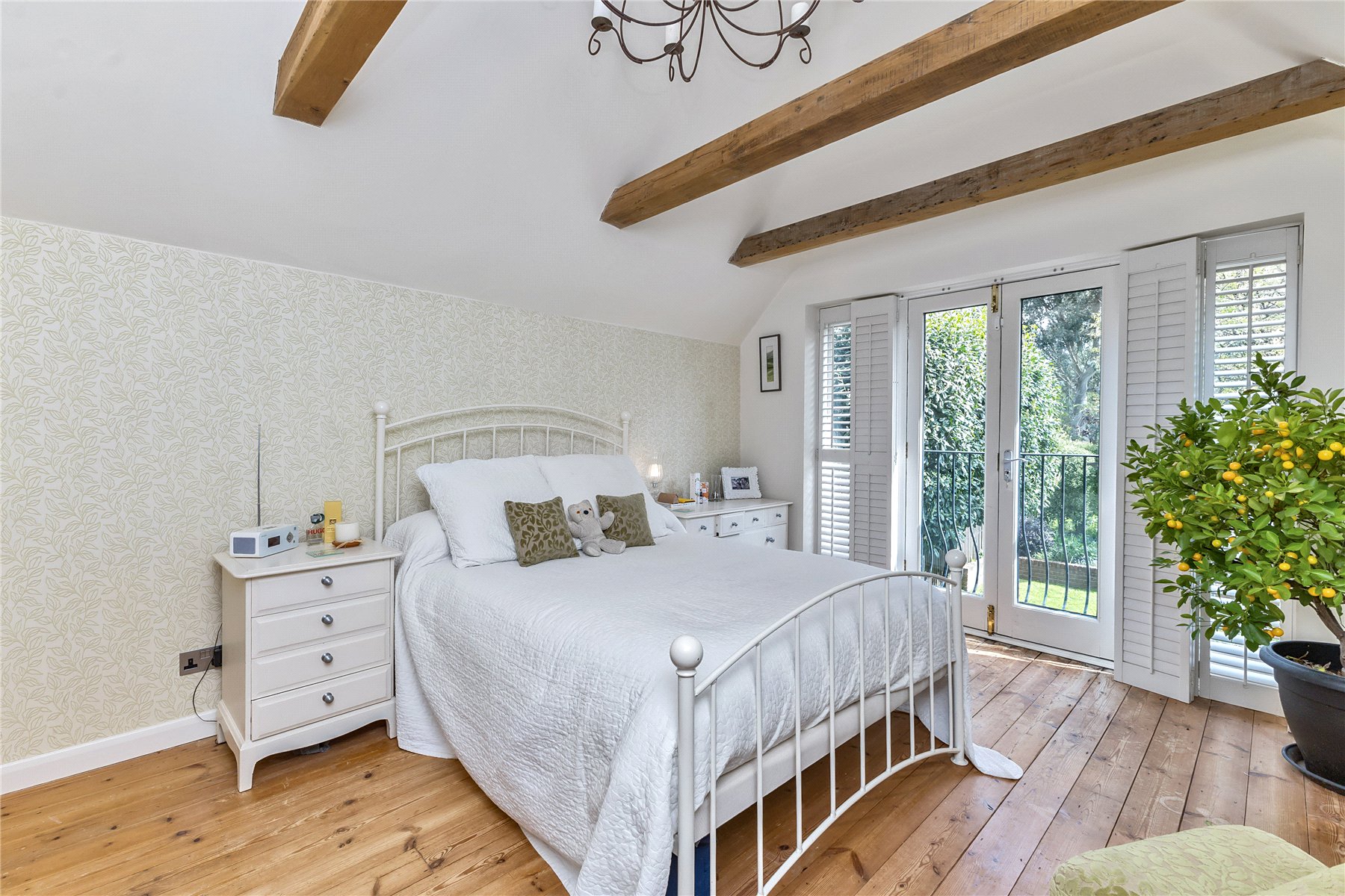 Moving to the first floor there are three bedrooms all of which are doubles. Of particular note is the spacious vaulted master bedroom with a south facing Juliette balcony (allowing elevated views over the garden) twin built in wardrobes and en suite shower room. The family bathroom is contemporary with underfloor heating and Duravit Happy D bathroom suite.