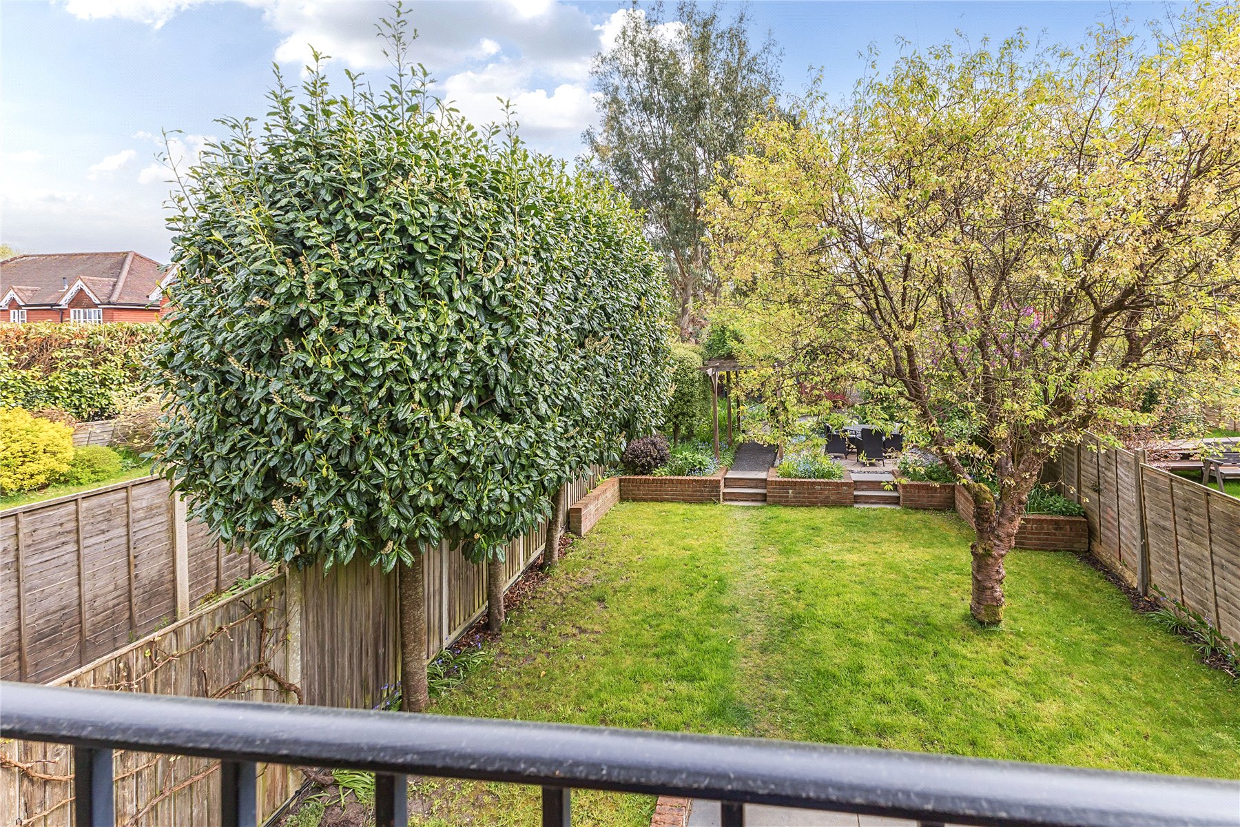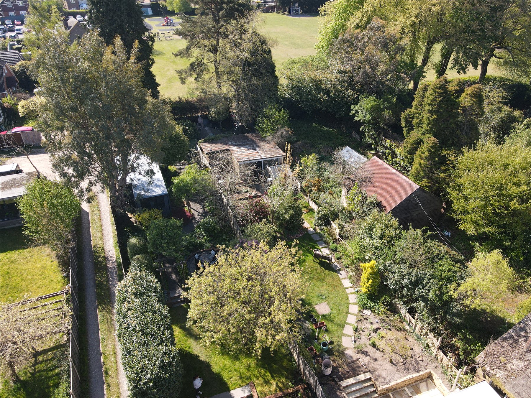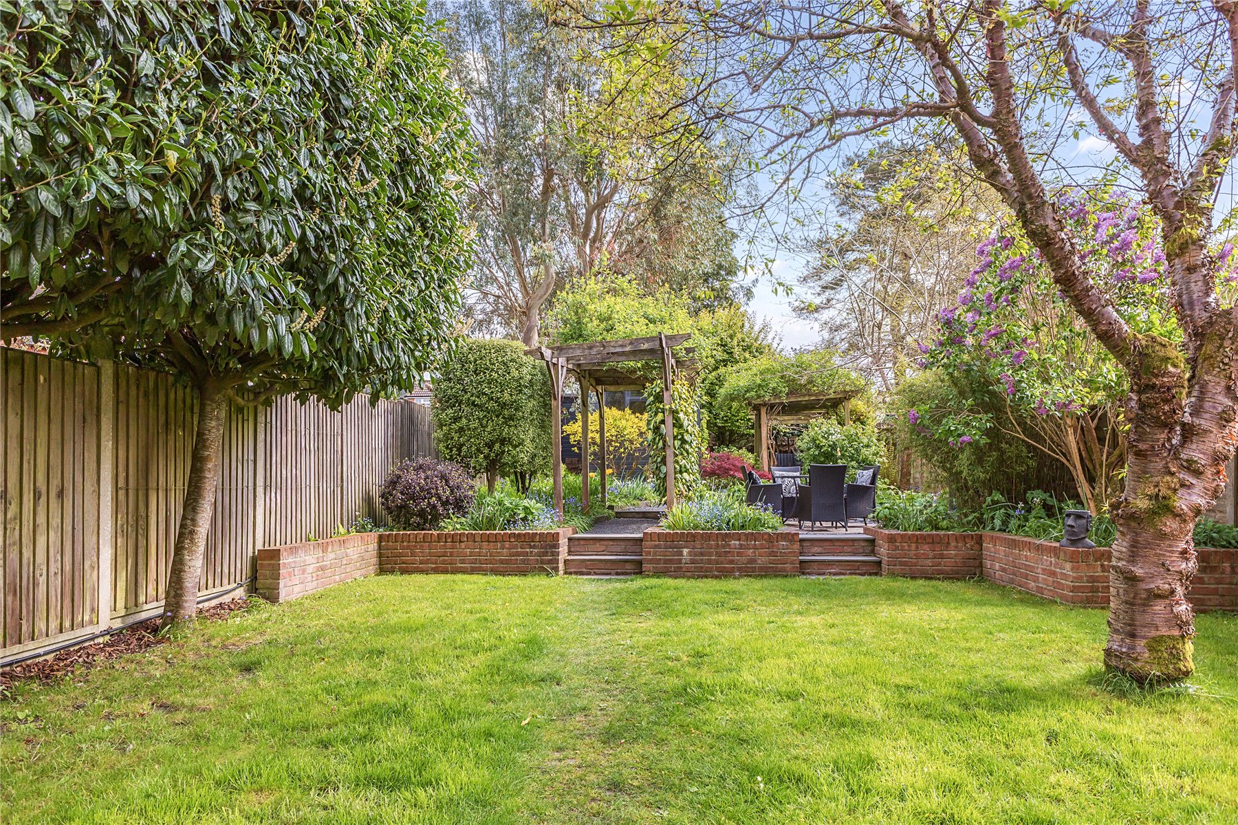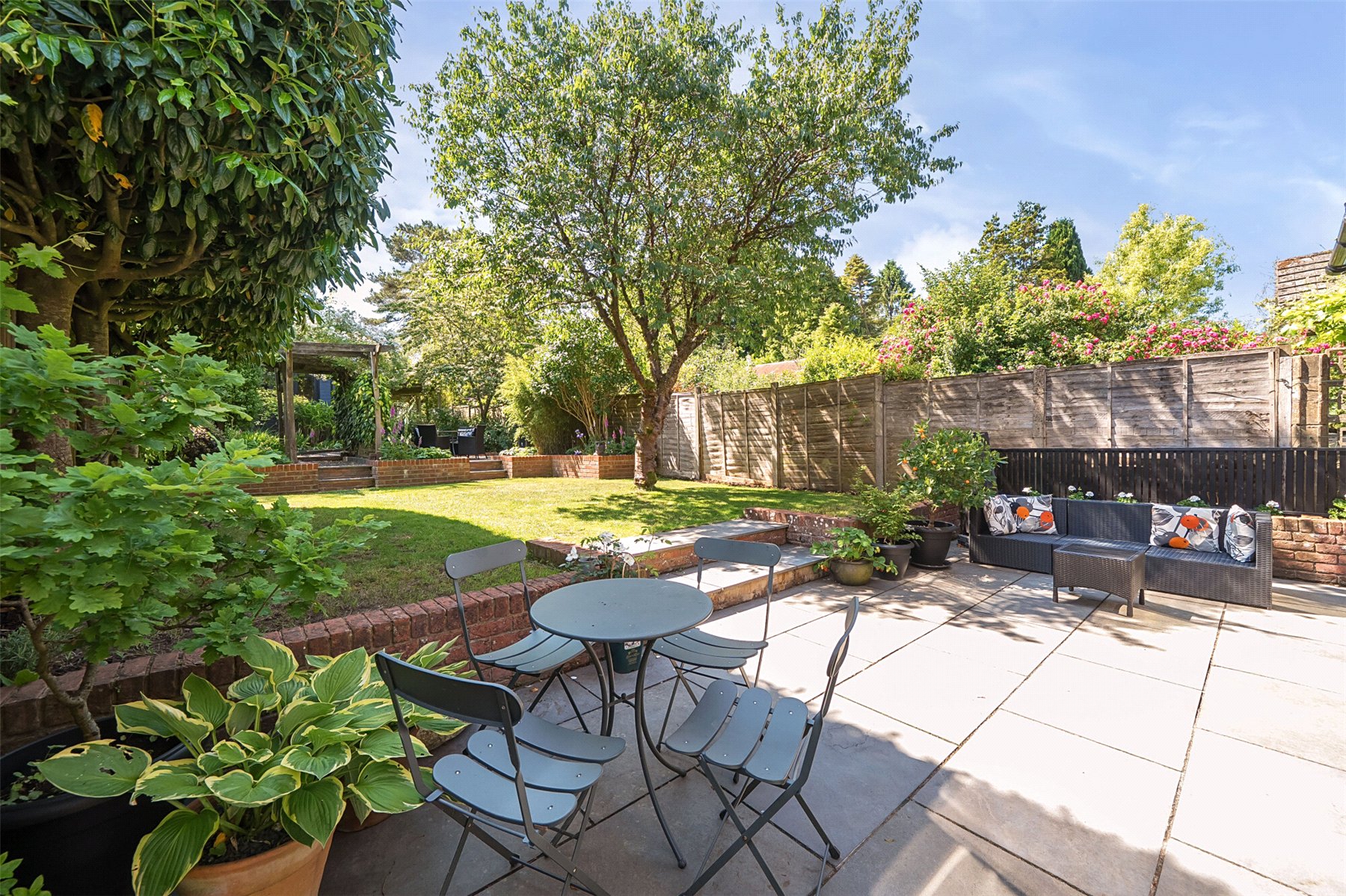 The grounds have been fully landscaped, with an impeccable eye for detail, to maximise their full potential with an area to suit every member of the family, most of which is south facing. Immediately adjacent to the house is a large patio area which is proceeded by a good sized lawn edged by a low retaining wall with two steps up to a feature circular additional patio and a pergola covered pathway (fragrant in Spring thanks to it's trailing white wisteria) up to the garage/workshop/office and upper garden area. There is a side gate onto driveway parking for several vehicles. Beyond this is a hidden garden, a large low maintenance space perfect for entertaining with an Italian hand made pizza oven and summerhouse kitted out as the perfect bar with light, power and fridge. It is fully insulted with a heater so can be used through the year. Completing the scene is a charming treehouse, complete with WiFi connection for a modern hideaway. Flowerbeds and borders are well stocked with mature plants including eating and cooking apple trees.