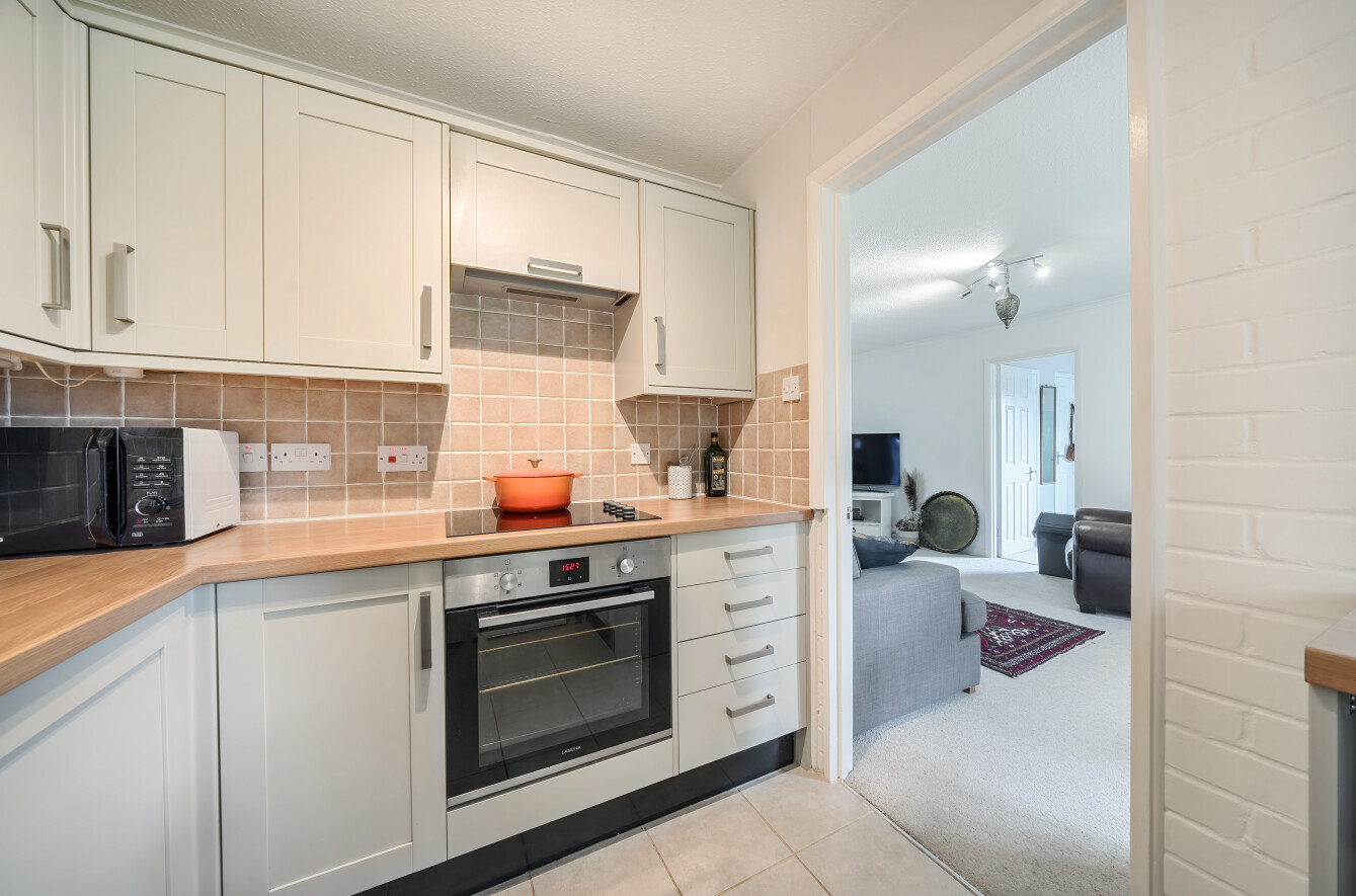 The front door opens into a hallway with wc and storage cupboard, beyond this you enter a generous living room with plenty of space for lounge and dining furniture with a large window overlooking communal grounds, off to one side is a modern fitted kitchen with integrated oven, hob and dishwasher with space for an undercounter fridge and freezer or washing machine.