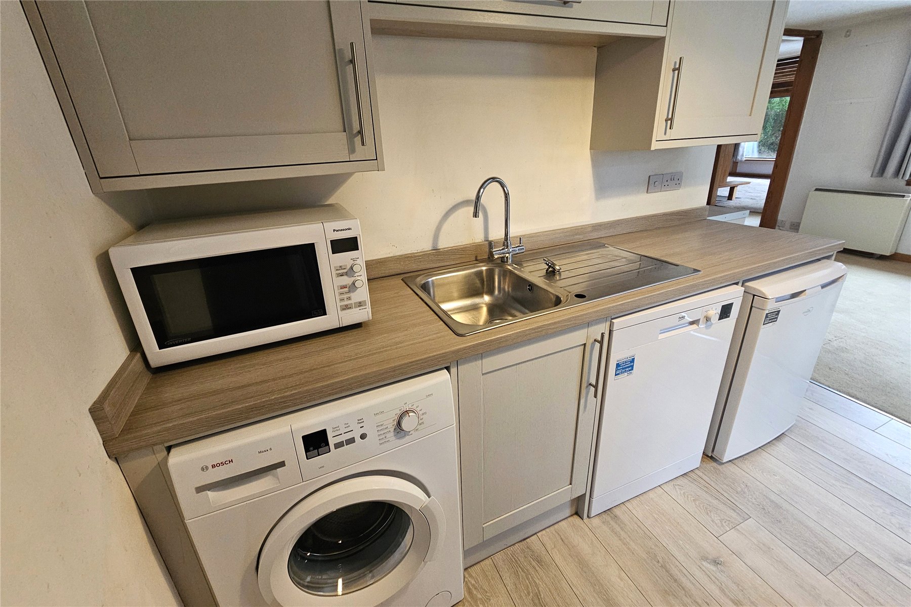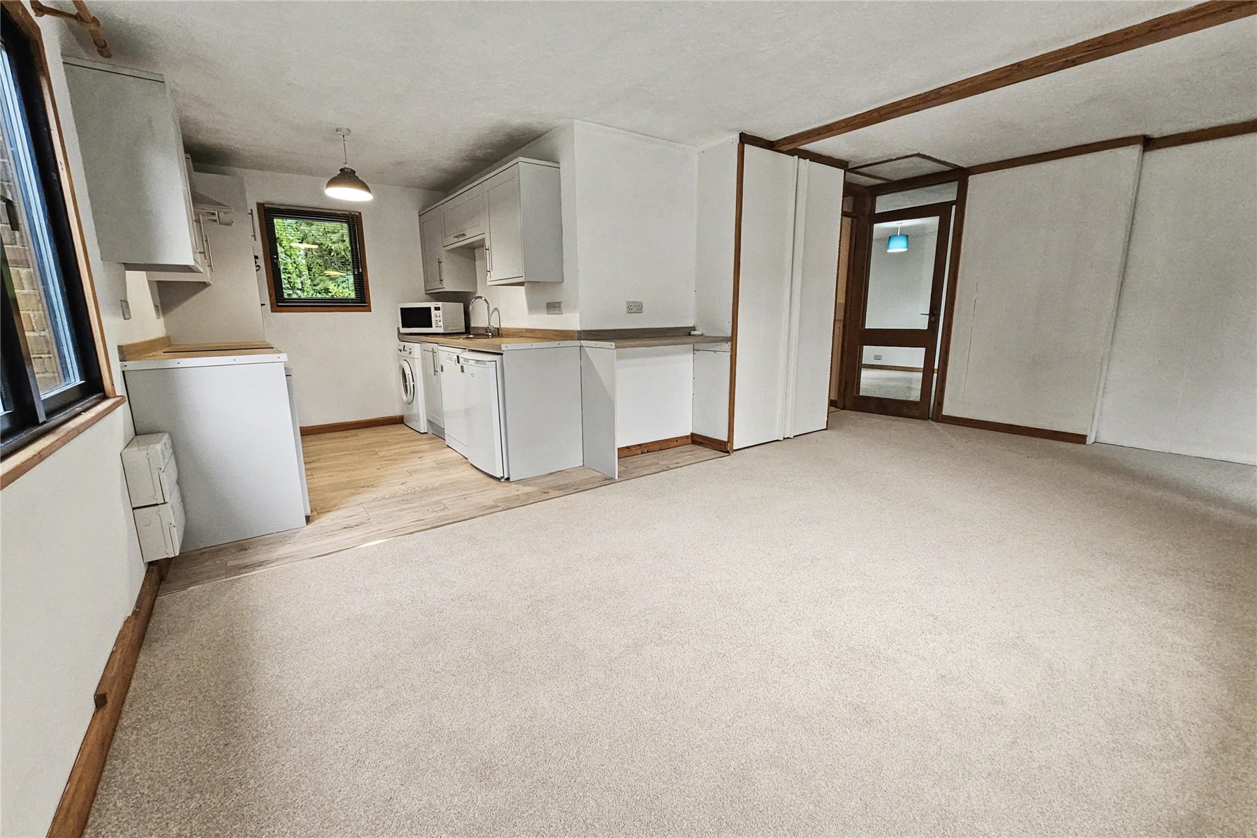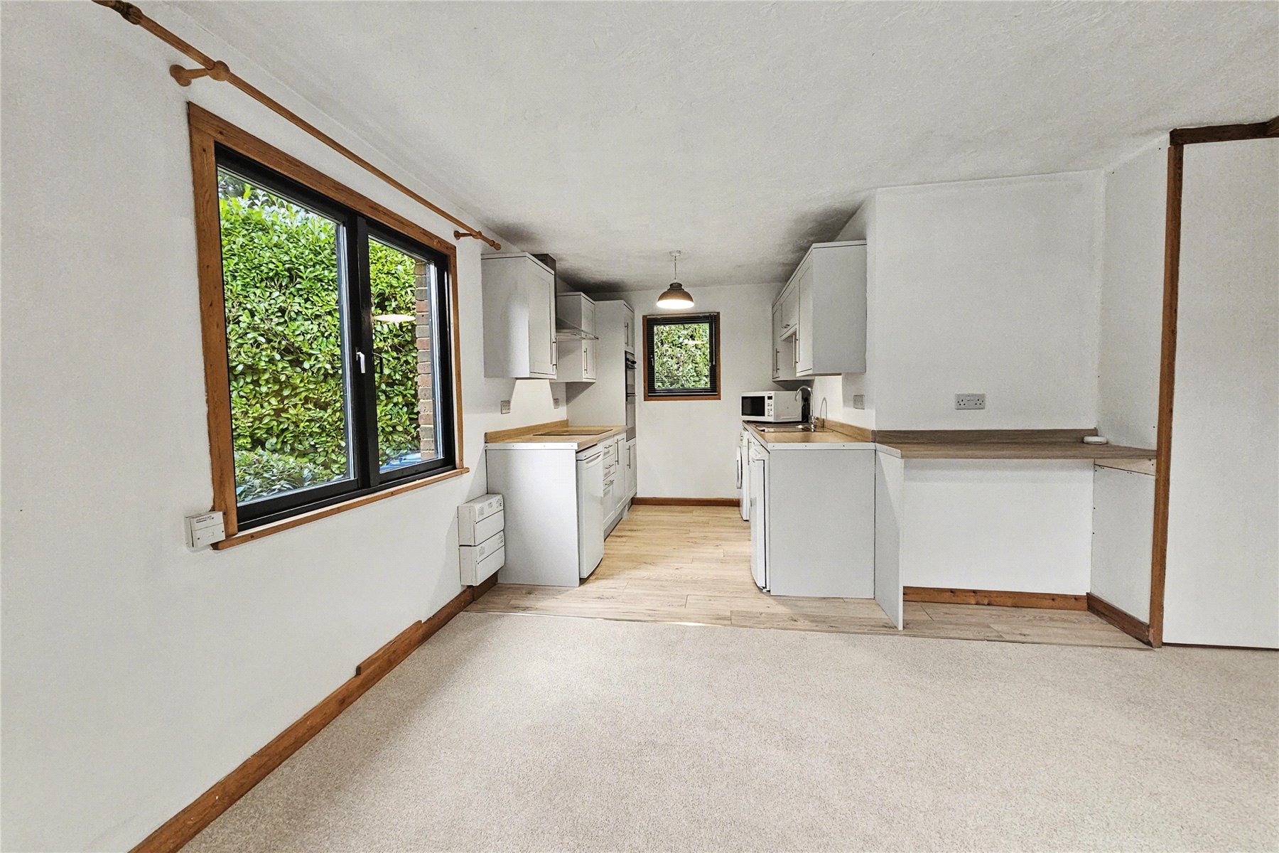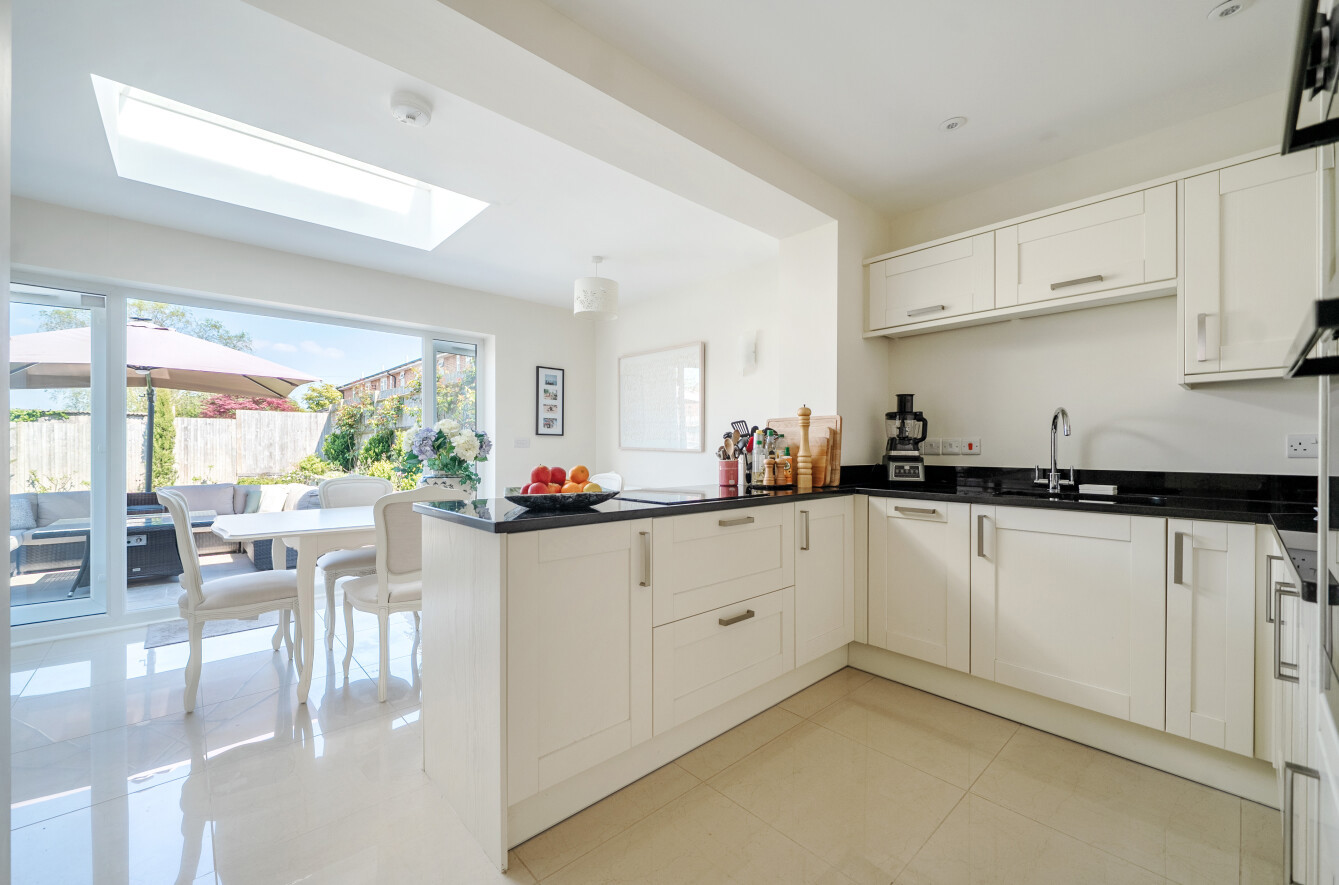 The front door opens into an entrance hall with access to the family bathroom. Moving beyond the entrance hall you enter into a dual aspect dining room which in turn is open plan to the kitchen.