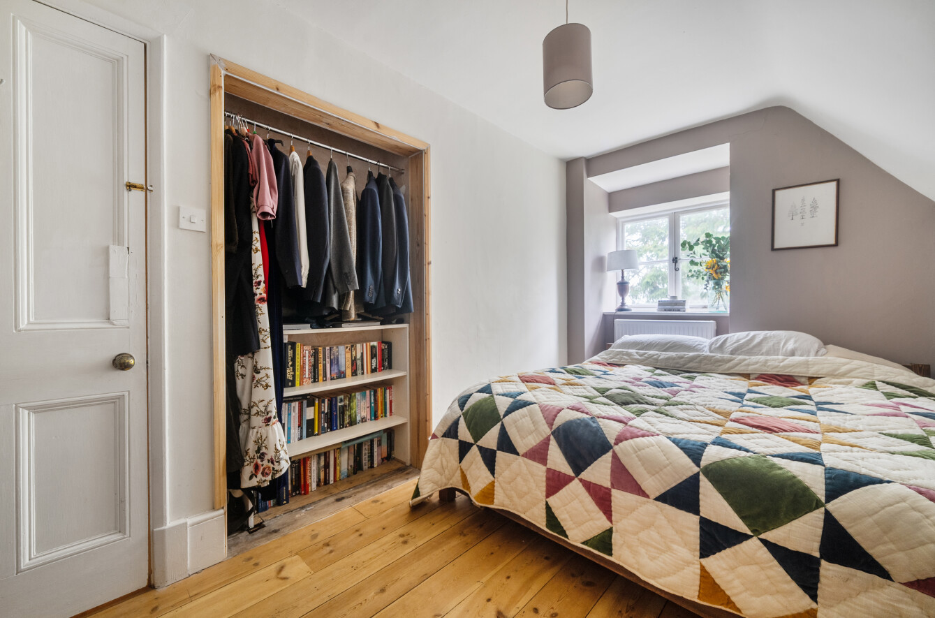 To the right of the entrance hall is a double bedroom with wardrobe alcove