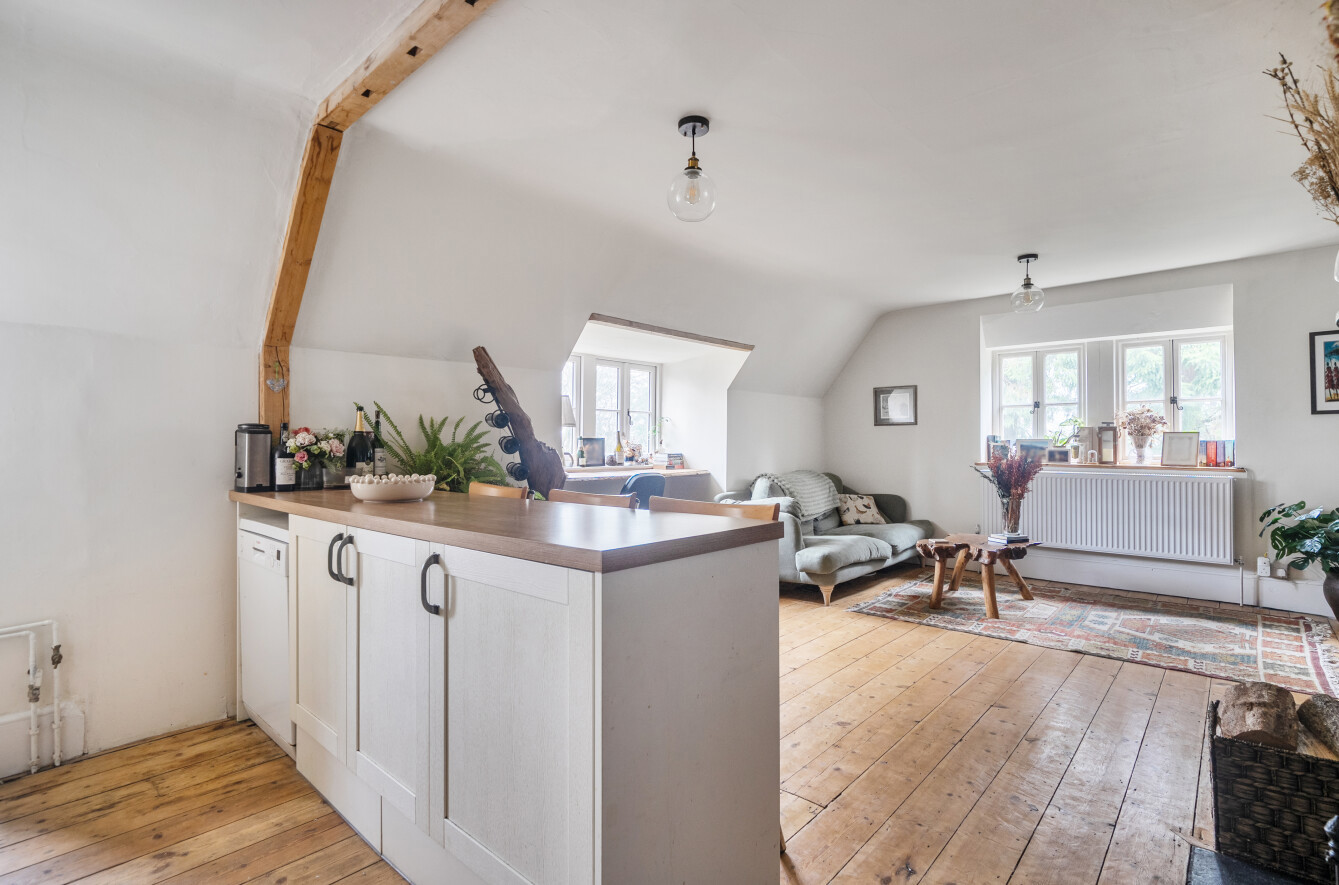 To the left is a large open plan kitchen/living room enjoying a double aspect (south and west)
