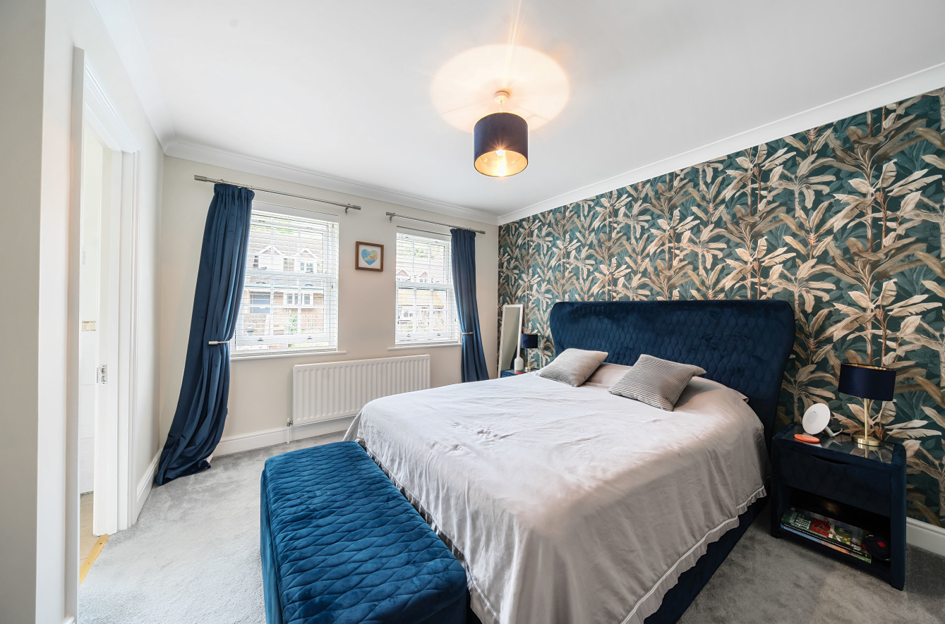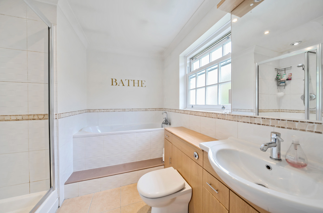 To the first floor is a lovely master bedroom with built in wardrobes and en suite with both bath and free standing shower unit. There are three further good sized bedrooms (two with built in wardrobes) and a modern fully tiled family shower room with large walk in shower.